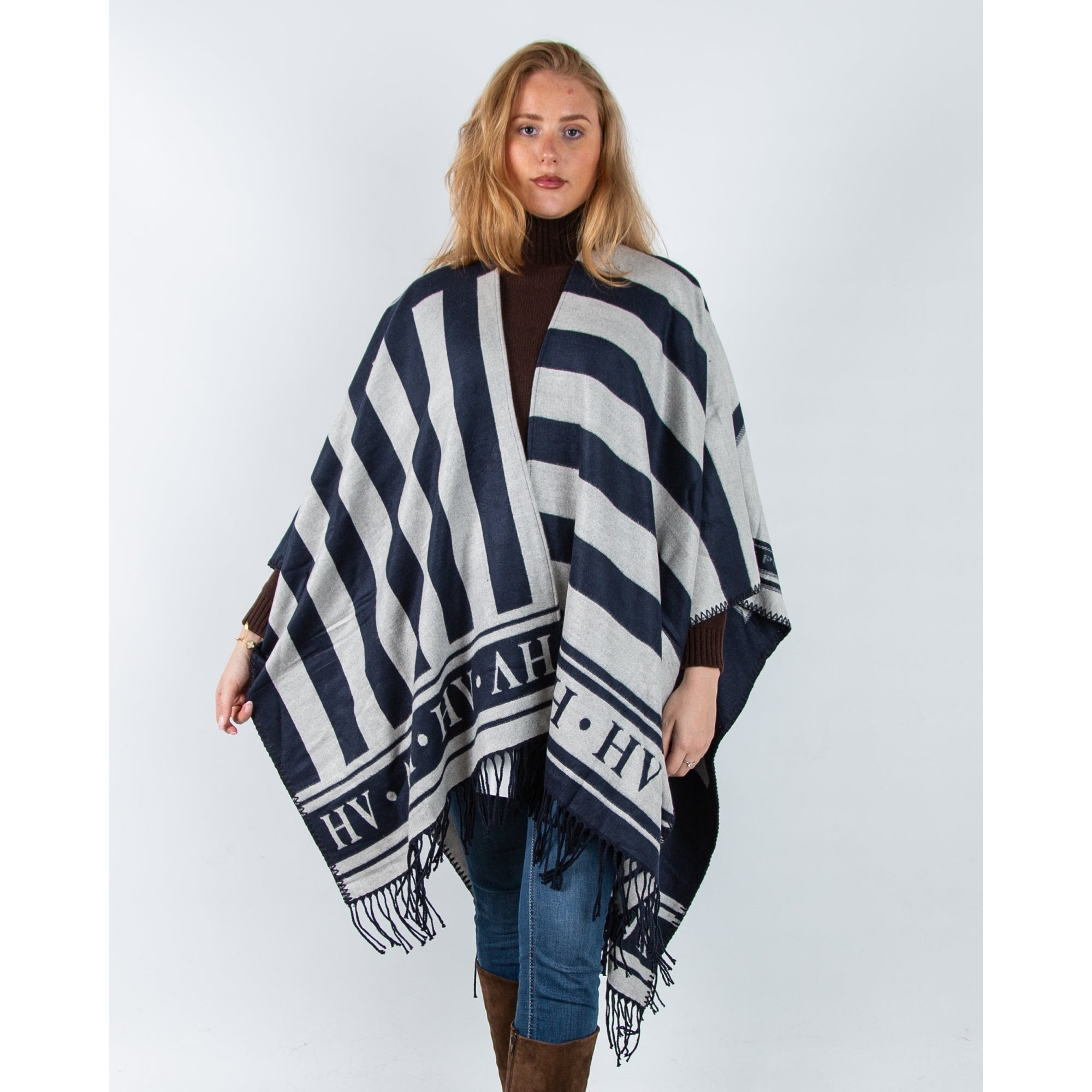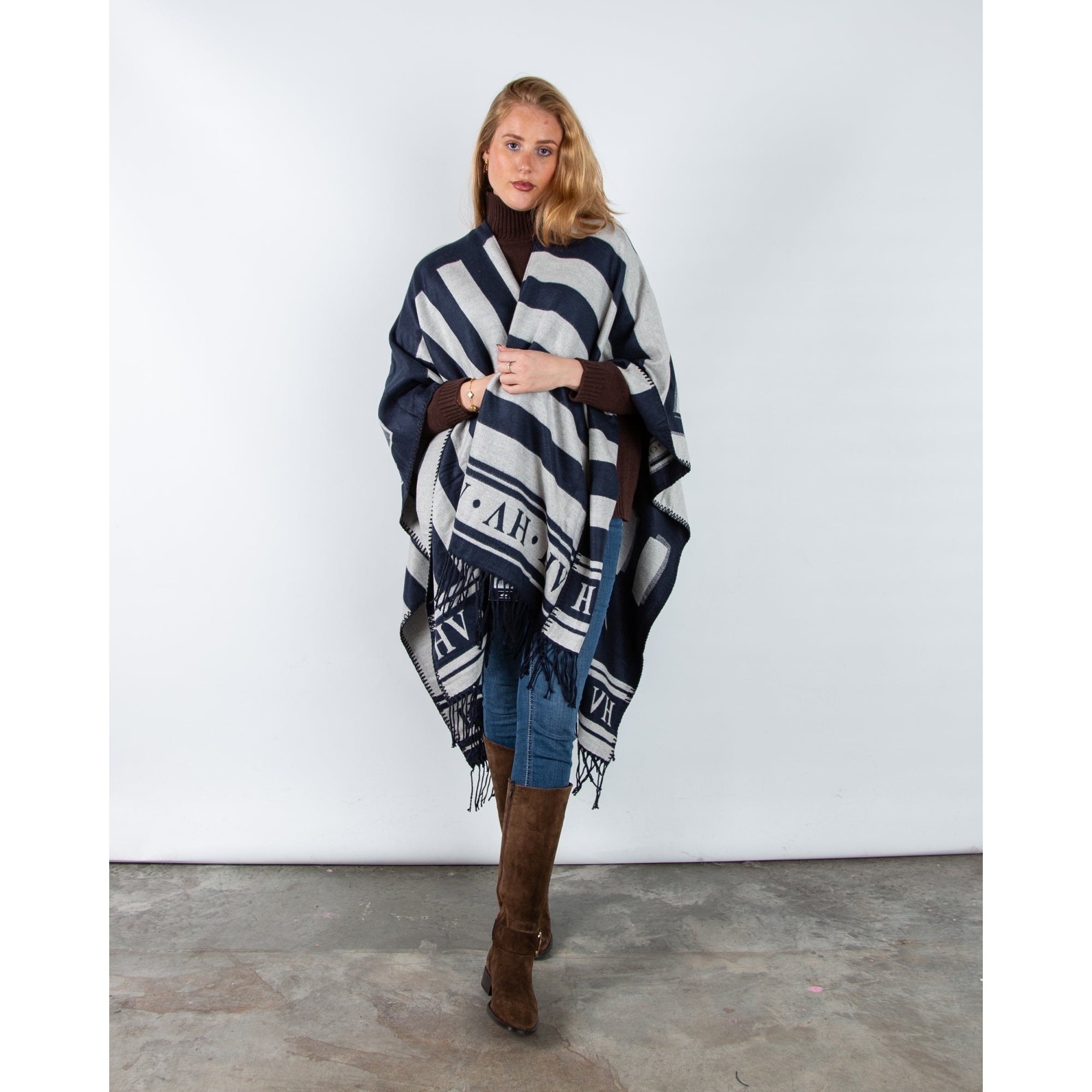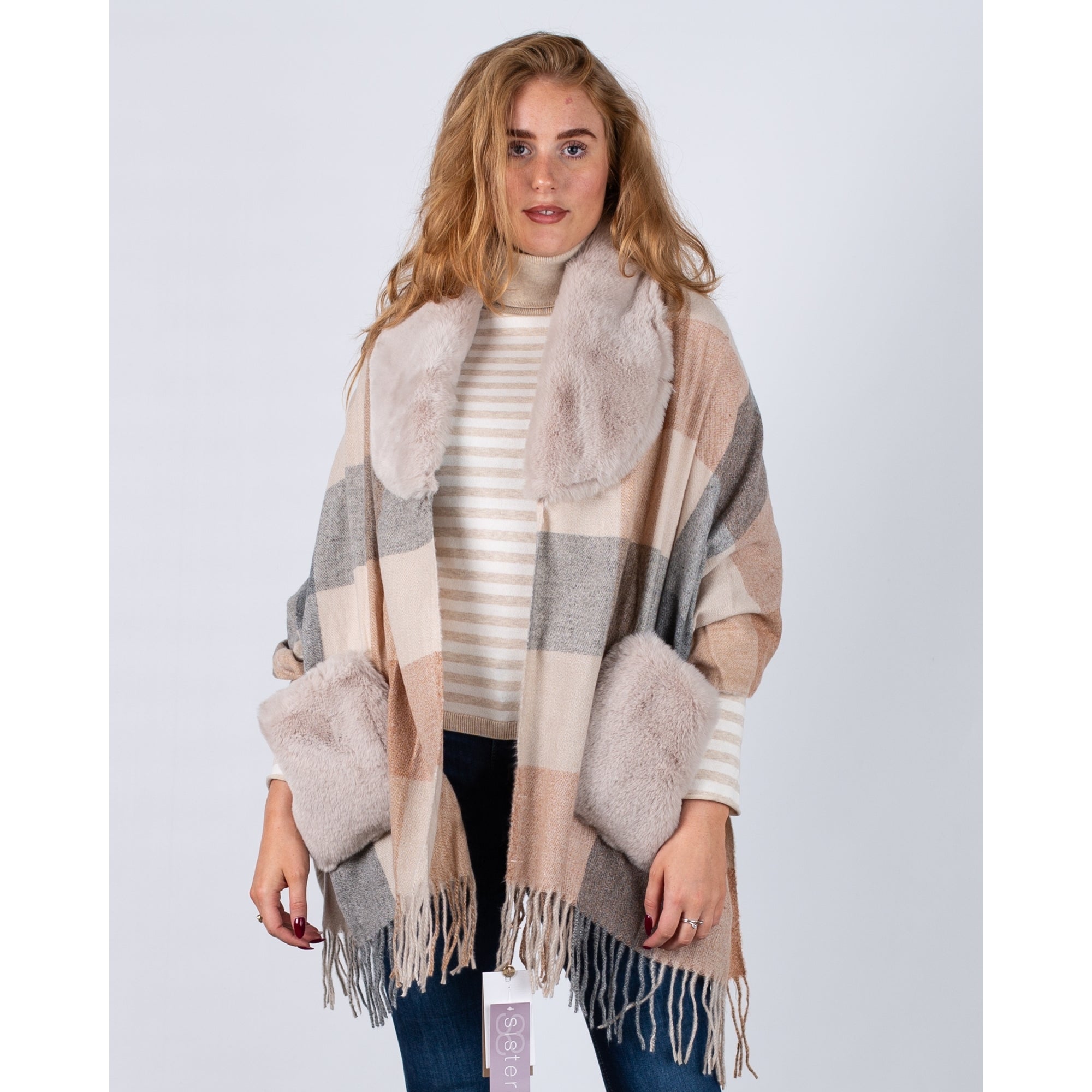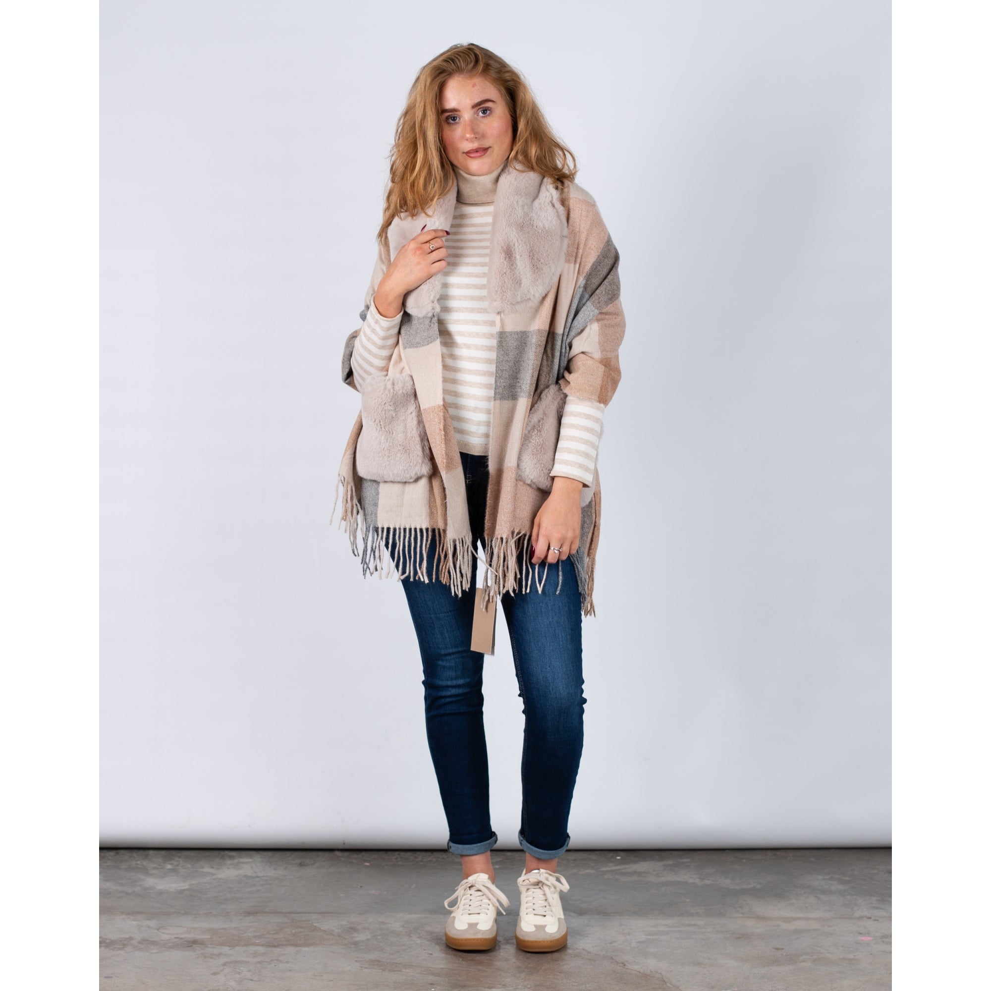 Herzens Angelegenheit Tassel Trim Knit Shawl Caramel/Light Blue