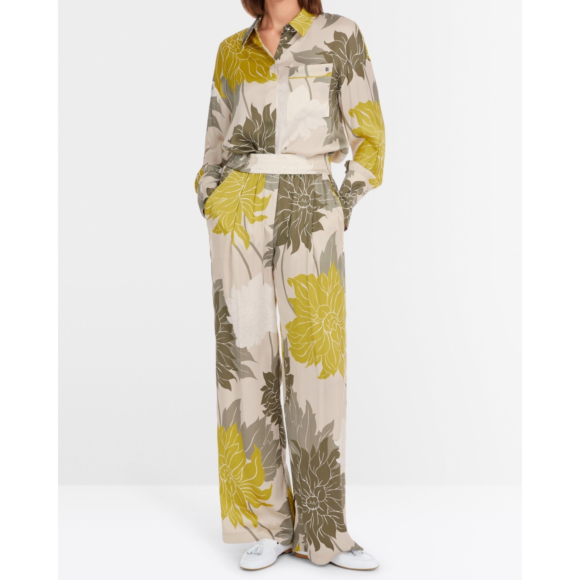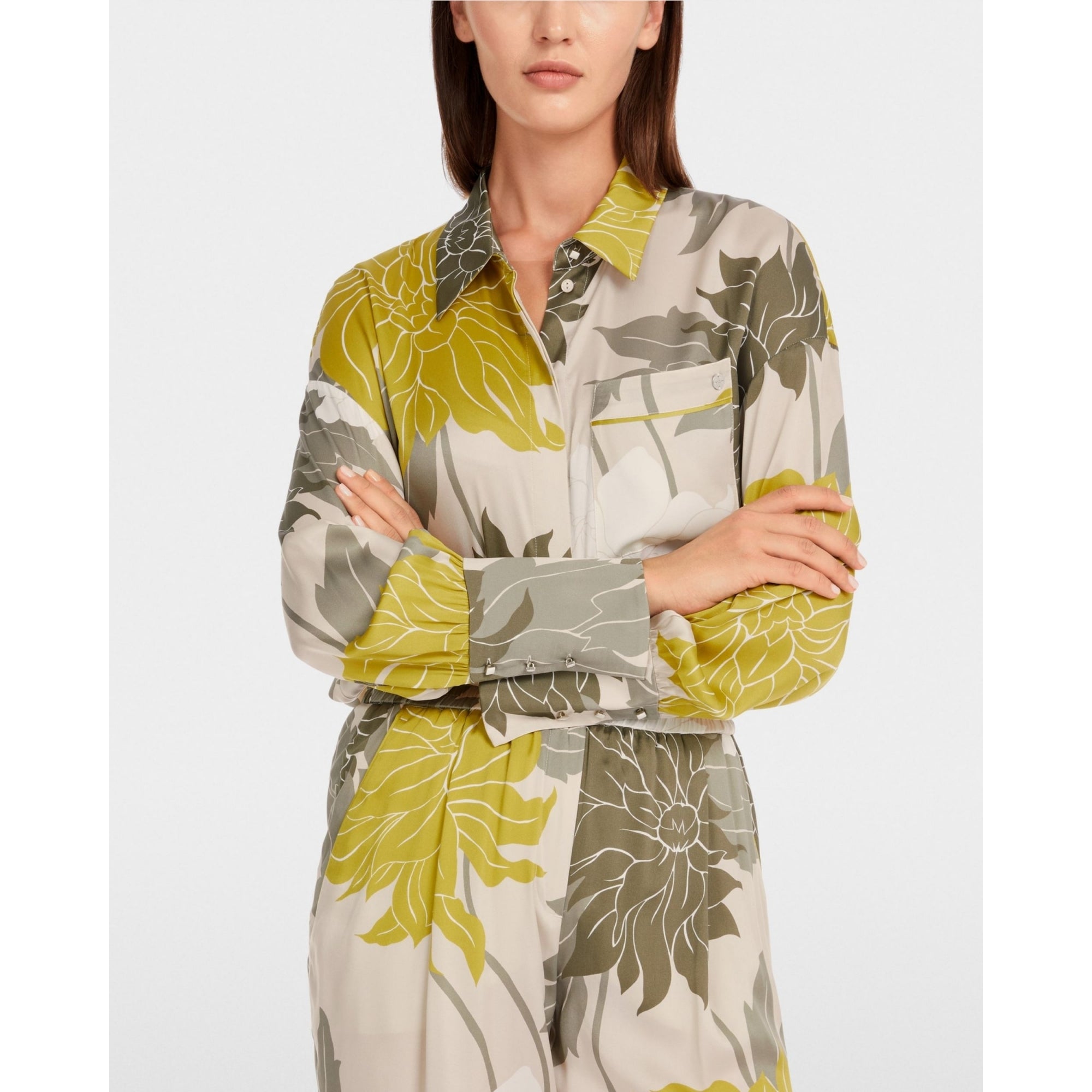 Marc Cain Floral Silk Shirt With Front Pocket Pearl/multi
