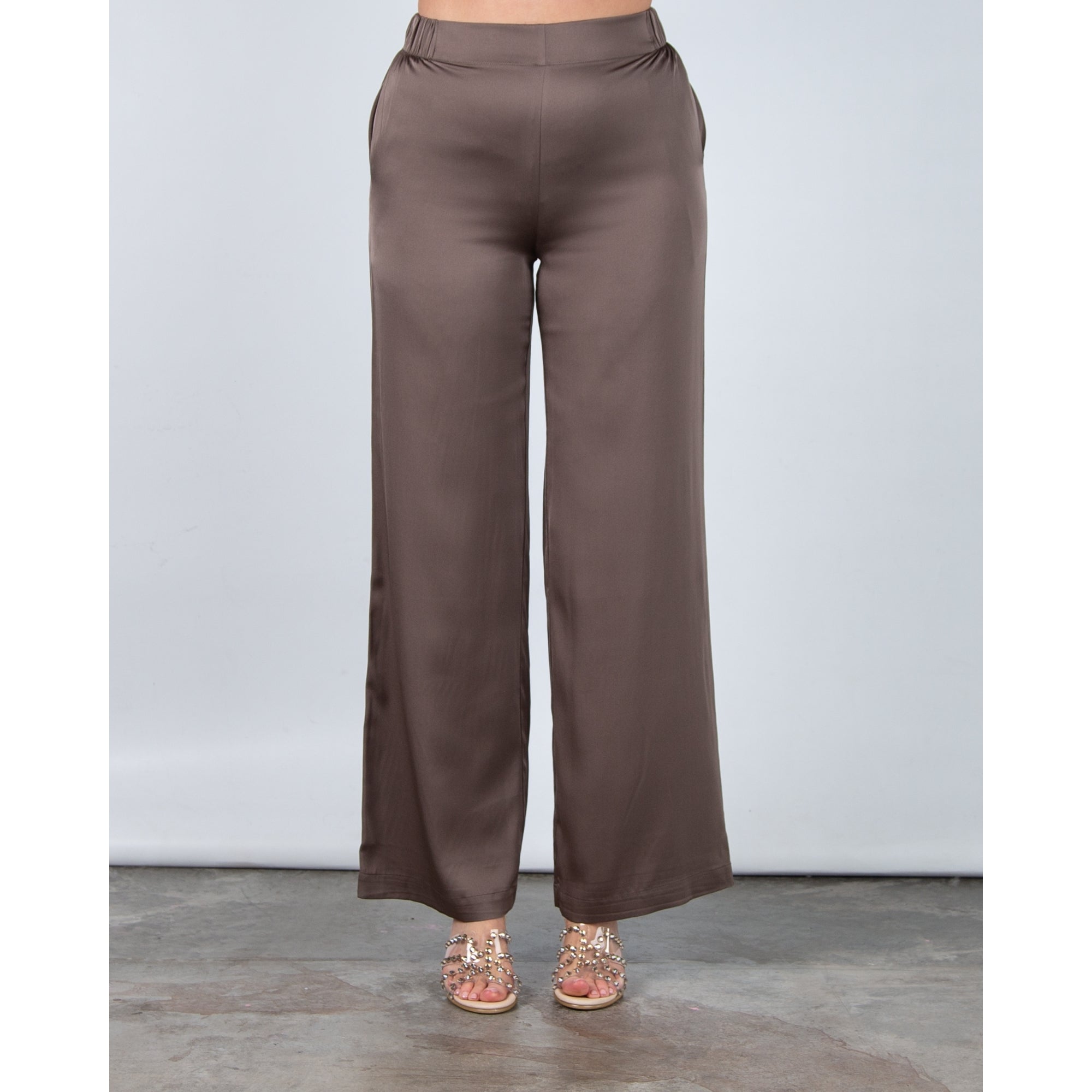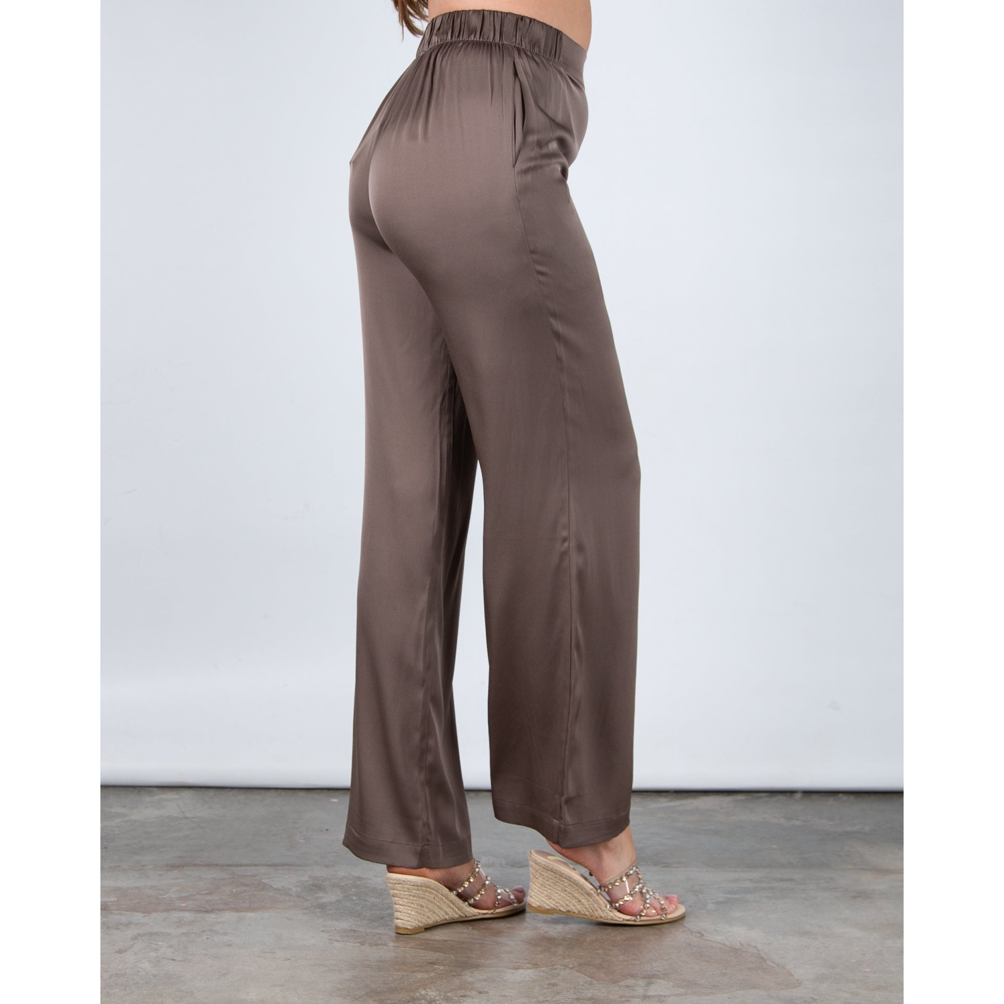 Silk95 Amalfi Elasticated Waist Wide Leg Silk Trouser Mink