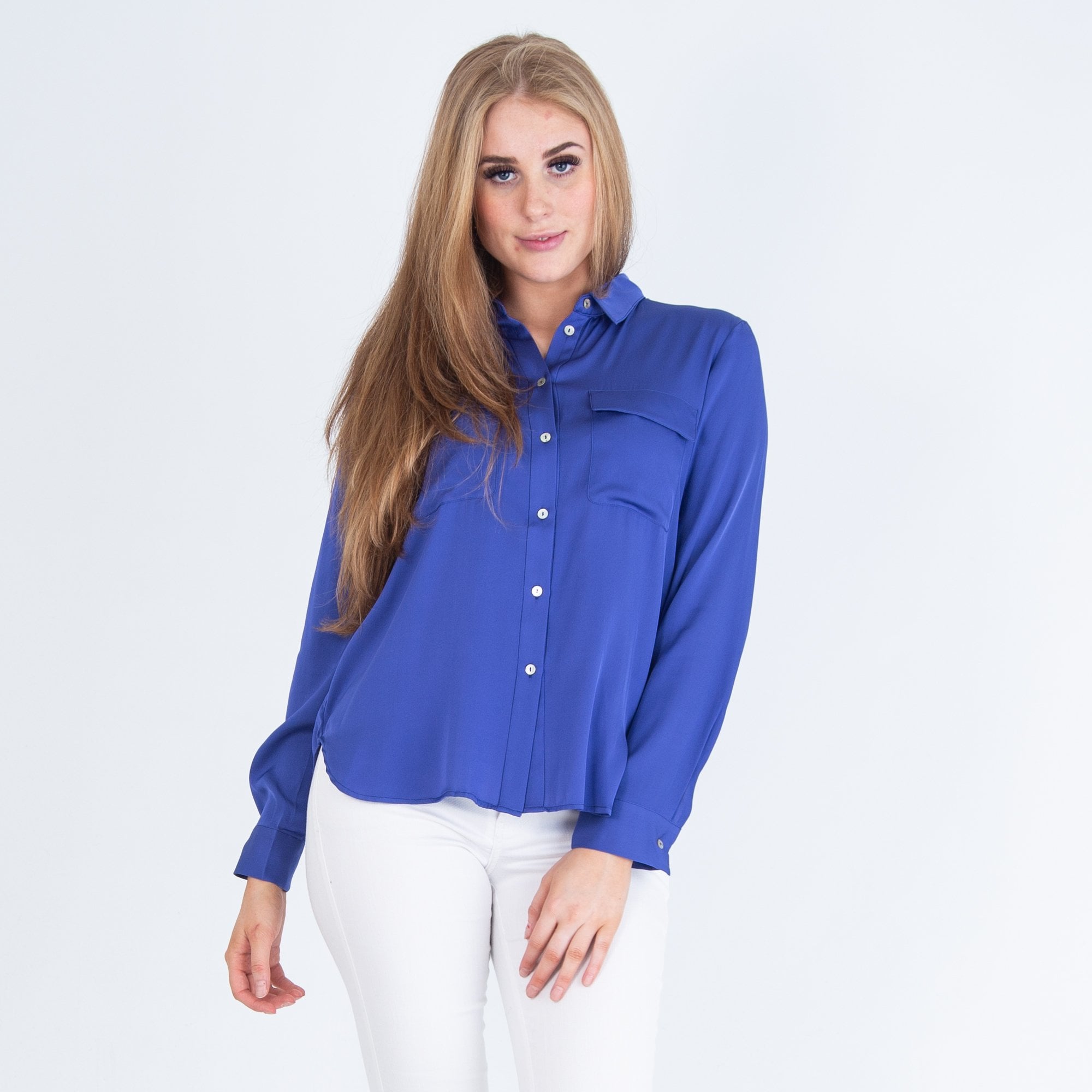 Silk95 Monte Carlo Pocket Front Silk Blouse Royal Blue