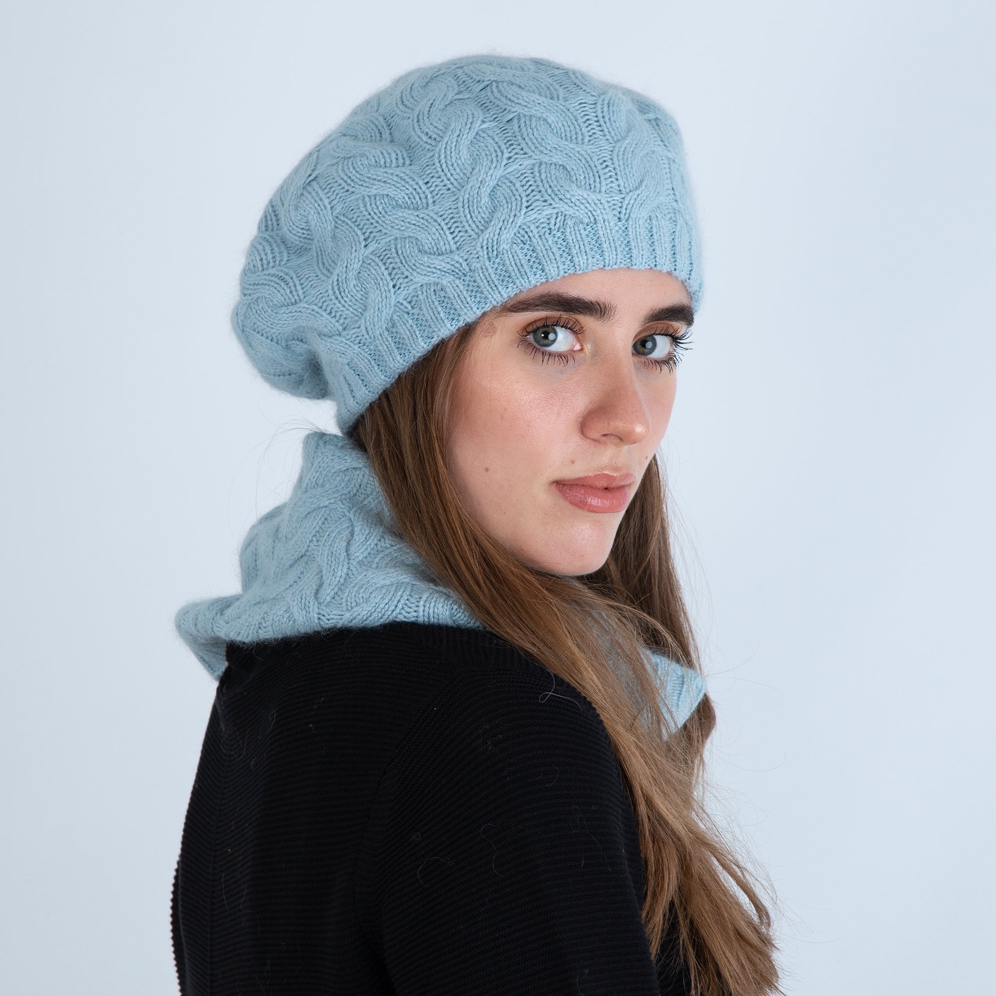 Sister PAC Knitted Woolly Hat And Snood Light Blue
