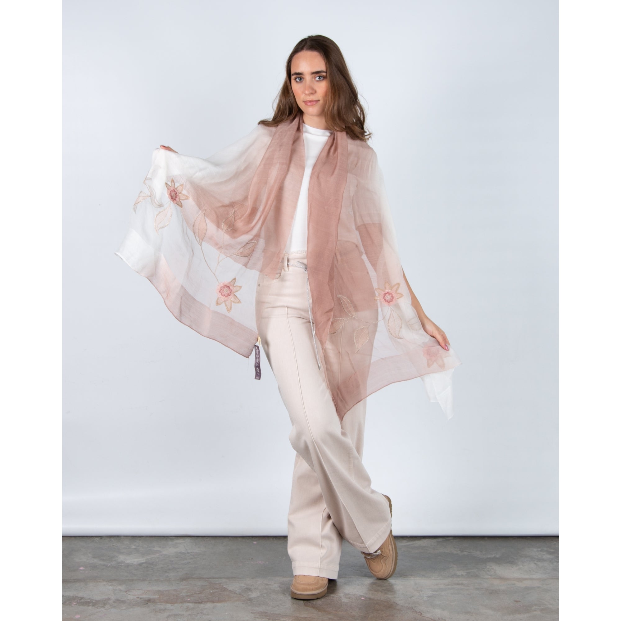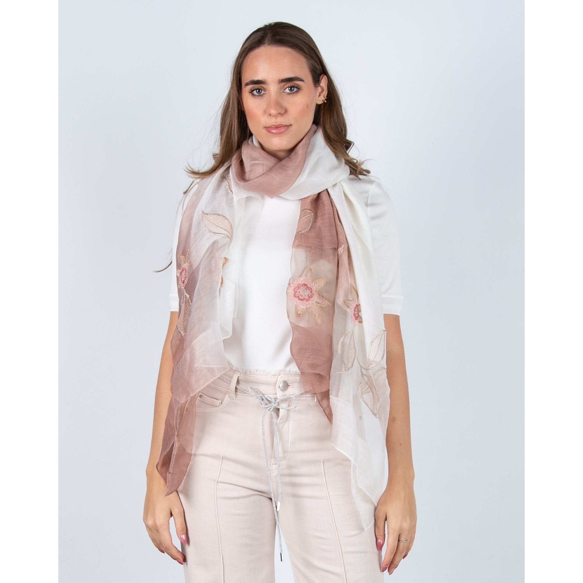 Sister PAC Leoni Silk Scarf With Embroidered Flower Dusty Pink