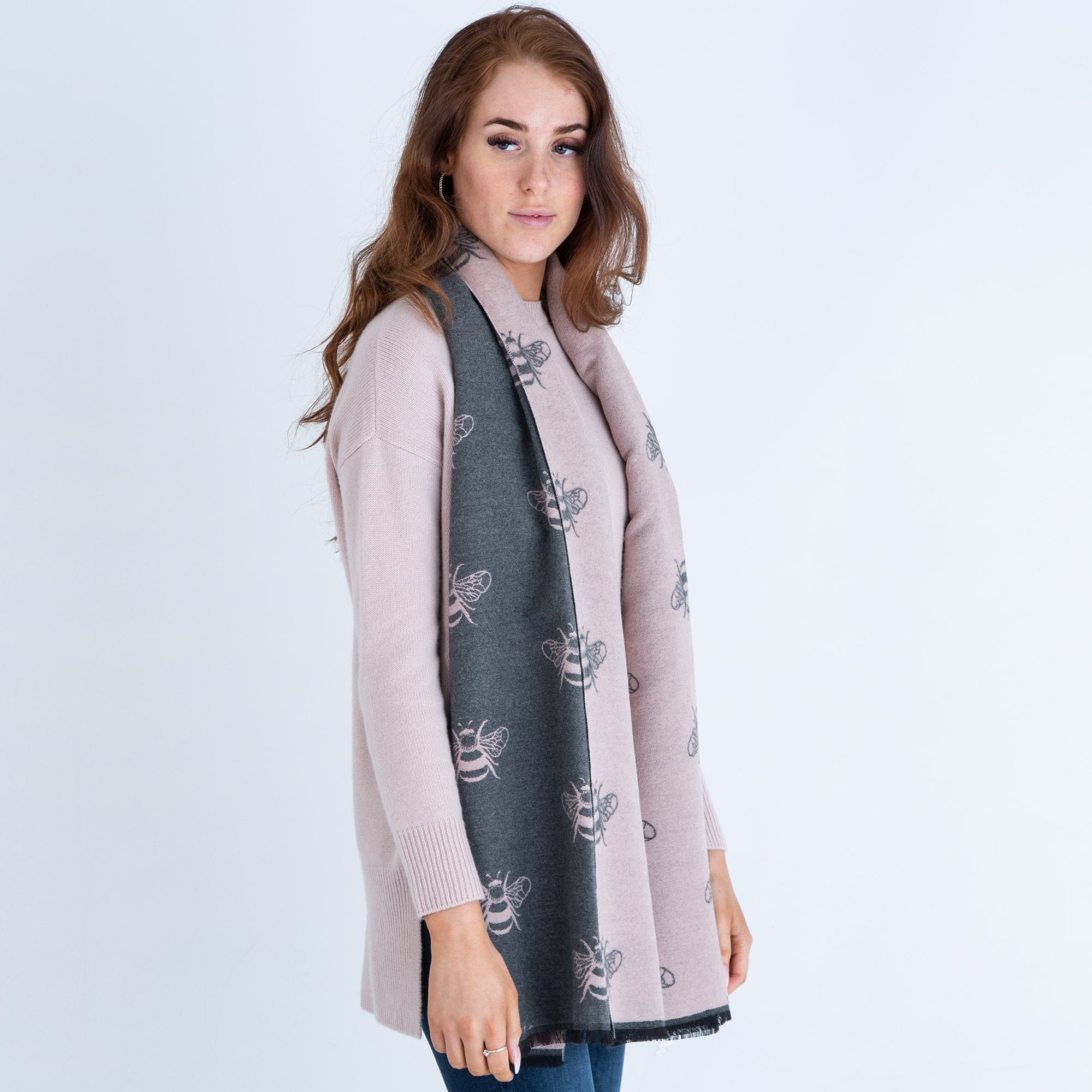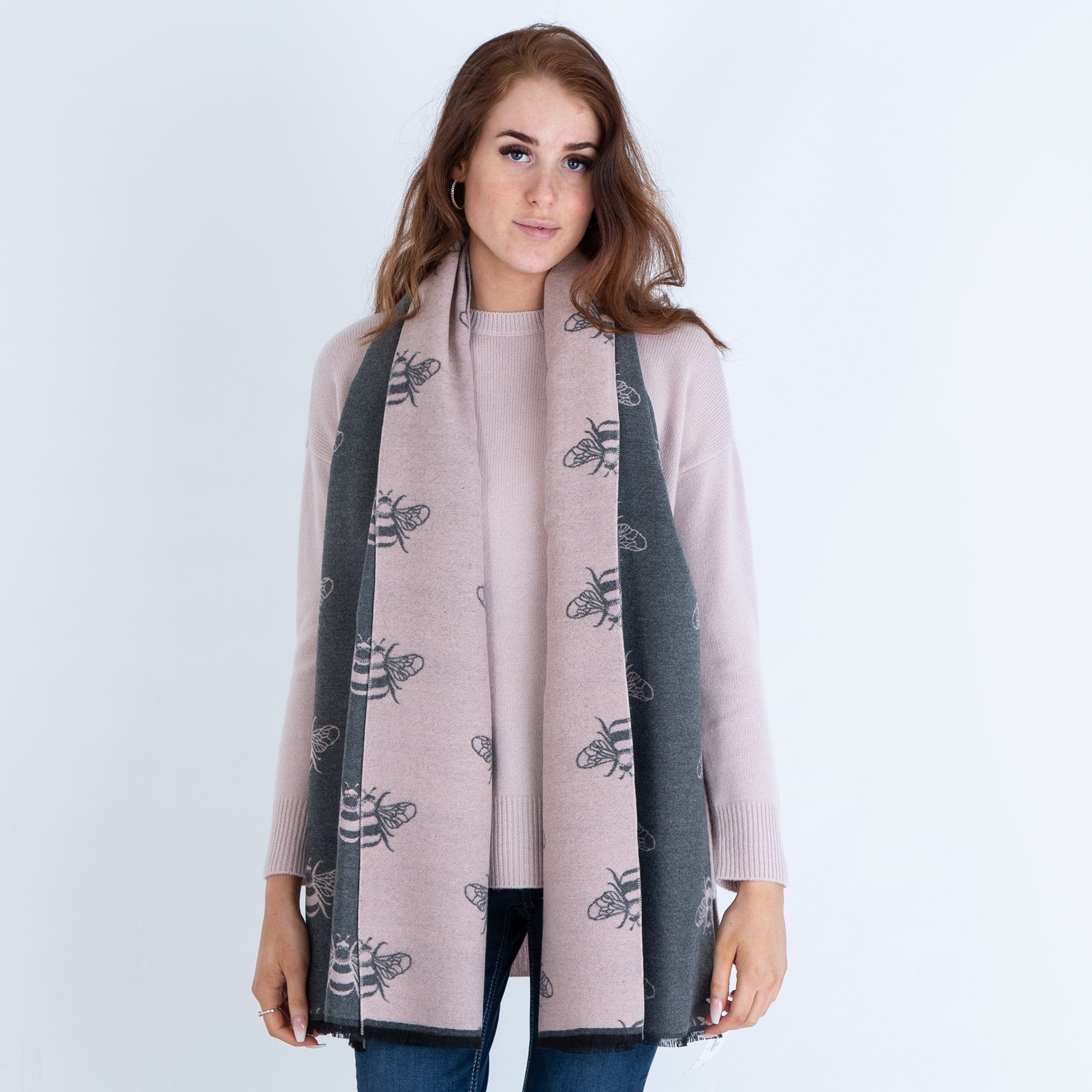 Sister PR Reversible Bee Print Scarf Light Pink/grey