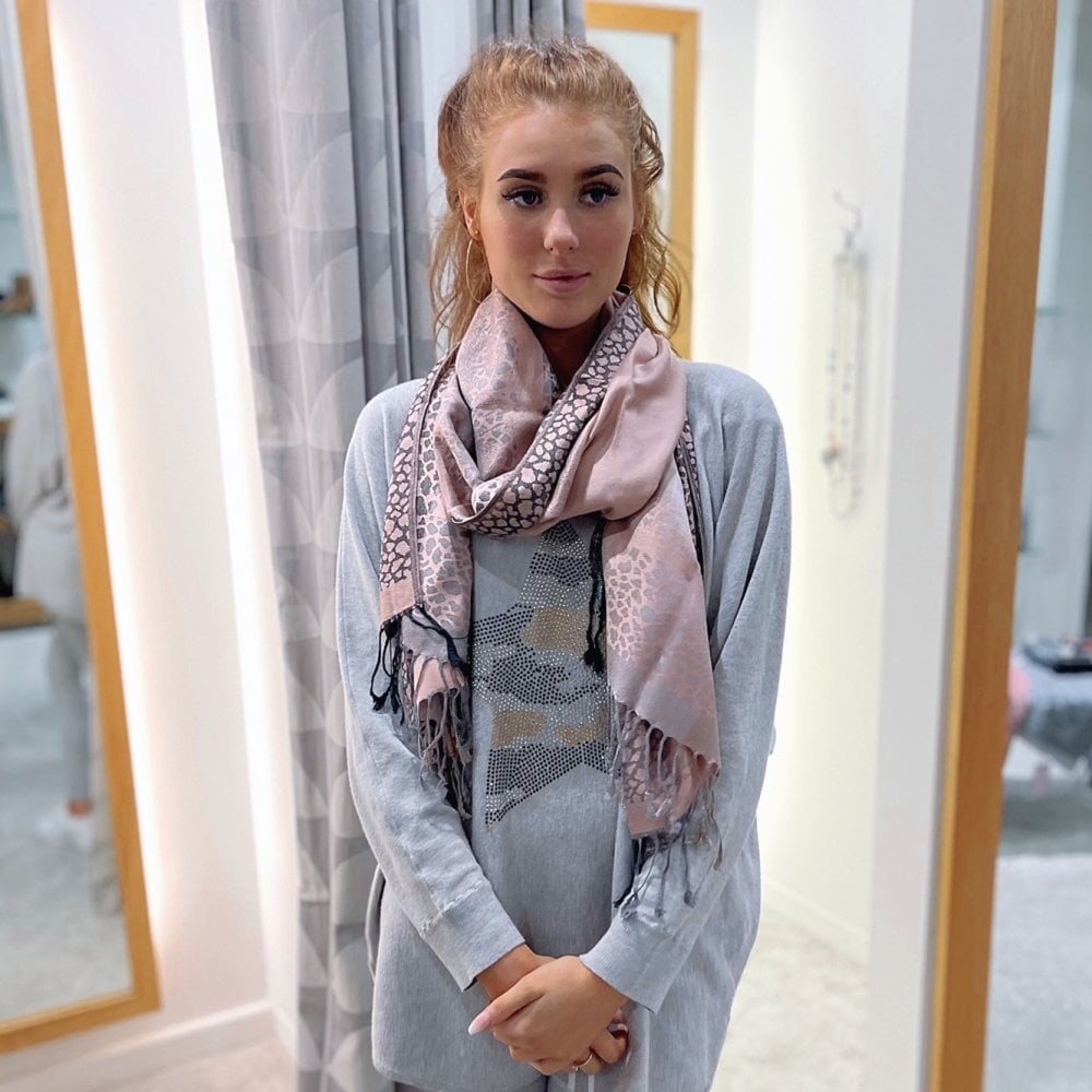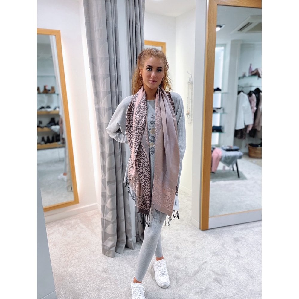 Sister PR Shiny Leopard & Stripe Scarf Peach/grey