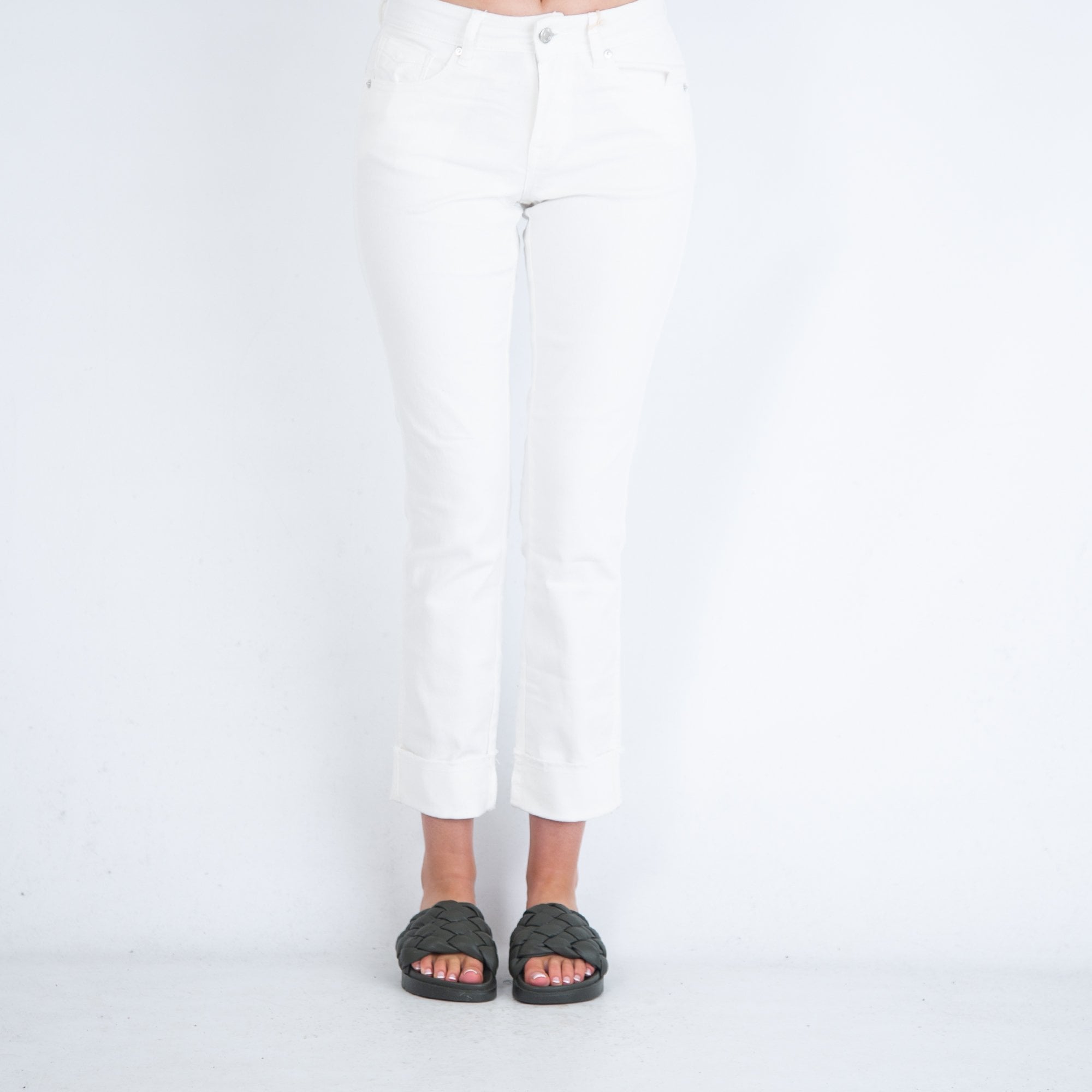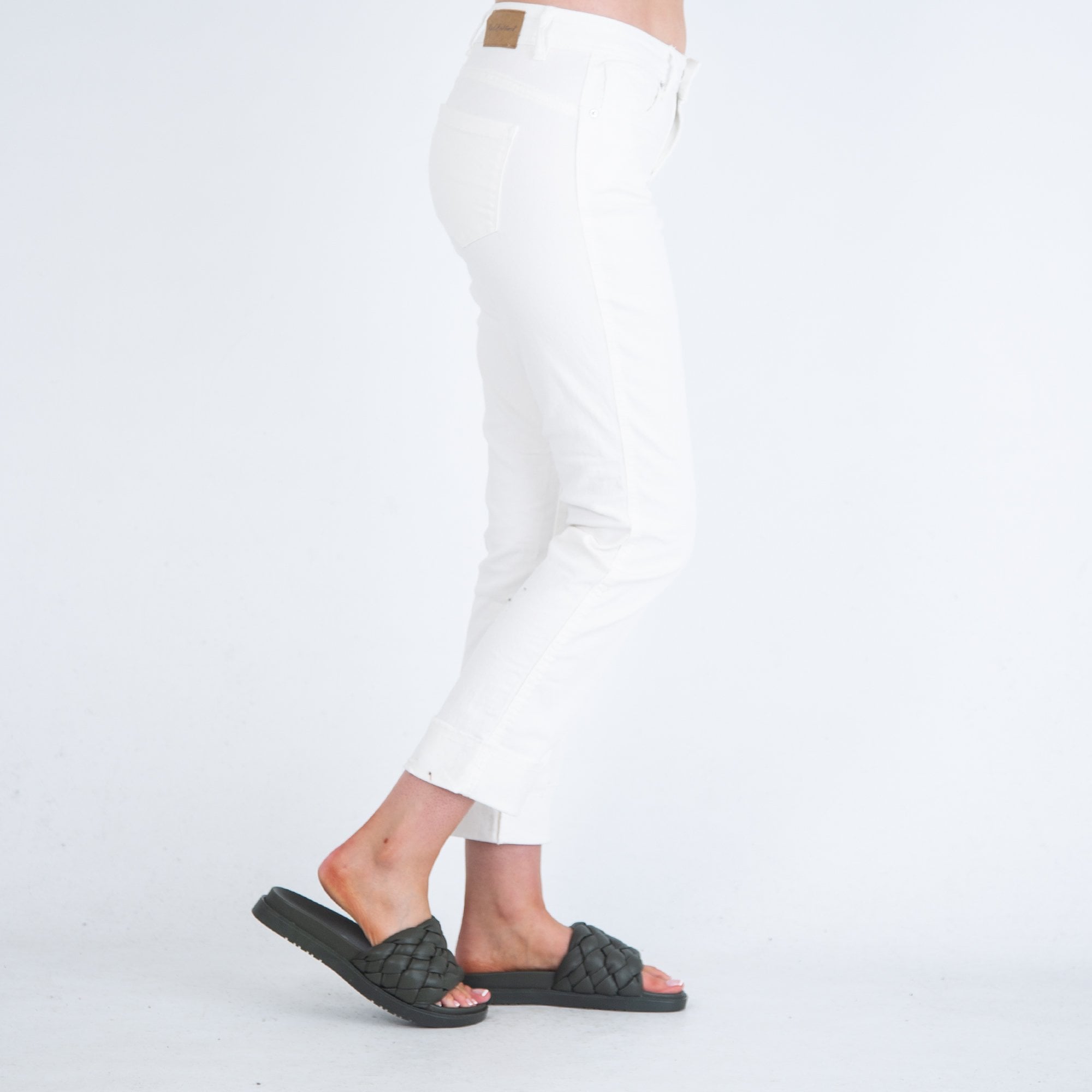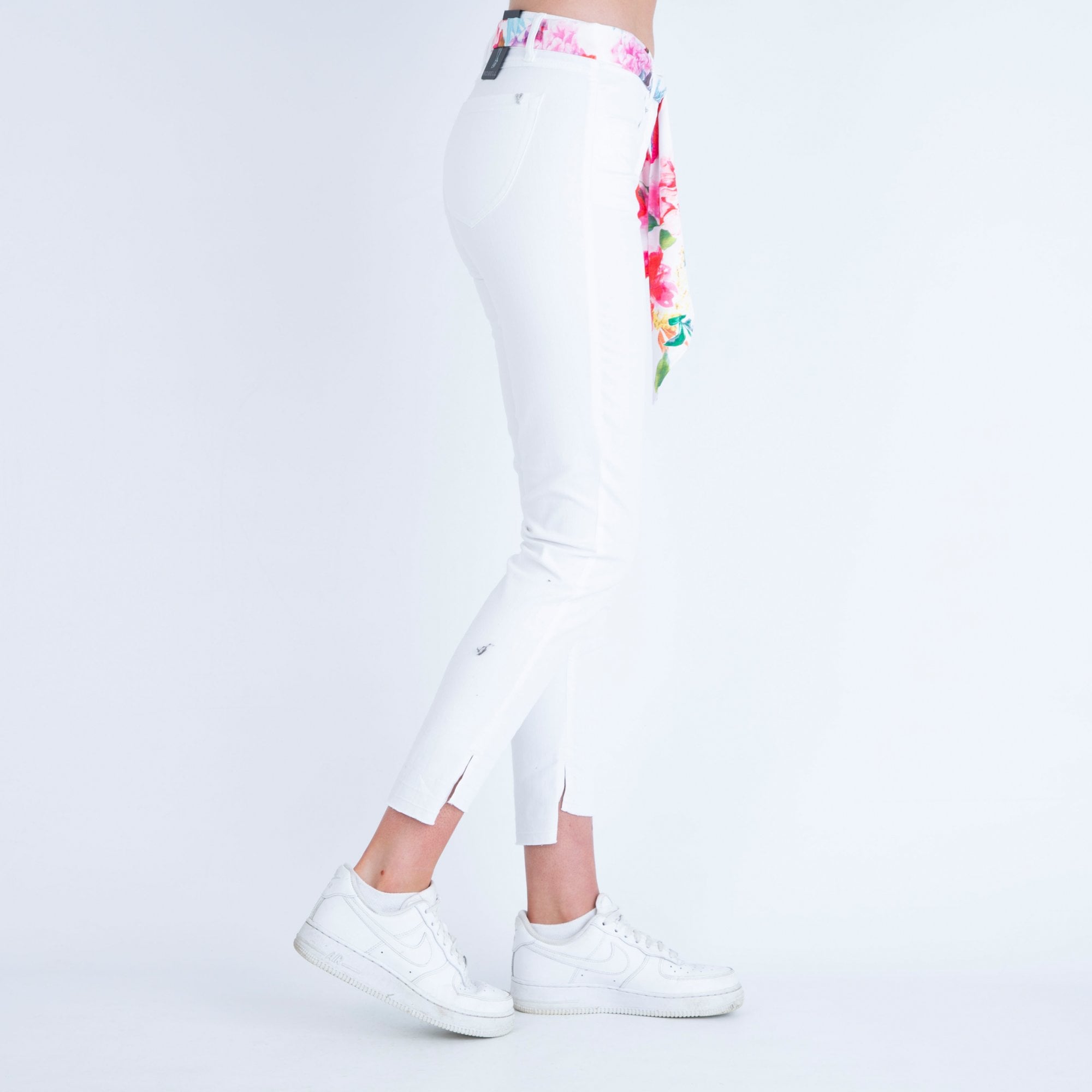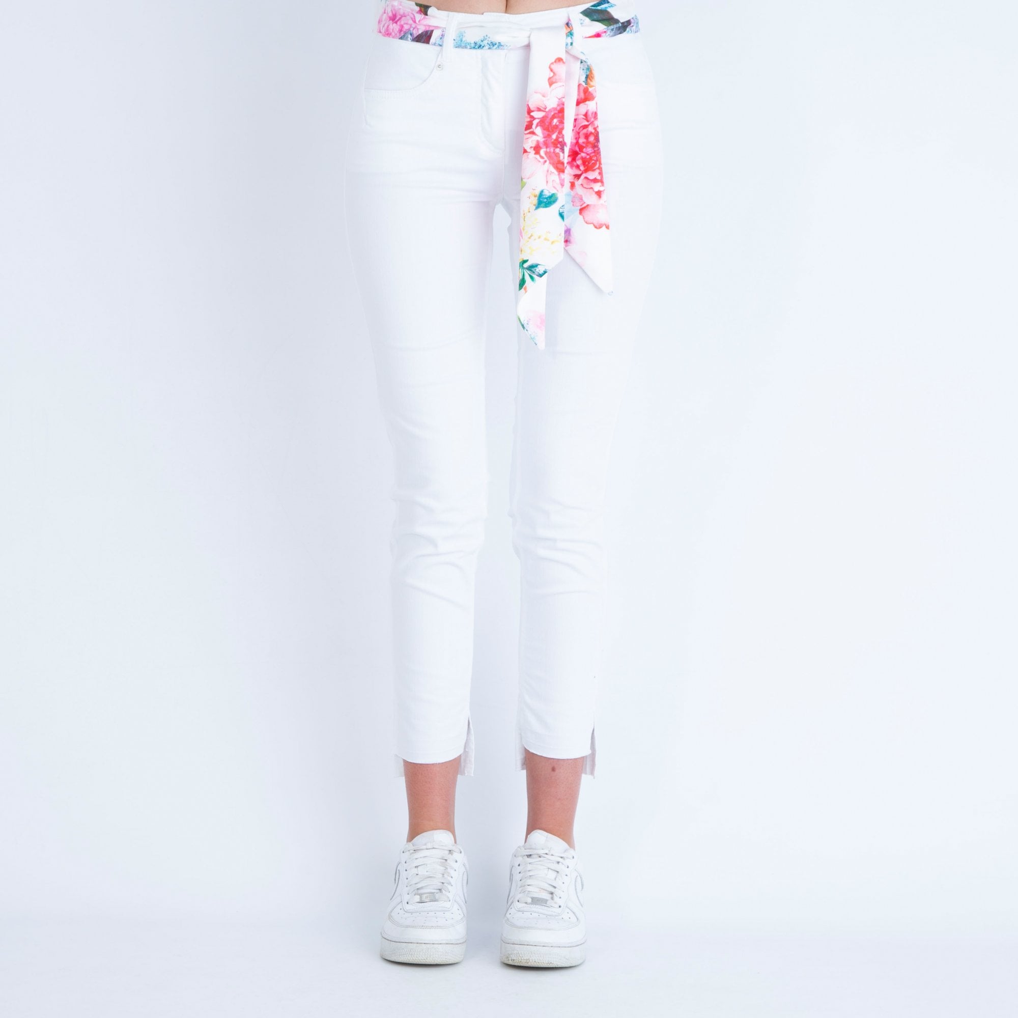 Robell Raw Hem Cropped Jean With Scarf Belt White