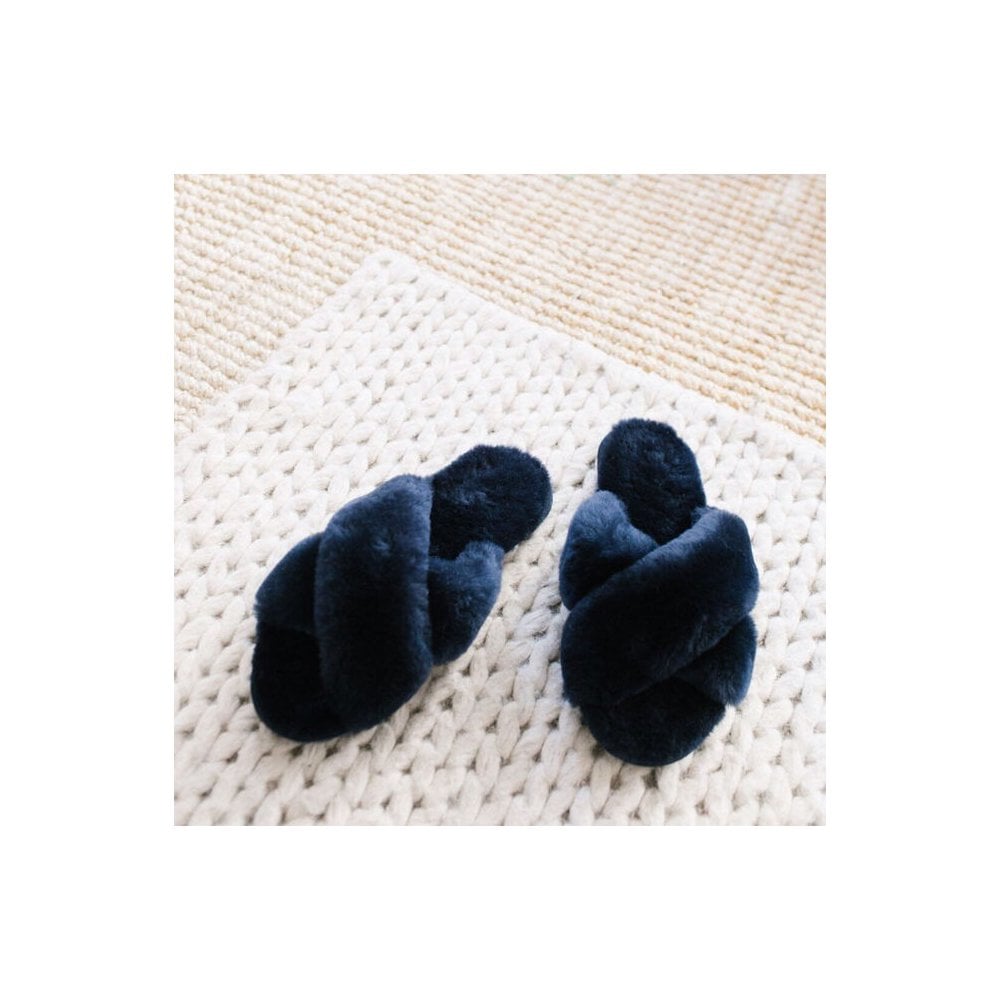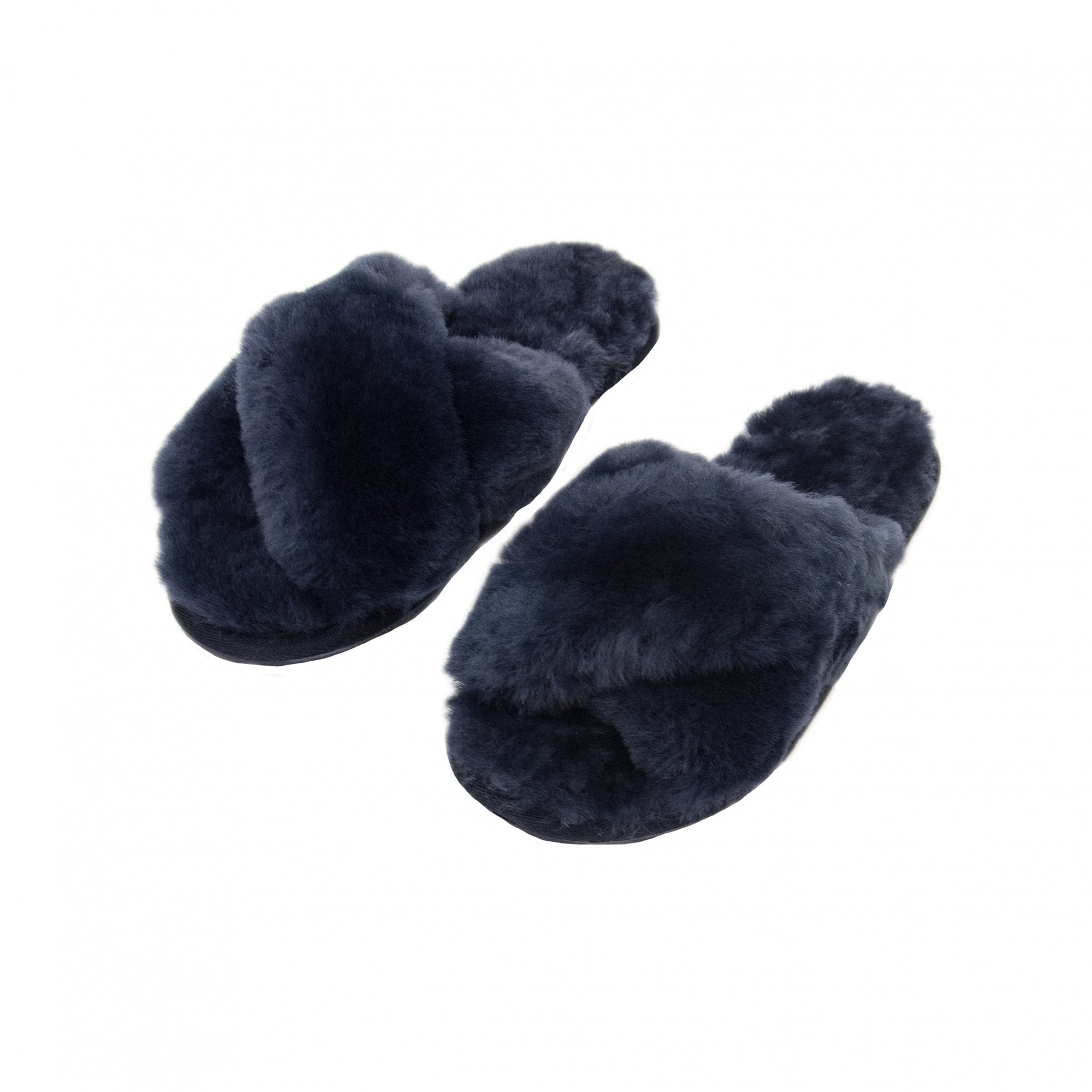 Emu Australia Mayberry Cross Front Fur Slipper Midnight
