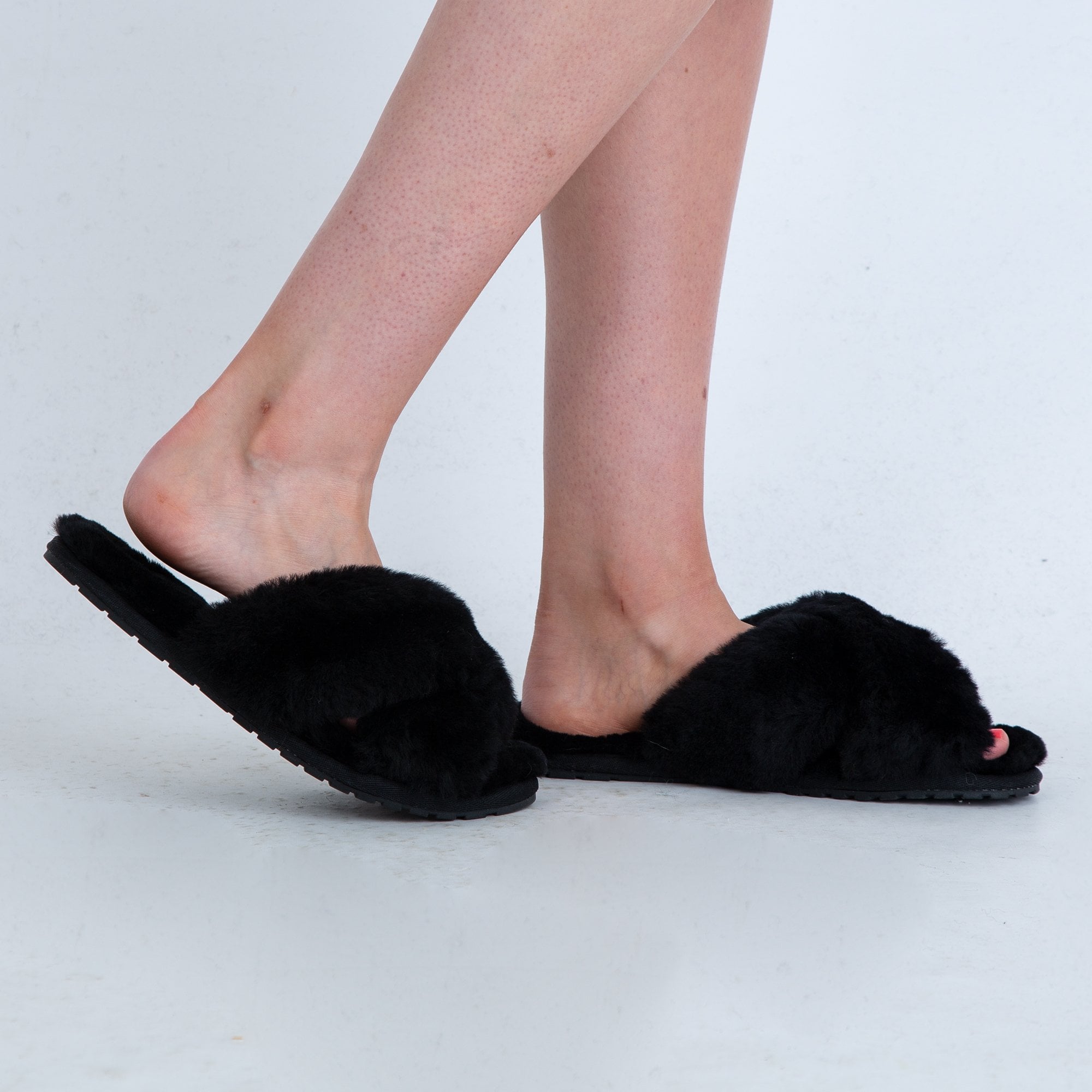 Emu Australia Mayberry Cross Over Fluffy Slider Slippers Black