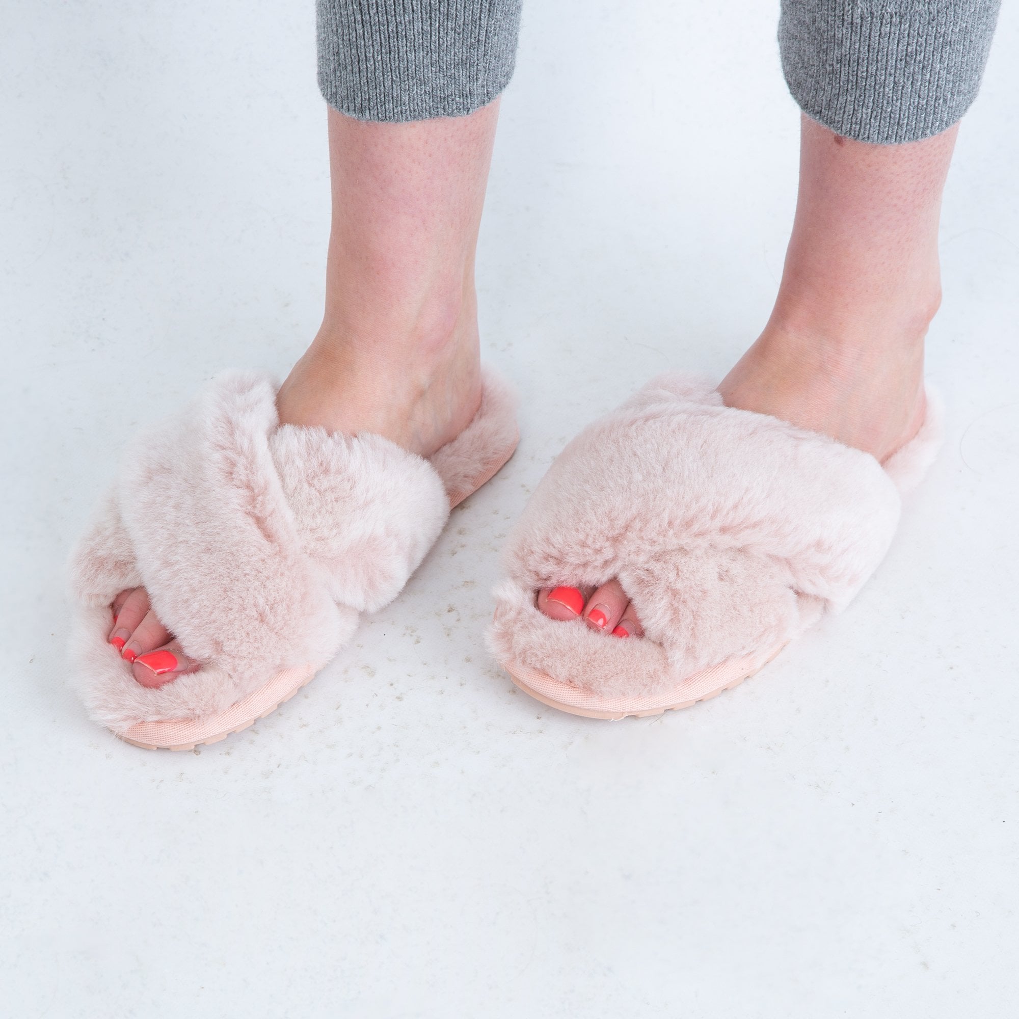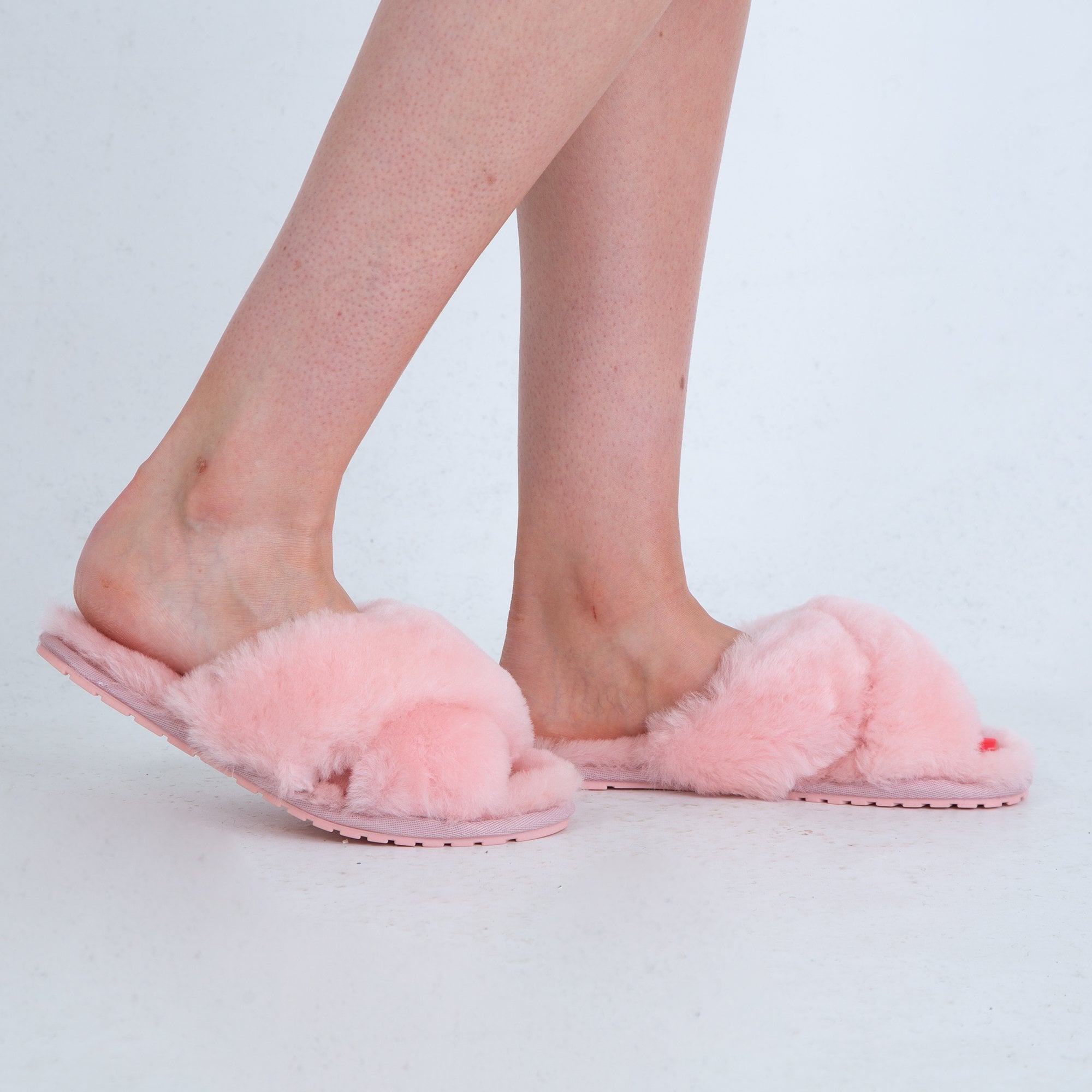 Emu Australia Mayberry Crossover Fluffy Slipper Baby Pink