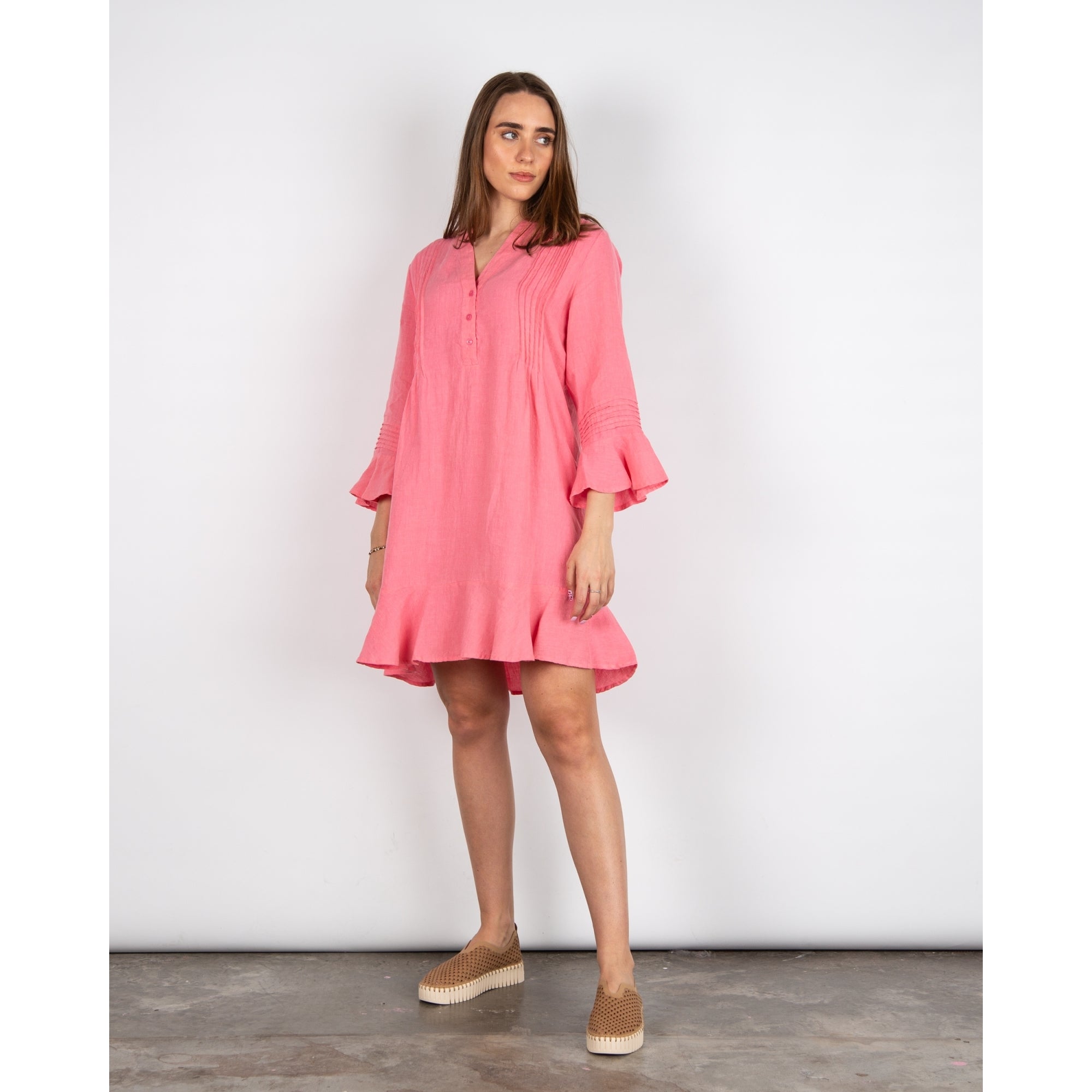 Part Two Etena Pintuck Frill Cuff And Hem Linen Dress Rose Pink