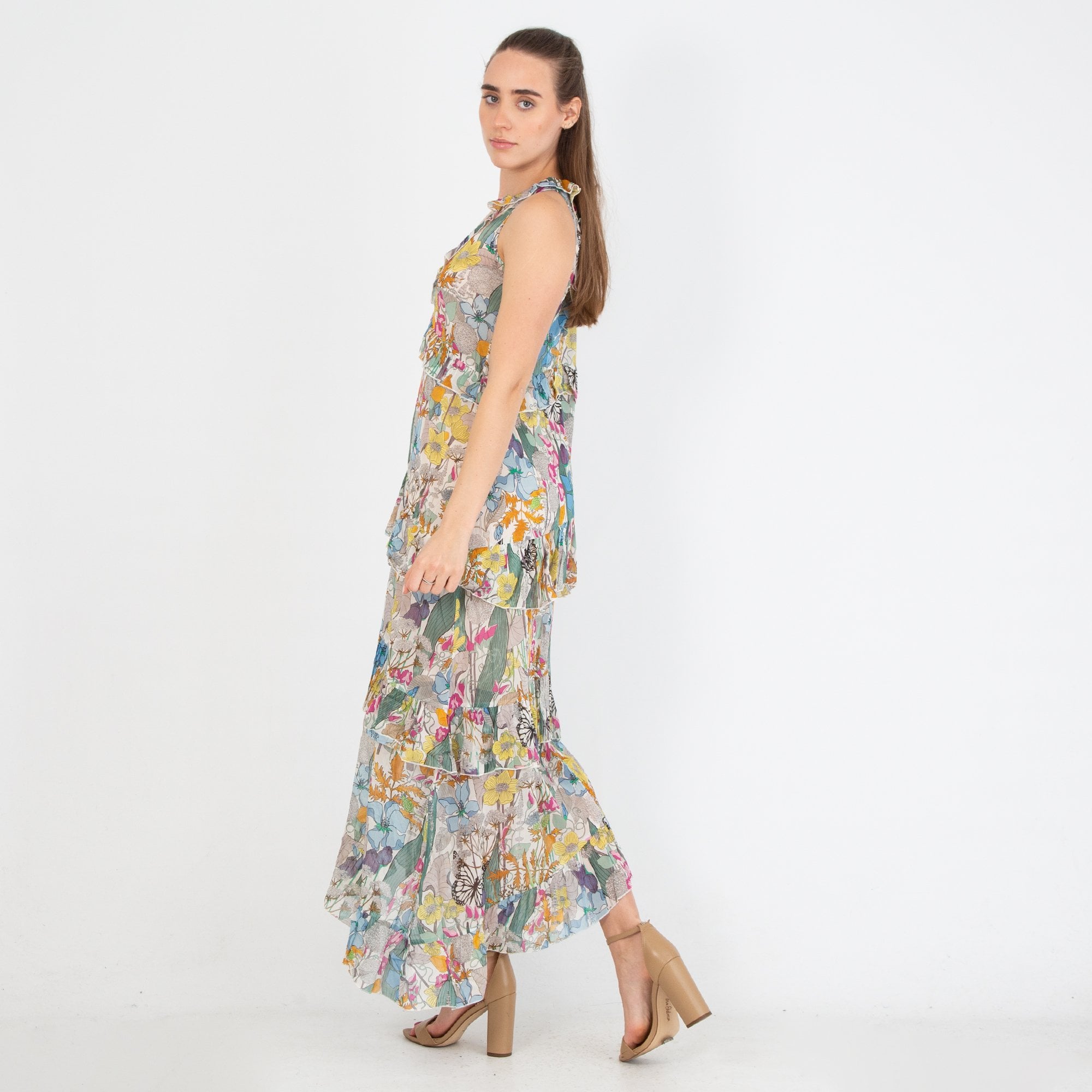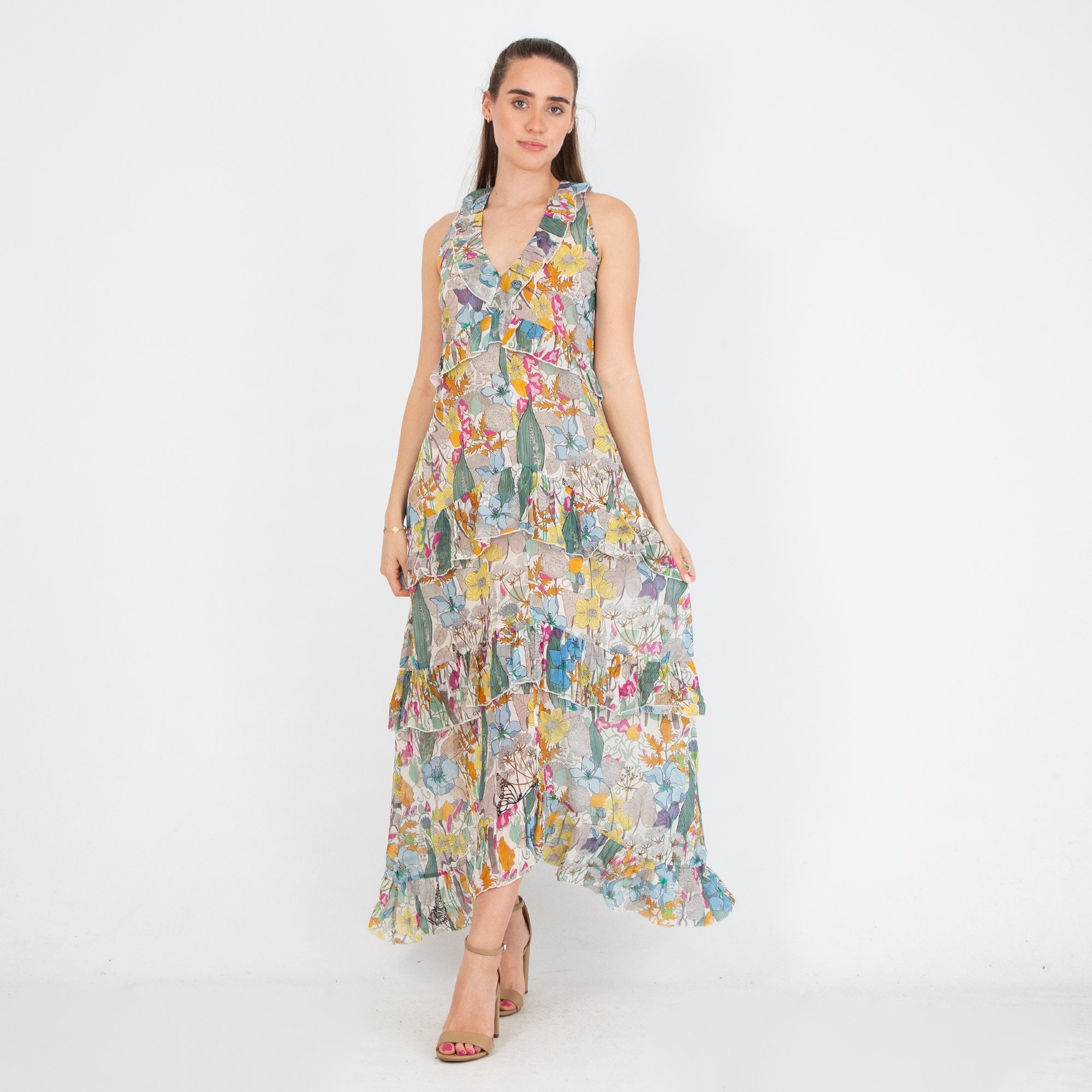 Dea Kudibal Frankie Floral Print Sleeveless Frill Layered Maxi Dress Posey