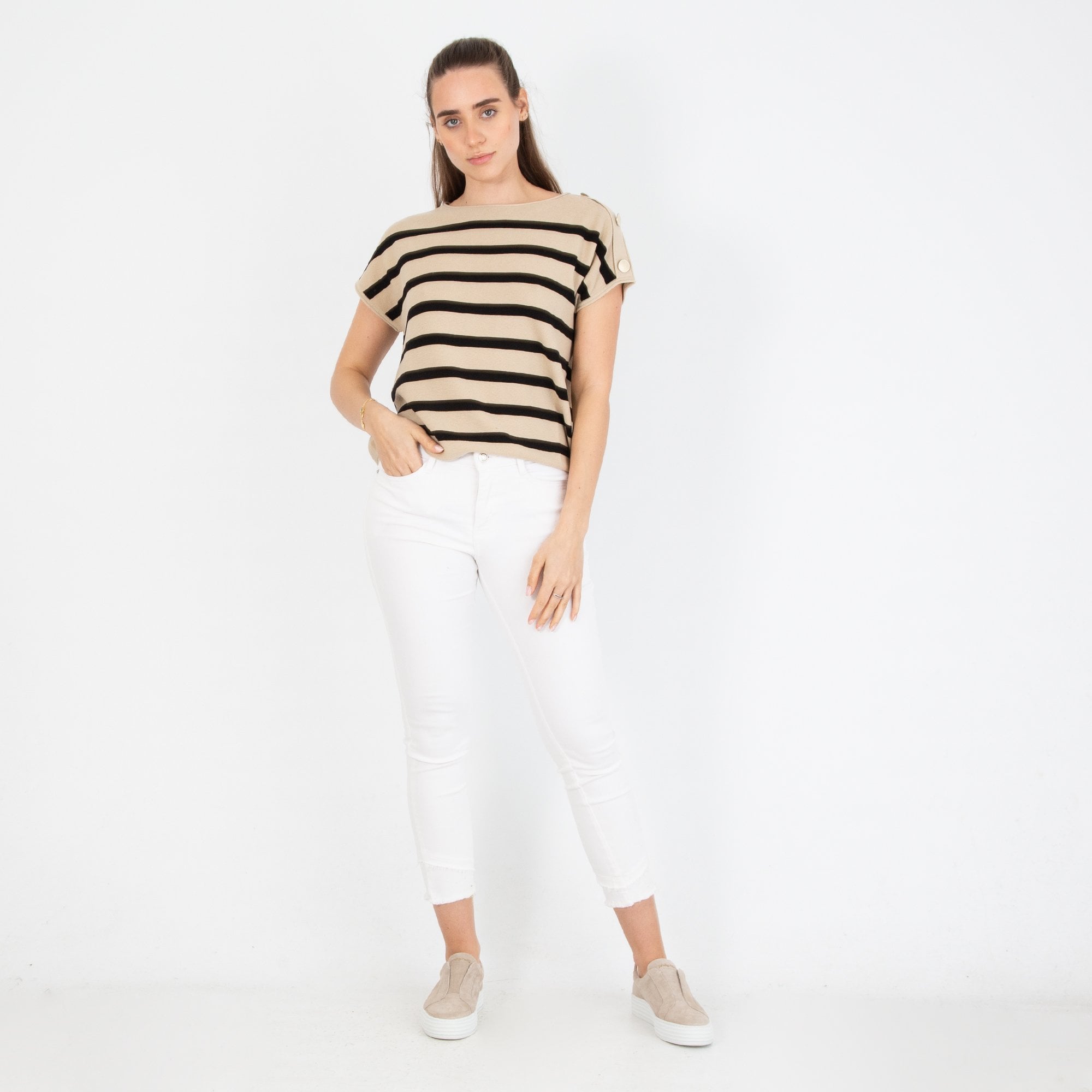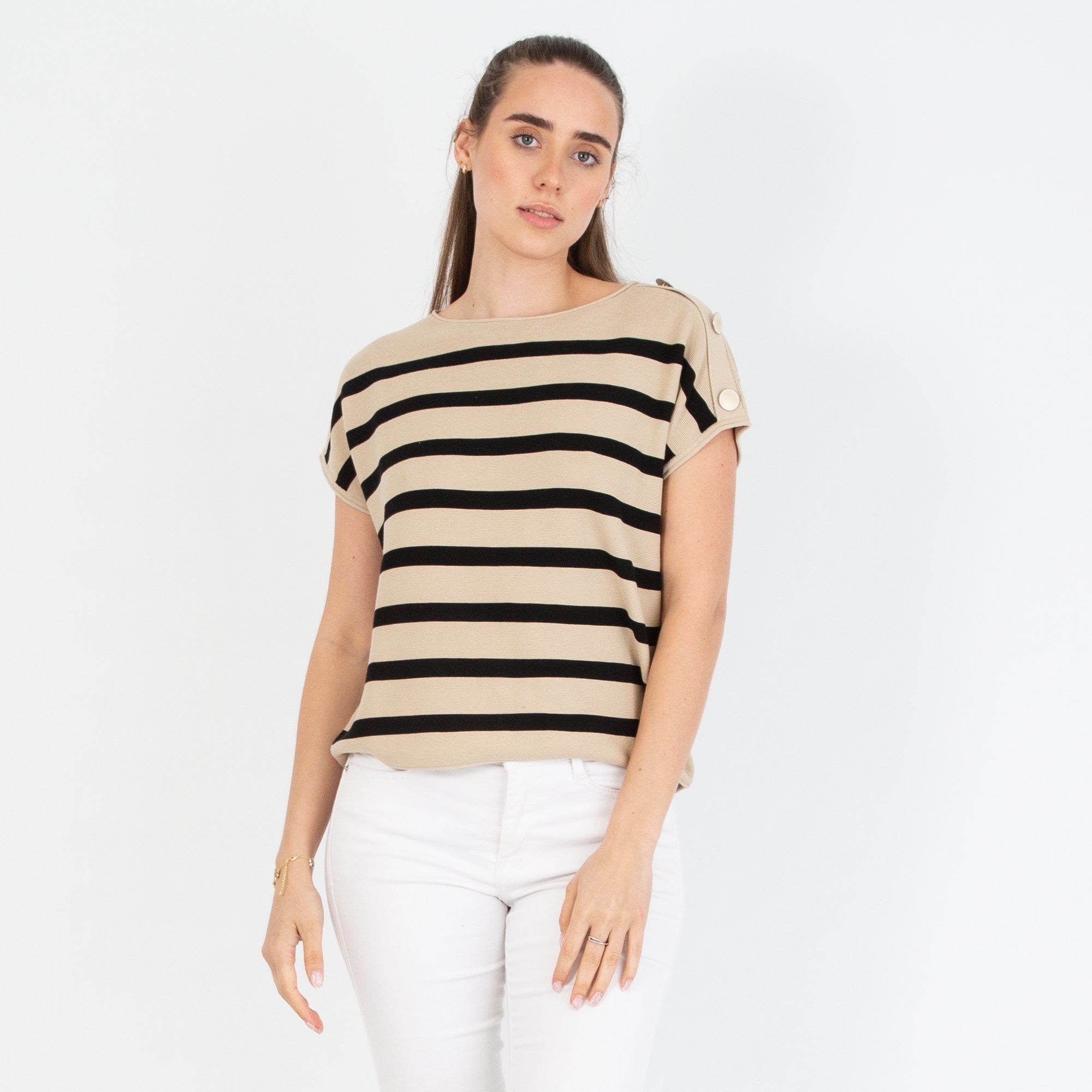 Luisa Cerano Stripe Knit Jumper With Shoulder Buttons Beige/black