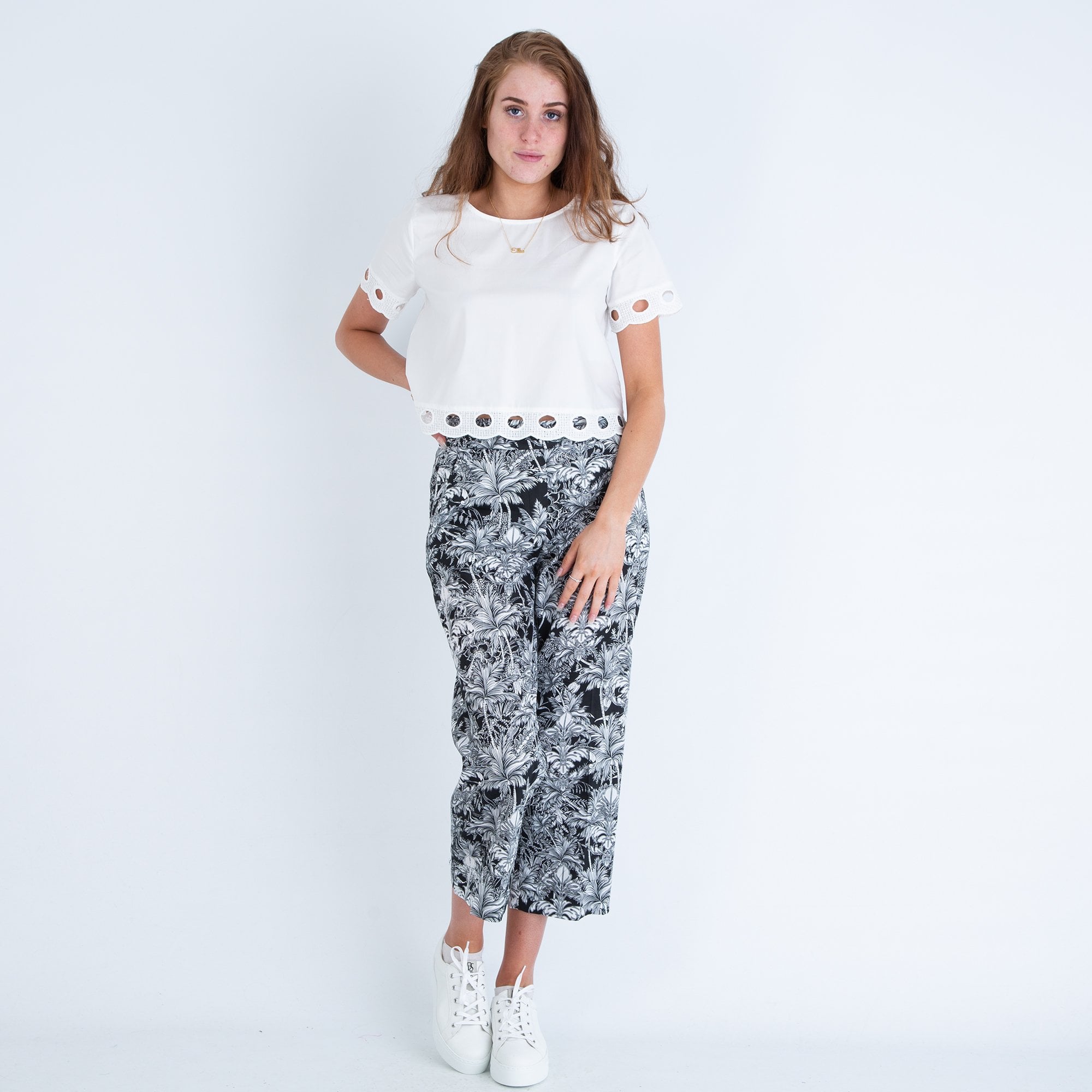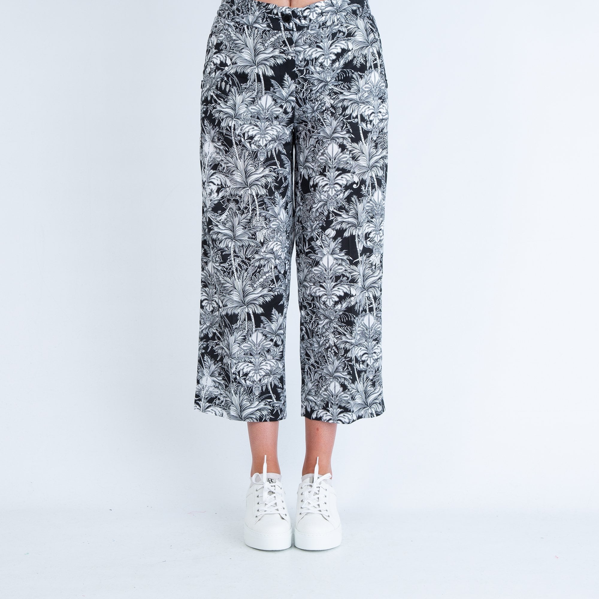 Riani Palm Tree Print Cotton Culotte Trouser Black/white