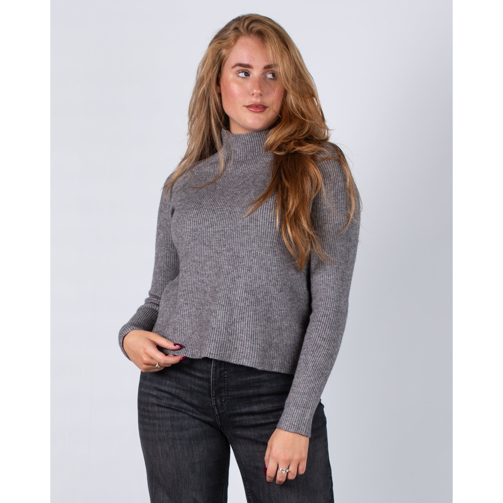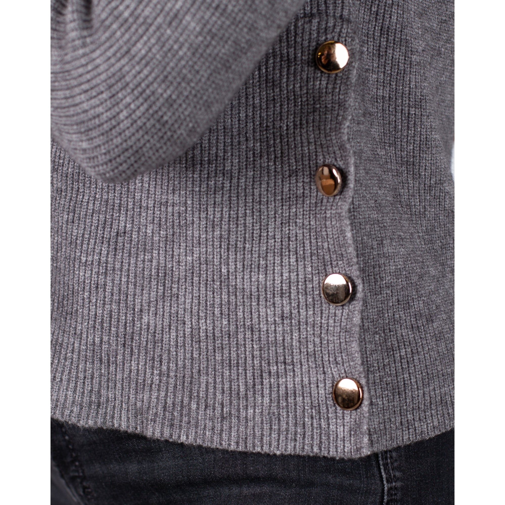 Sunny Studio Silvia Turtle Neck Ribbed Sweater With Button Down Side Grey