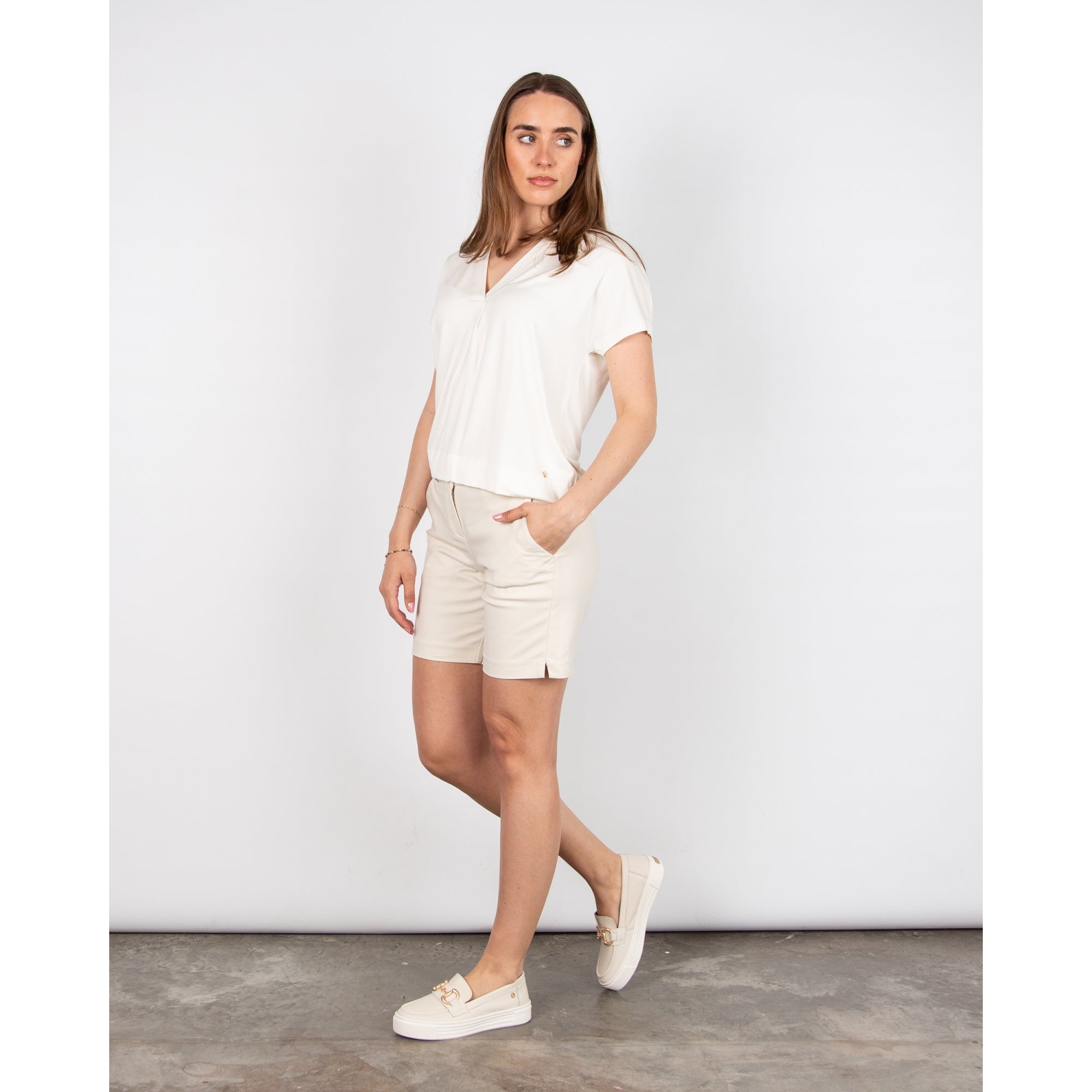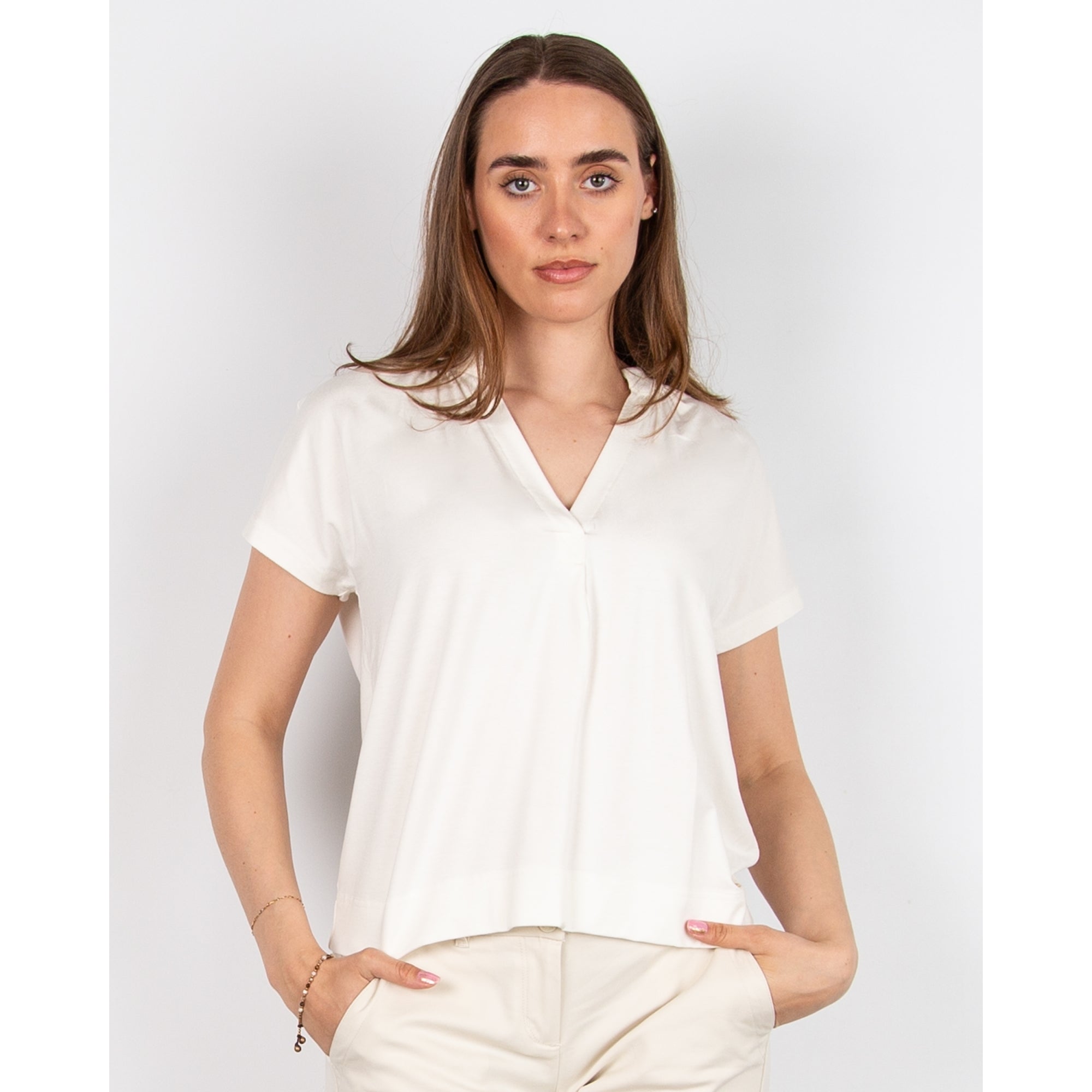 Mos Mosh Shira V Neck Short Sleeve T-shirt Ecru