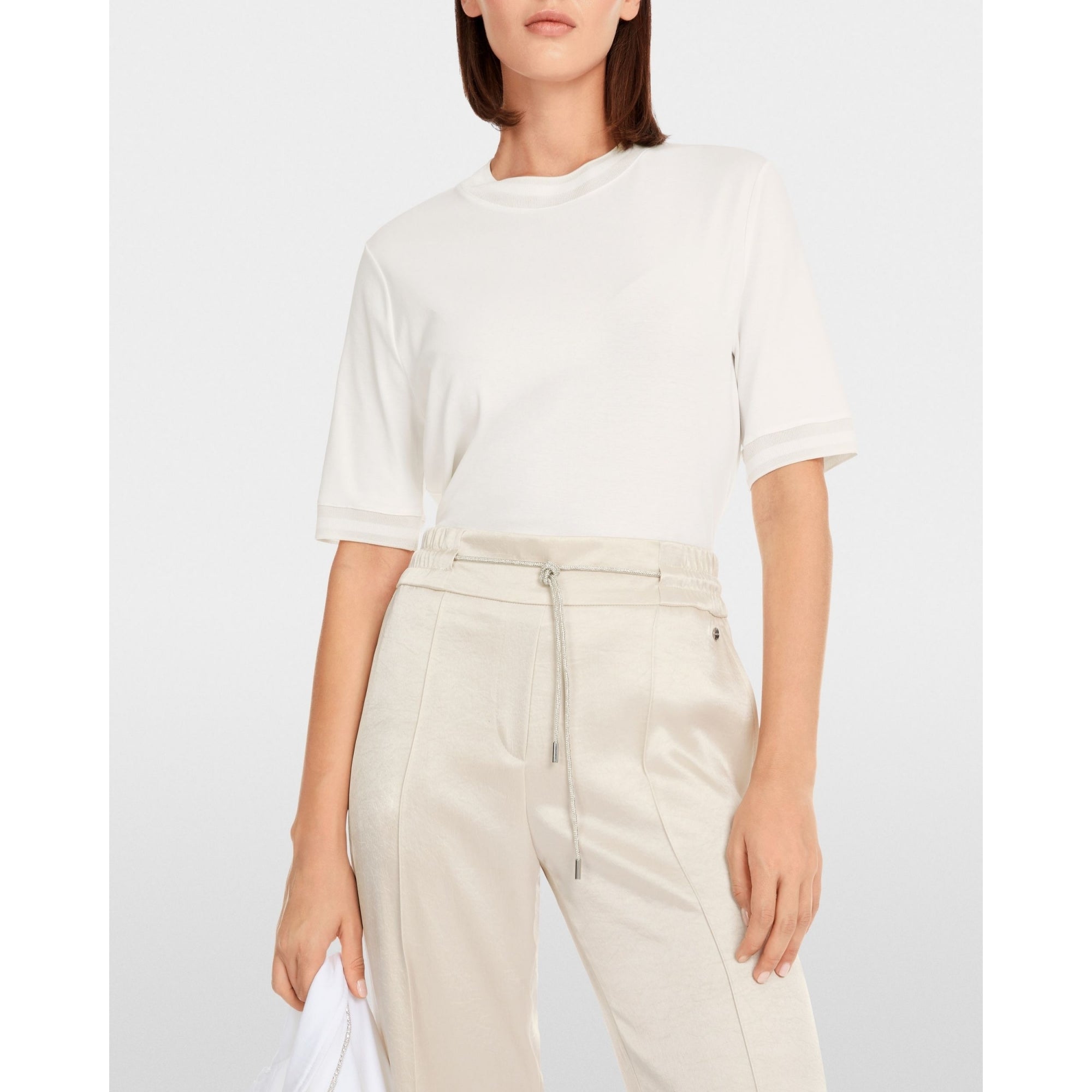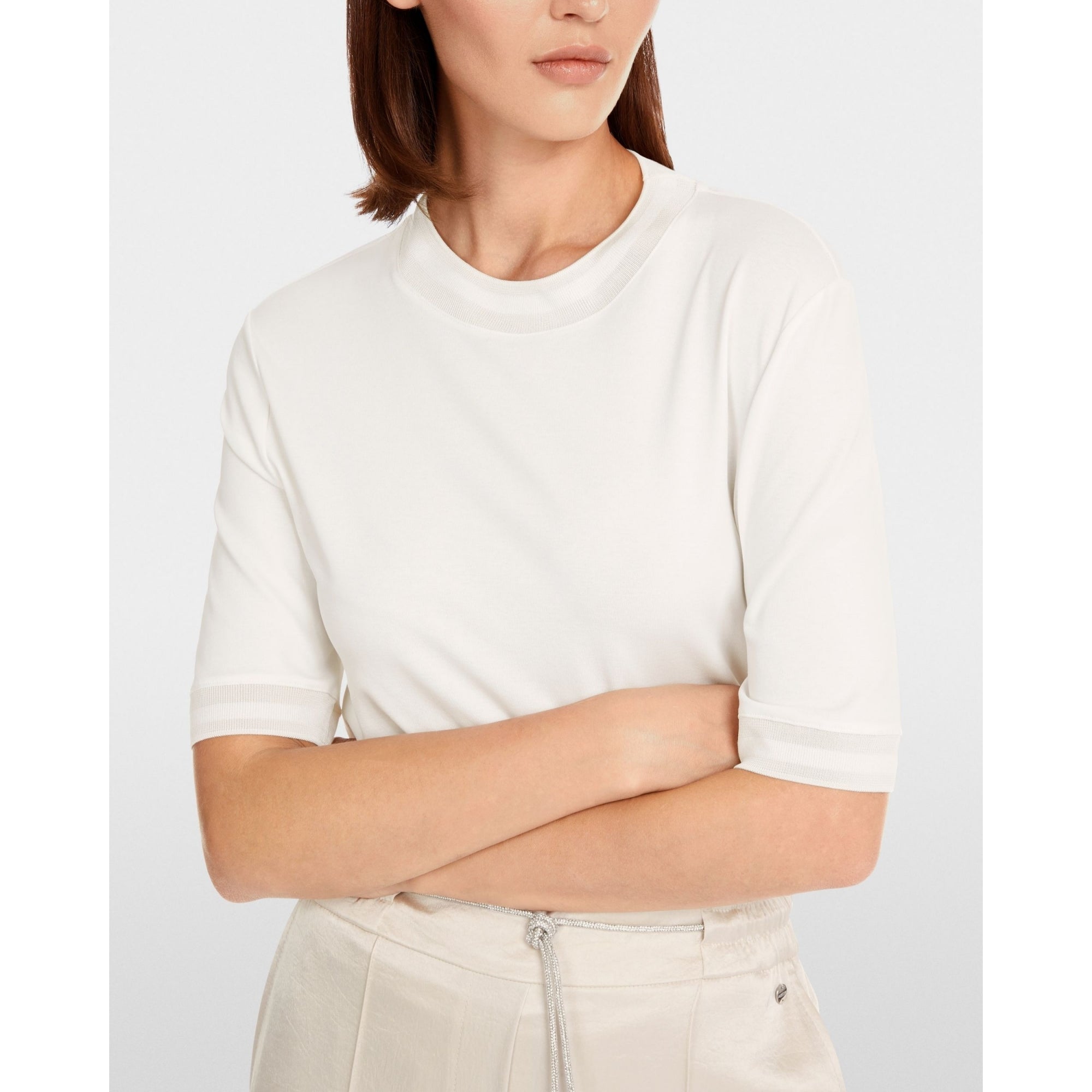 Marc Cain Round Neck T Shirt With Mid Length Sleeves Off White