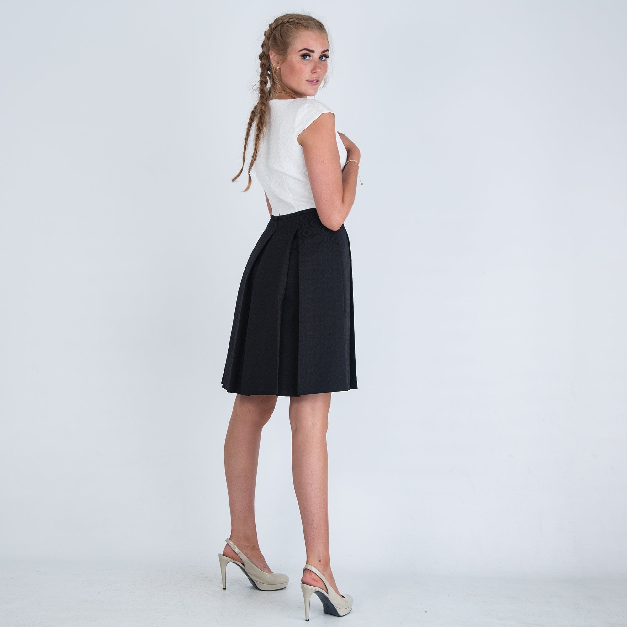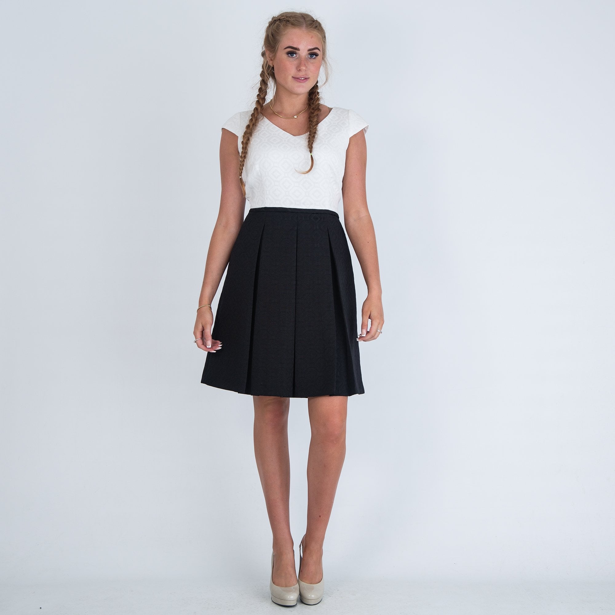 Tahari Box Pleat Dress With Cap Sleeves Black/White