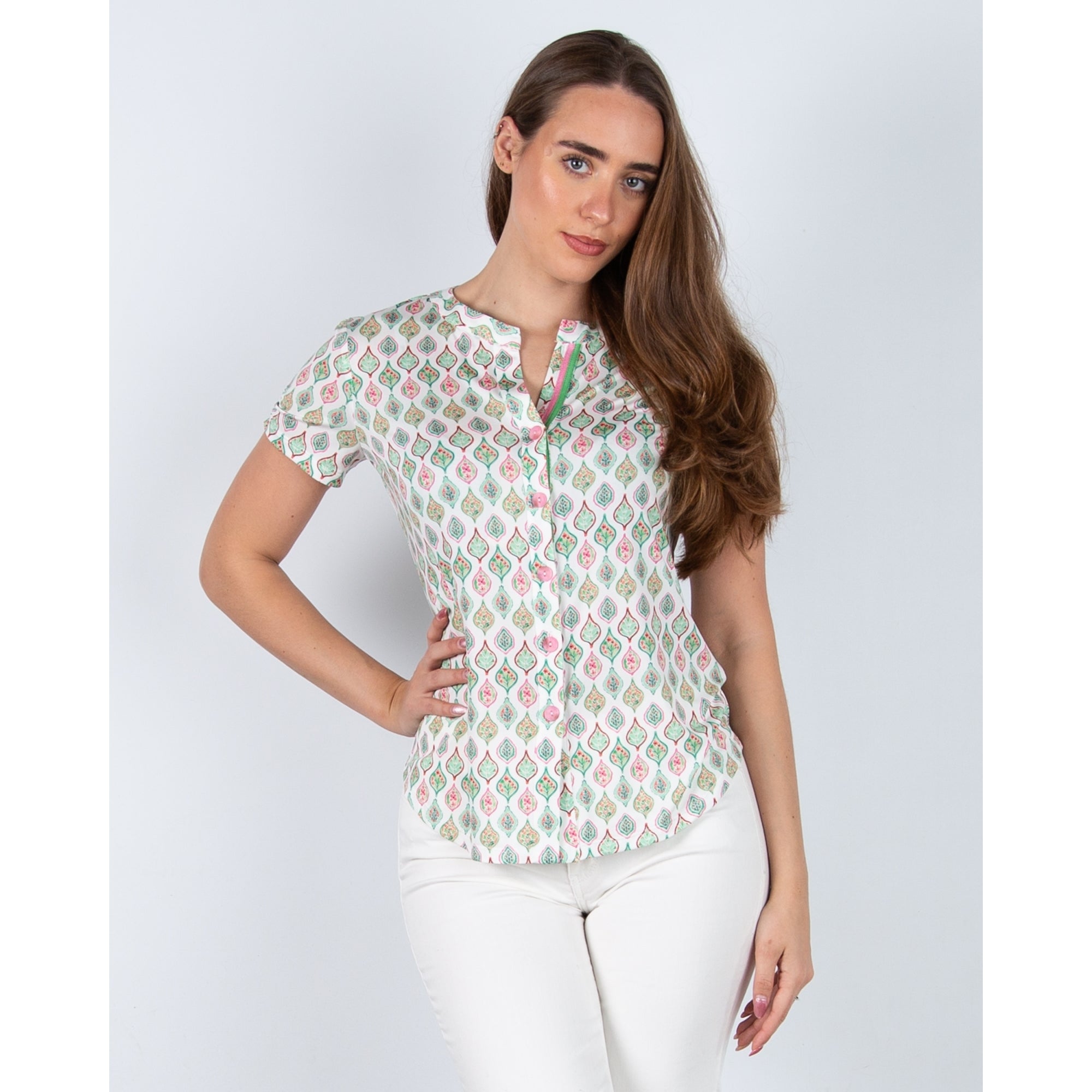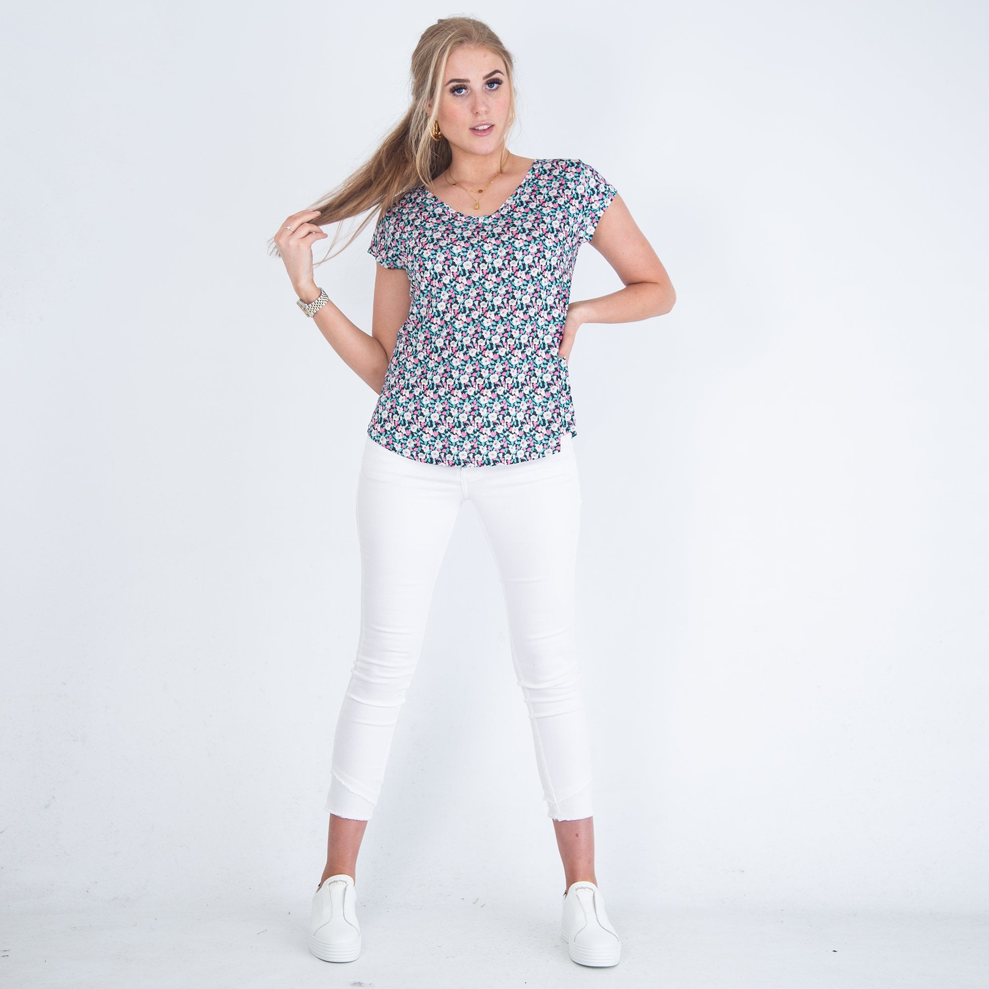Tinta Style Leia Leaf Print Stretch Jersey Short Sleeve Top Green/white
