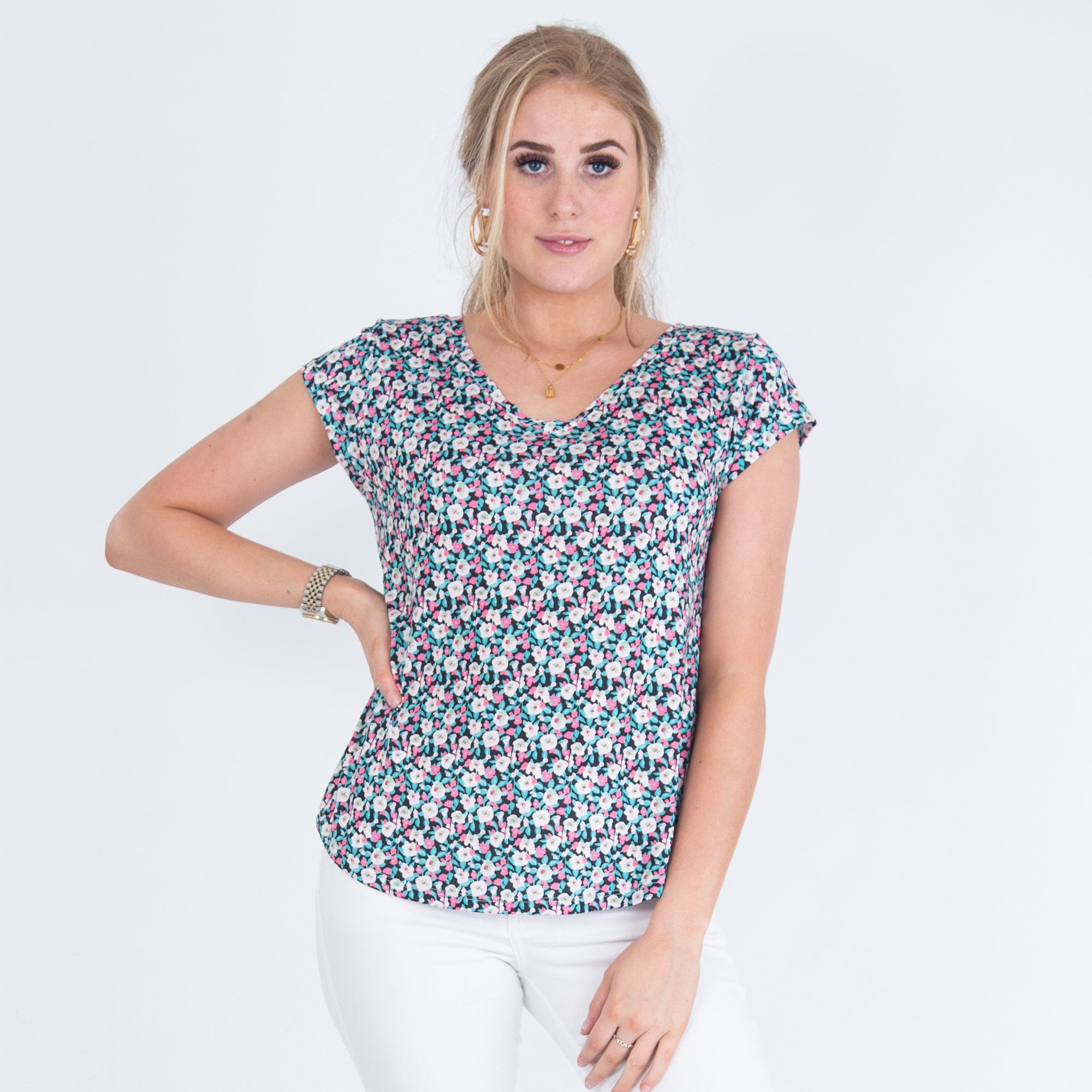 Tinta Style Debie/D Floral Print V Neck Top Black Multi