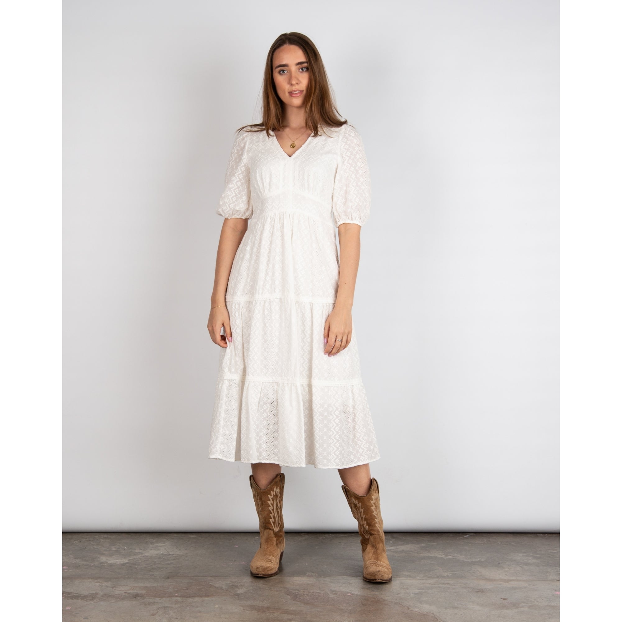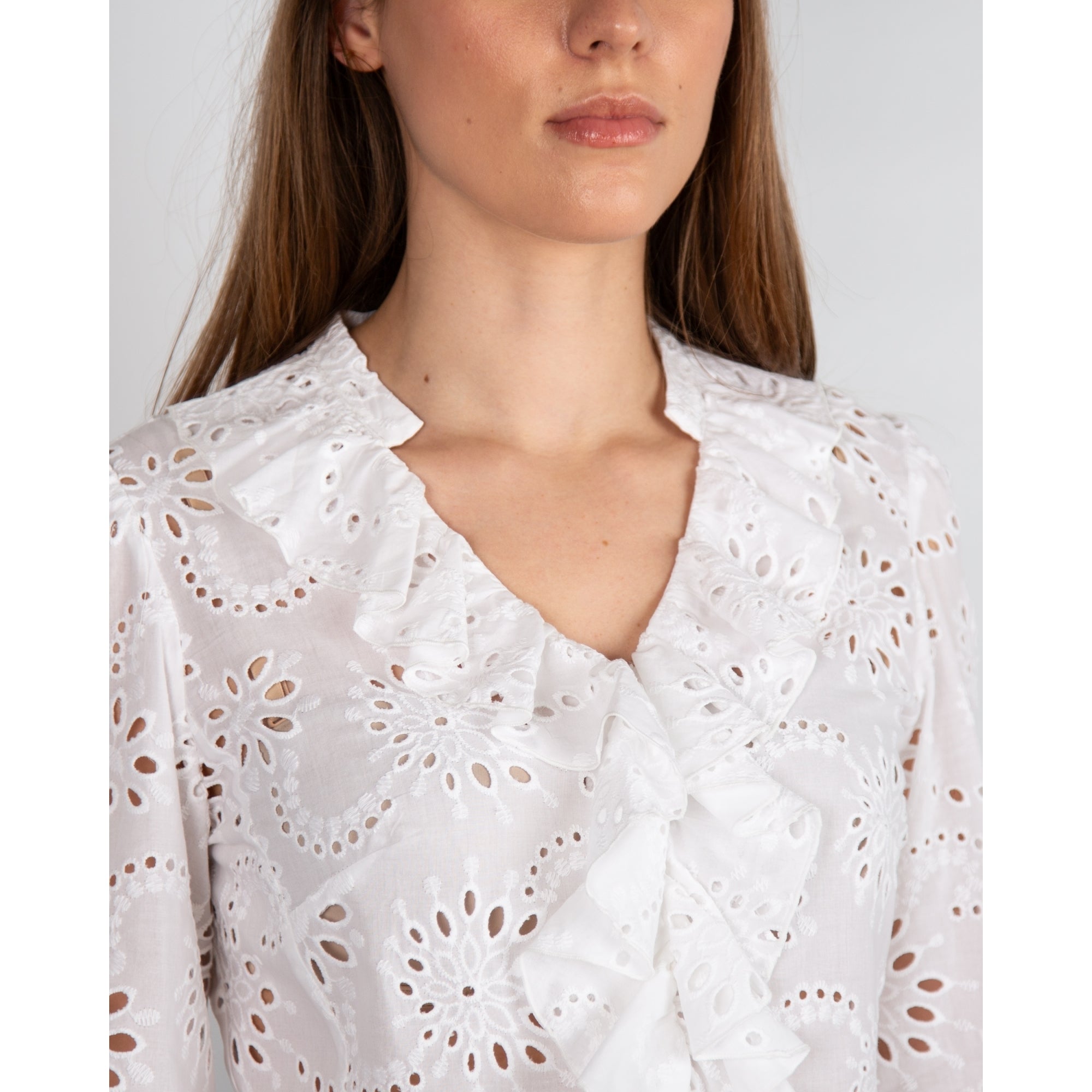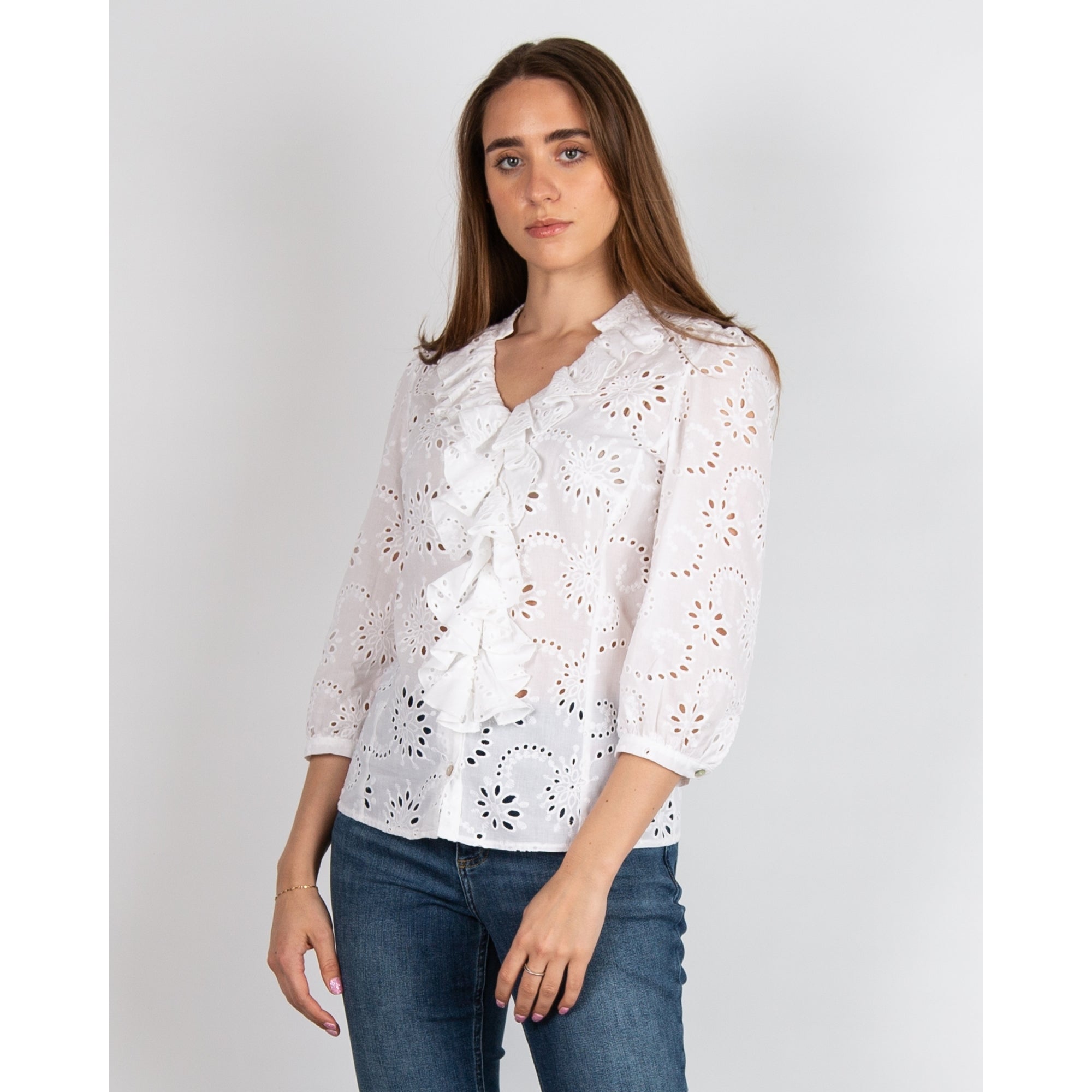 Tinta Style Claribel V Neck Frill Front Broderie Anglaise Blouse White