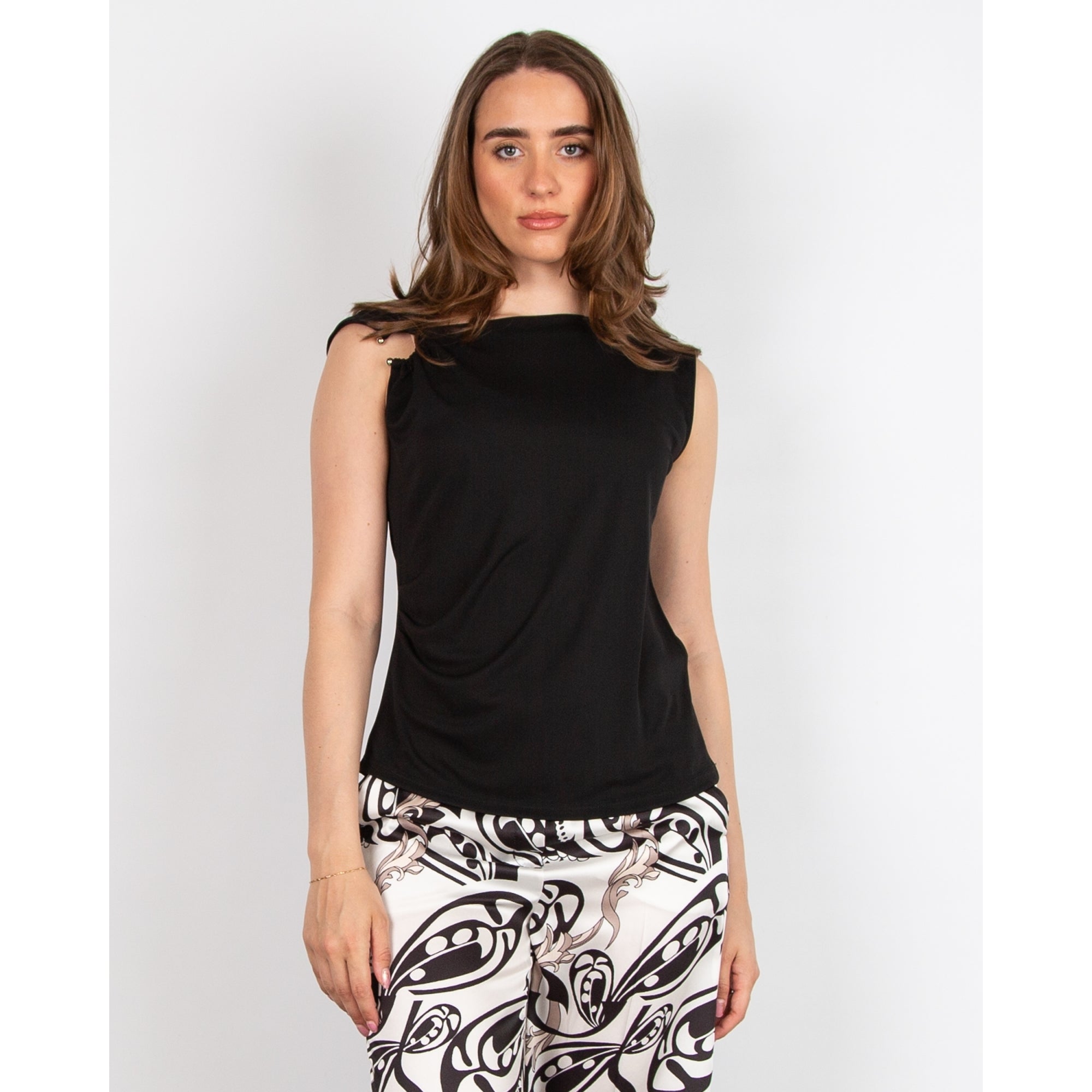 Tinta Style Alida Ruched Side Short Sleeve Top With C Ring Detail Black