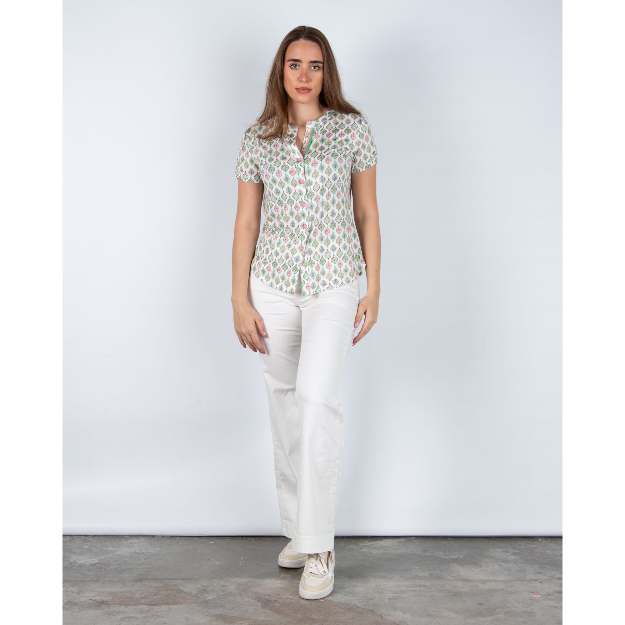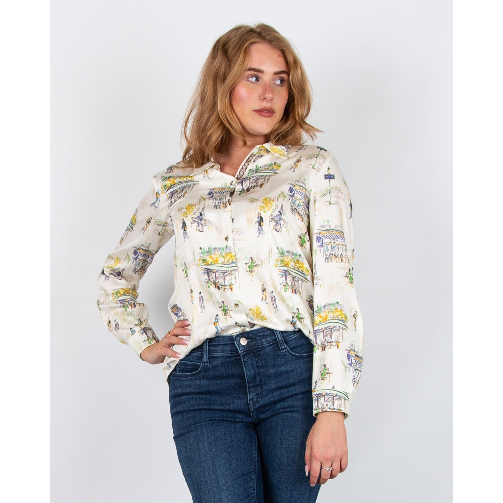 Tinta Style Gema Paris Sketch Print Blouse With Shirt Collar Cream