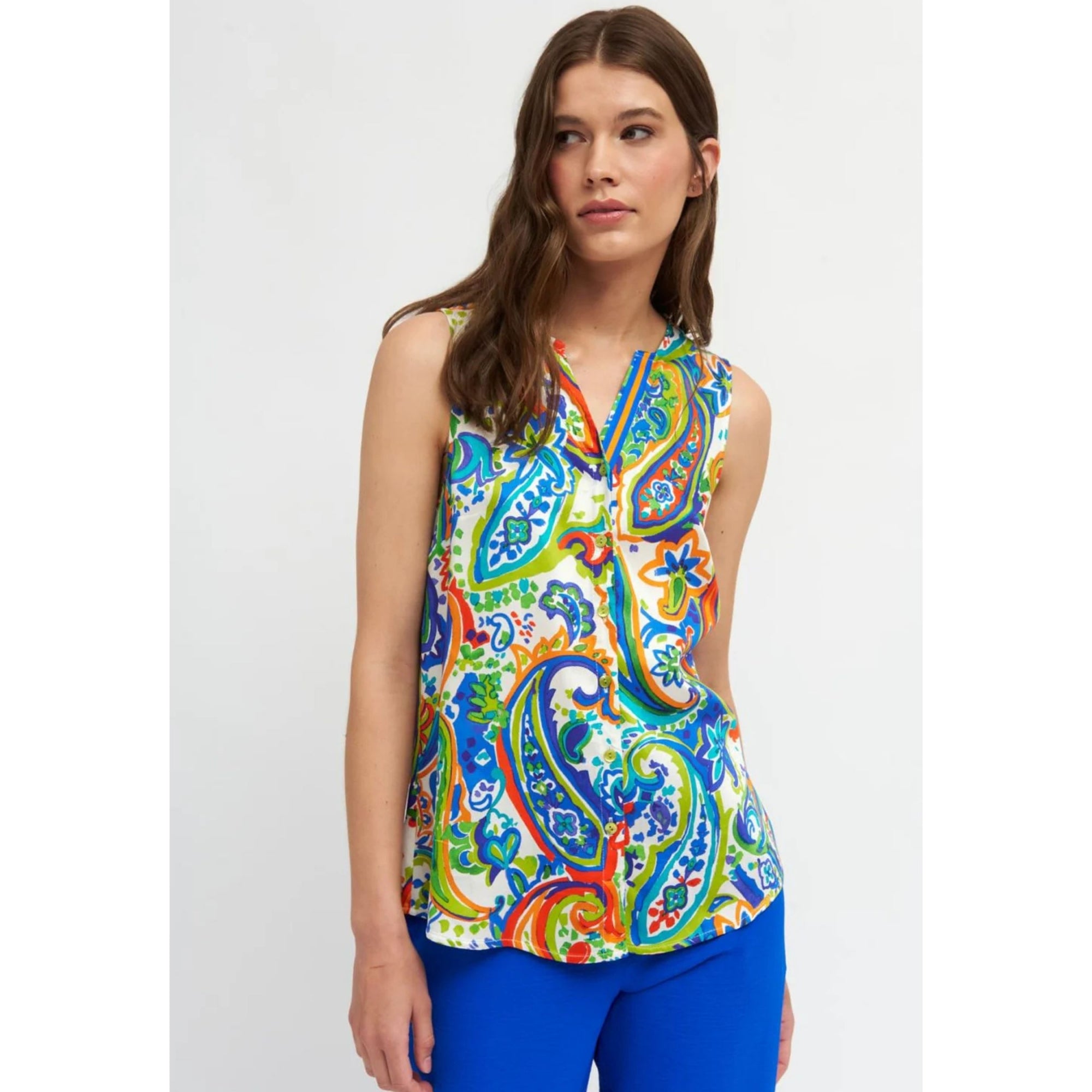Tinta Style Tati25 Painted Paisley Print Sleeveless Blouse Blue Multi