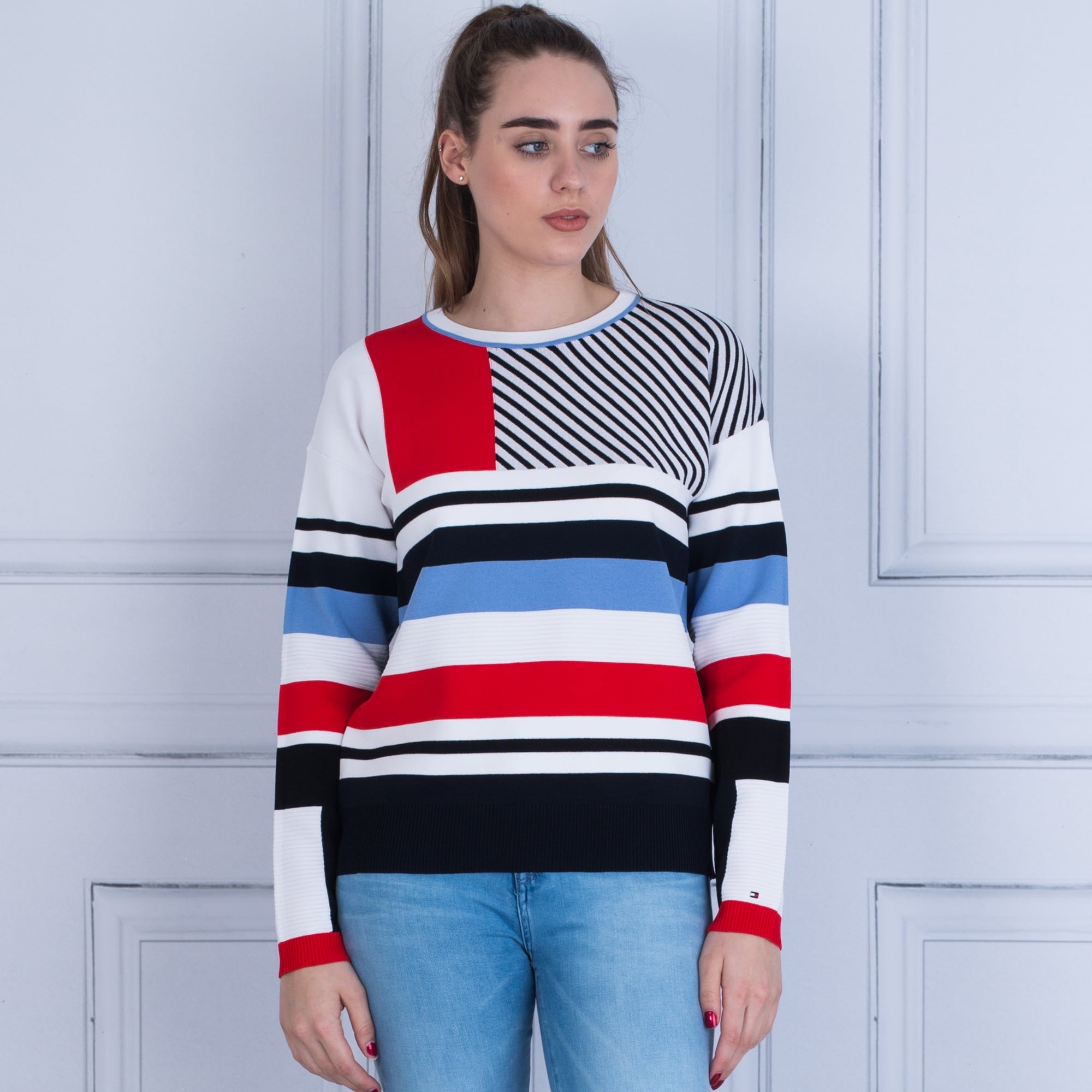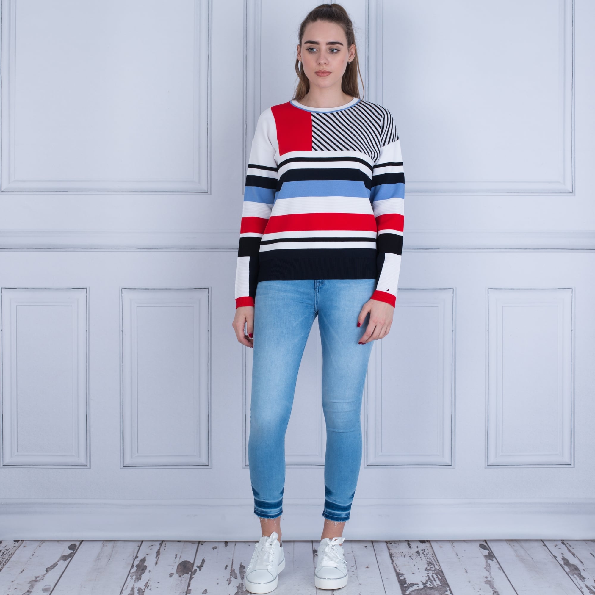 Tommy Hilfiger Pilaux Stripe Jumper White/Navy