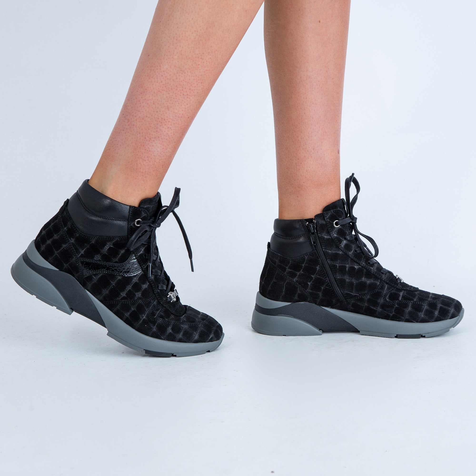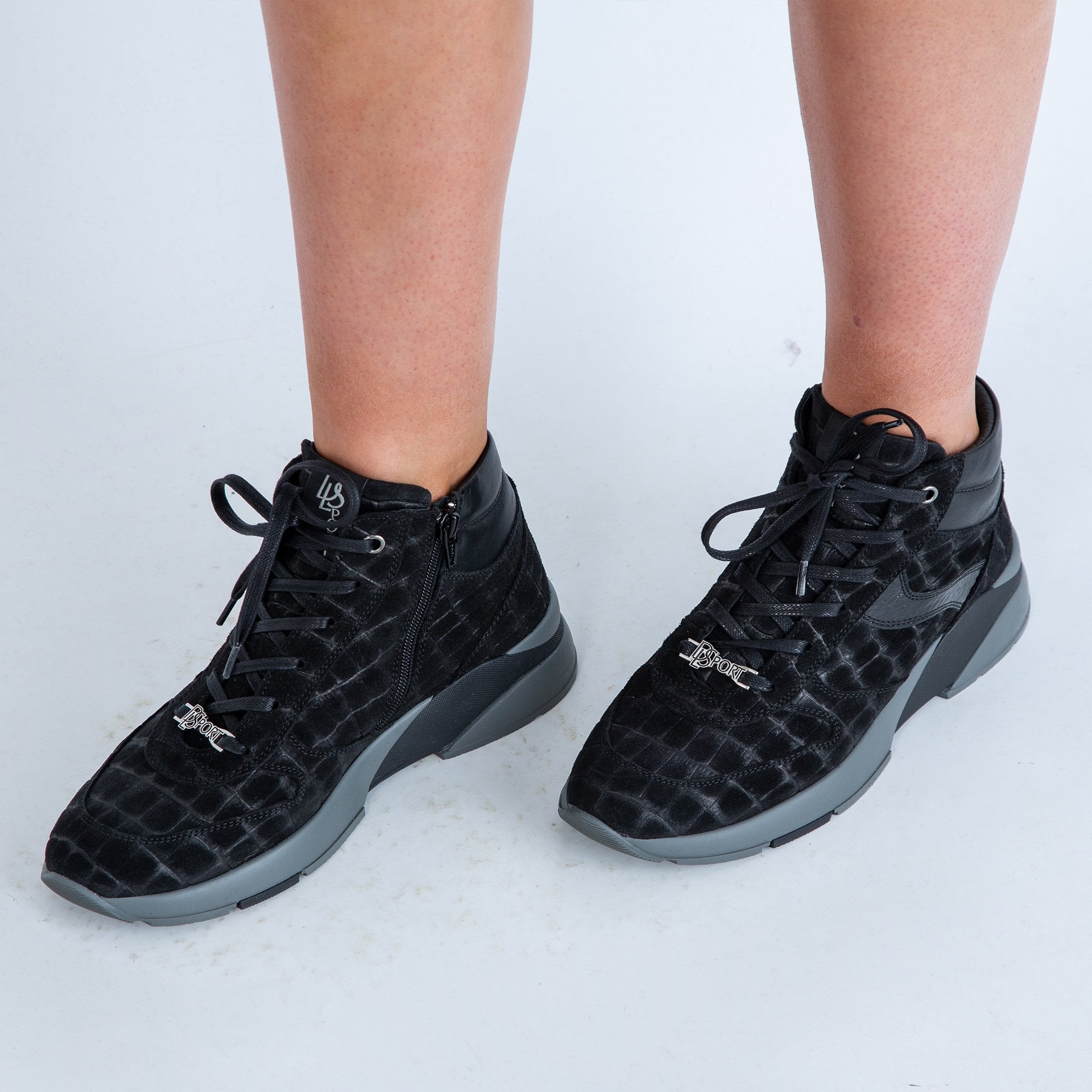 DL Sport Suede Croc Ankle Trainers With Side Zip Black