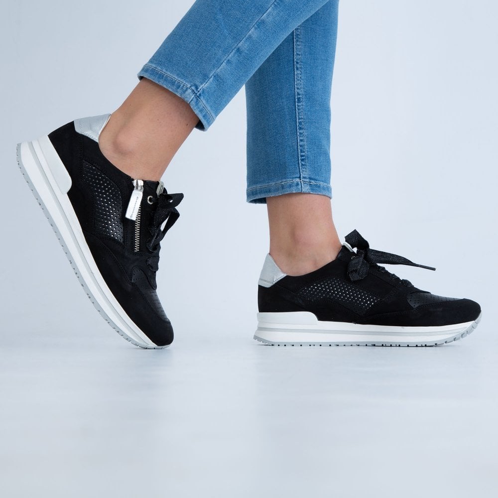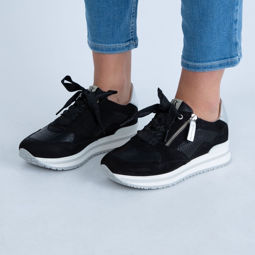 Dl Sport Ribbon Lace Up Suede Trainer With Side Zip Black