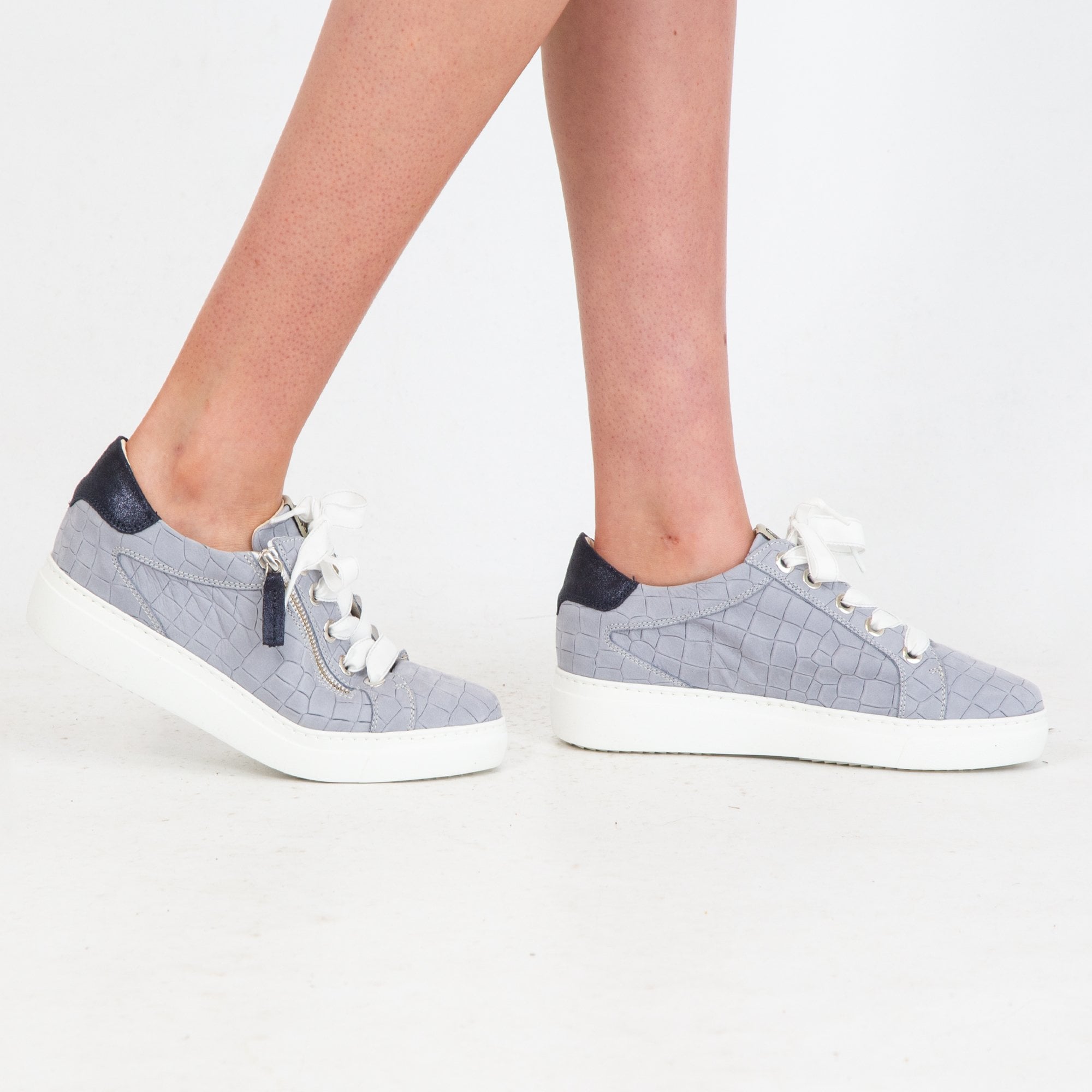 Dl Sport Suede Croc Flatform Trainer With Zip Pale Blue