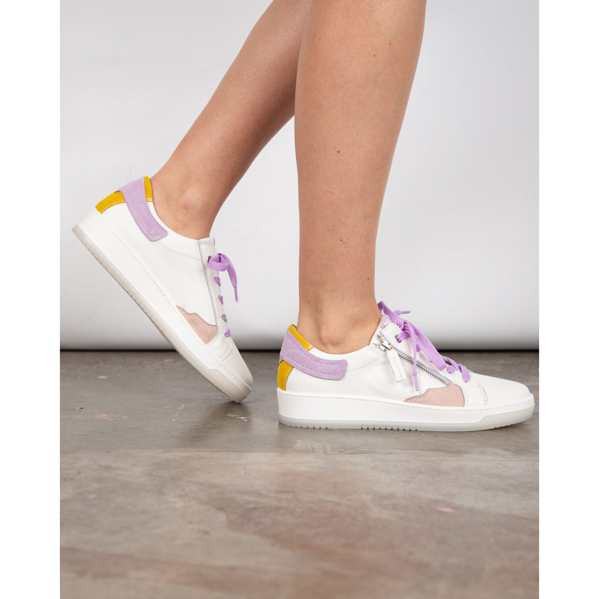 Dl Sport Grained Leather Zip Trainers With Contrast Suede White/purple