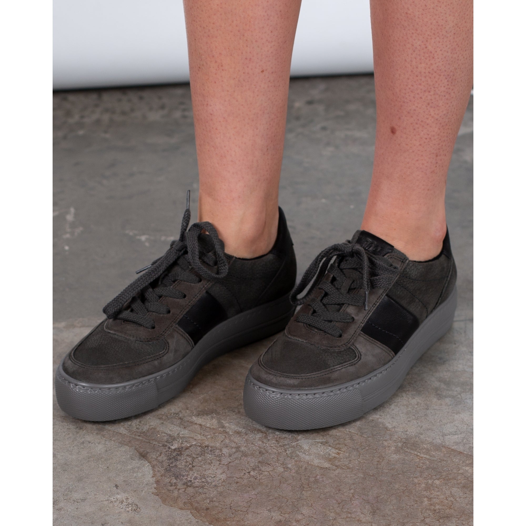 Paul Green Nubuck Suede Flatform Trainers With Side Stripe Dark Grey