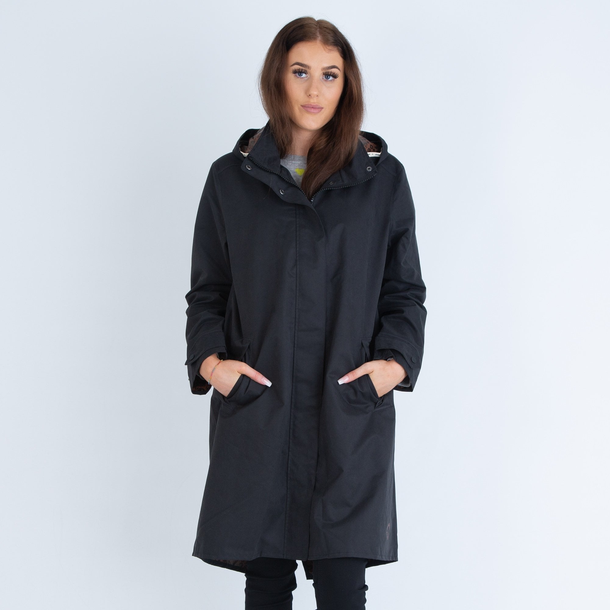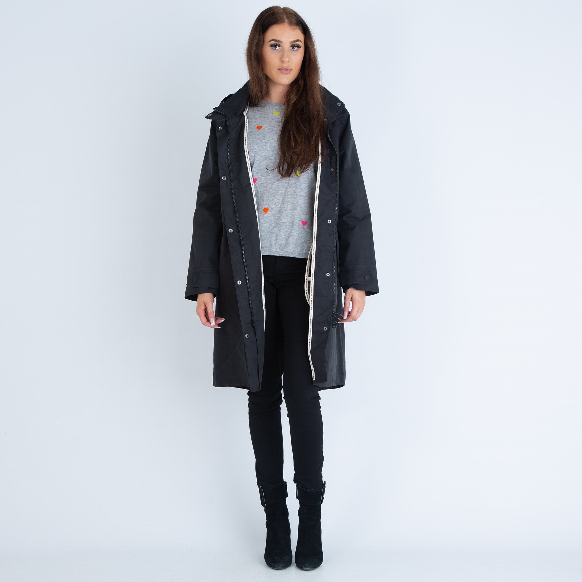 Scotch & Soda Long Hooded Mac With Floral Lining Black