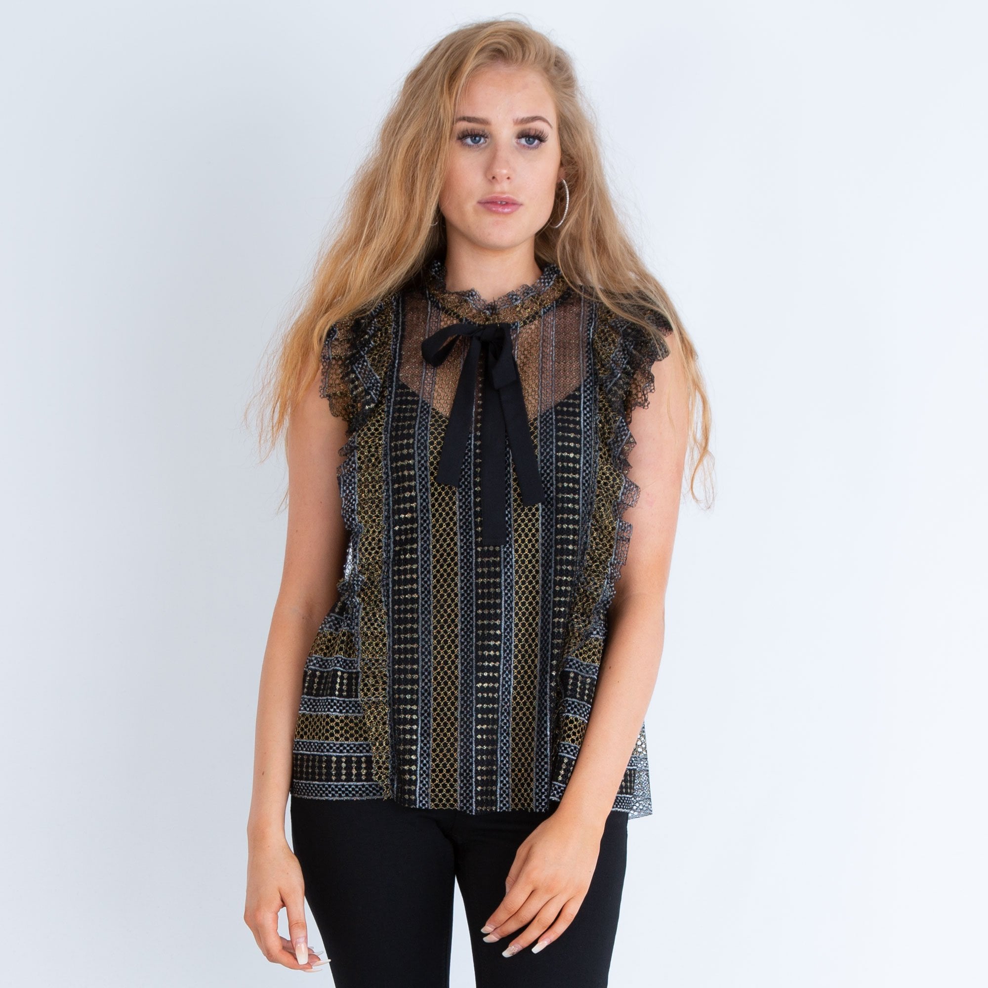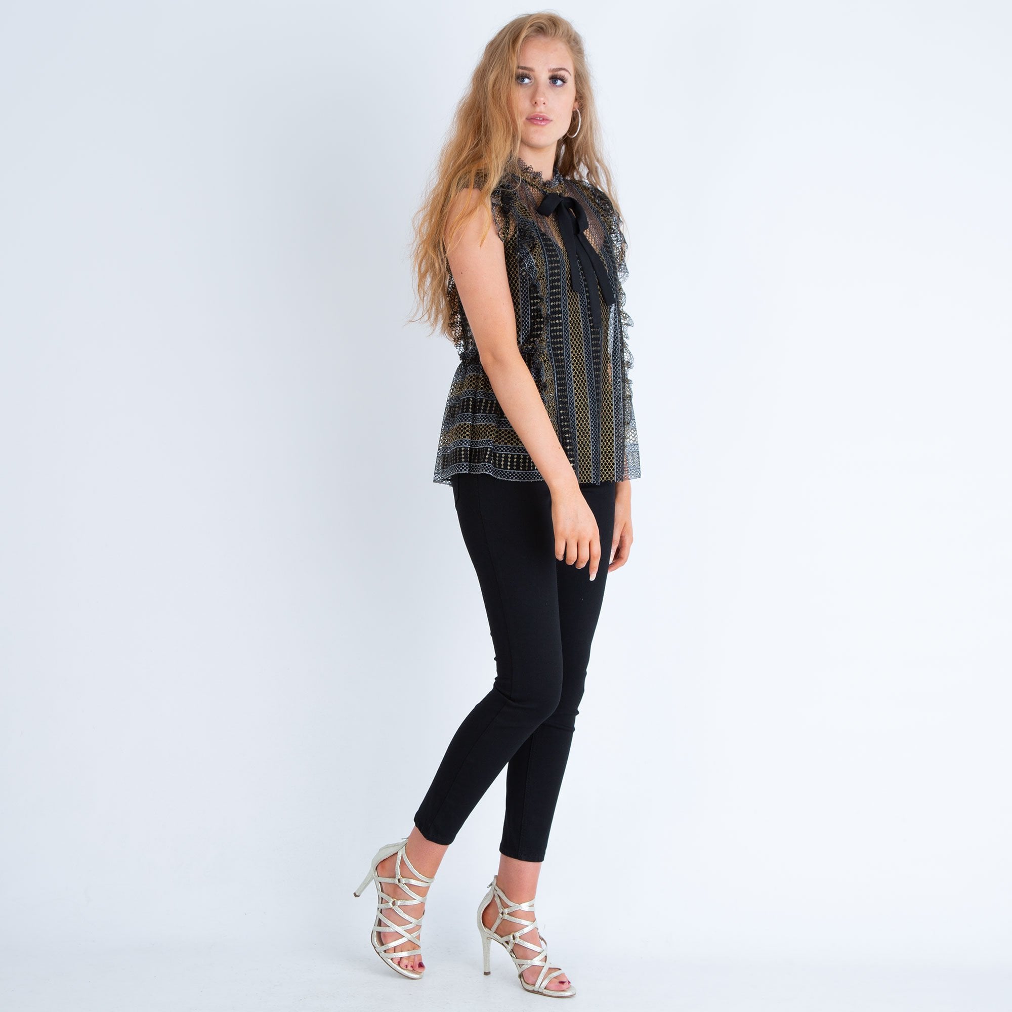 Twinset Pretty Sleeveless Mesh Top Black/Metallic