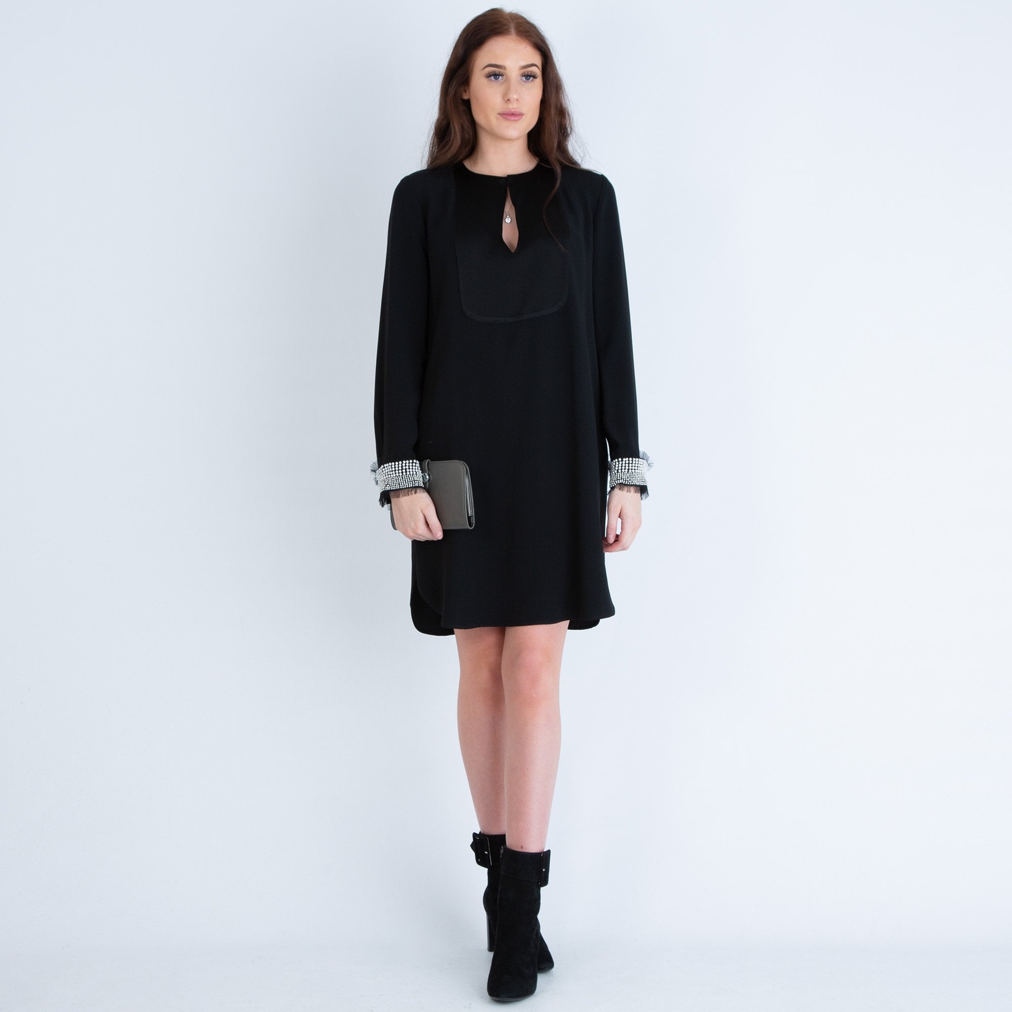 Twinset Crepe Evening Dress With Pearl Cuff Black