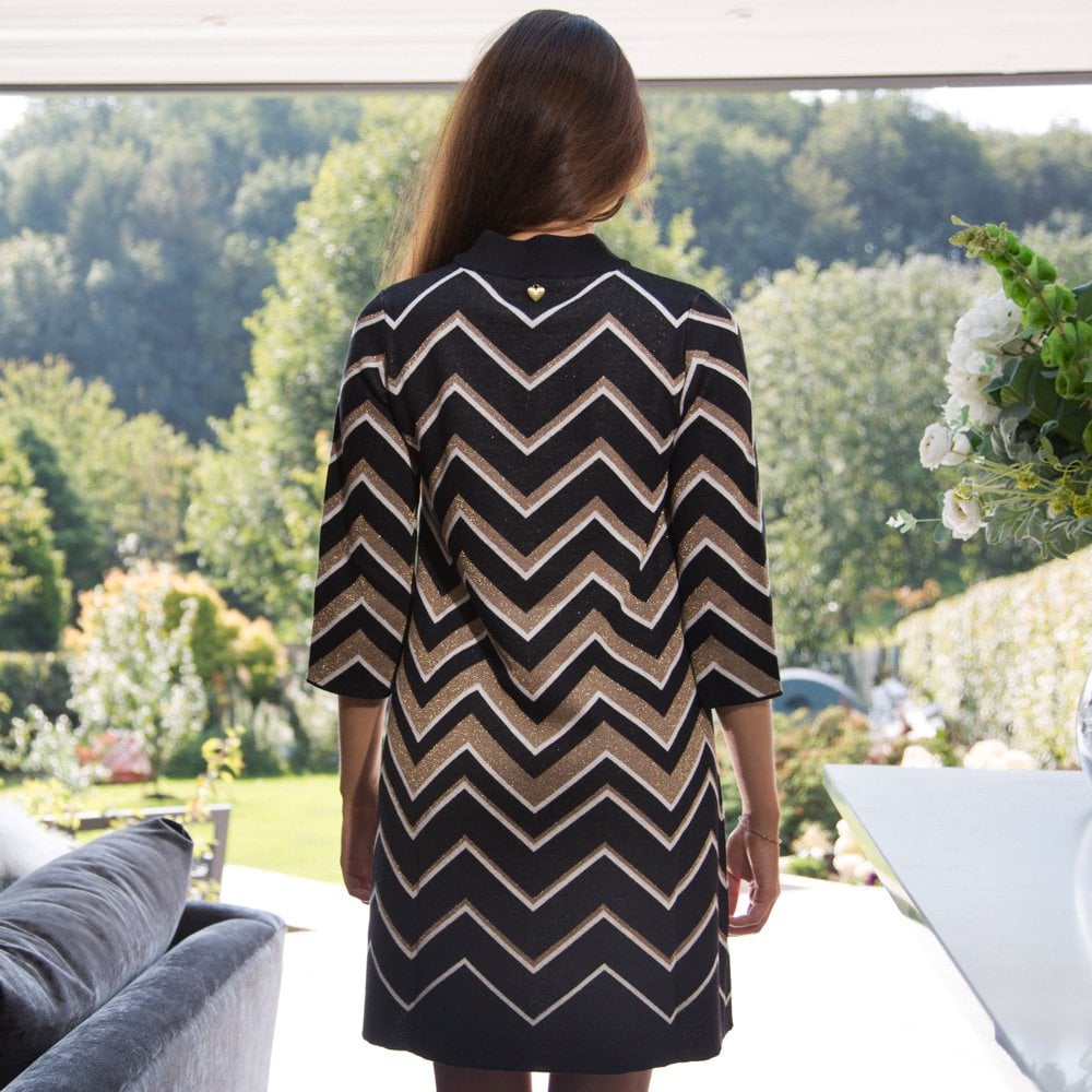 Twinset Zigzag Knitted High Neck Dress Black & Gold