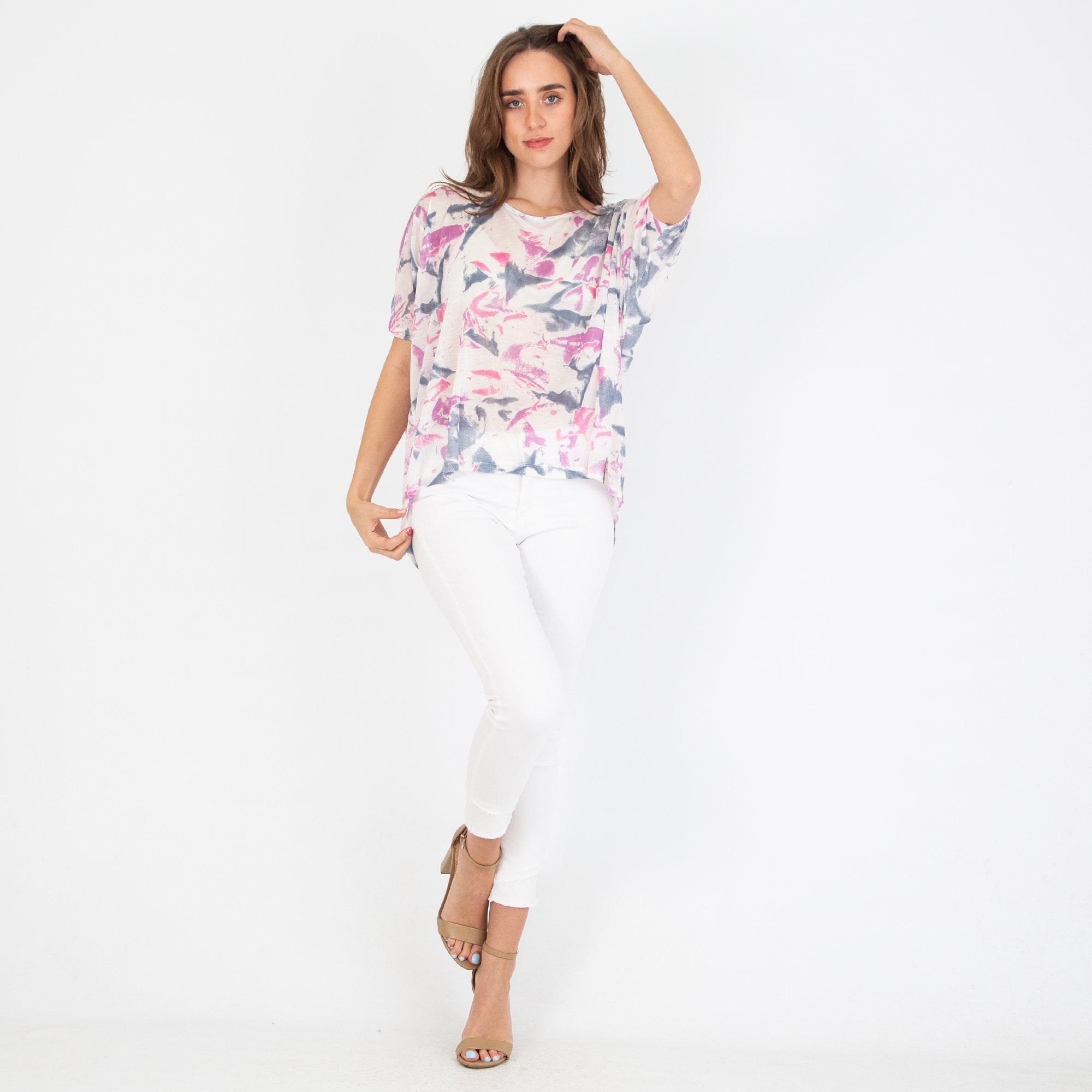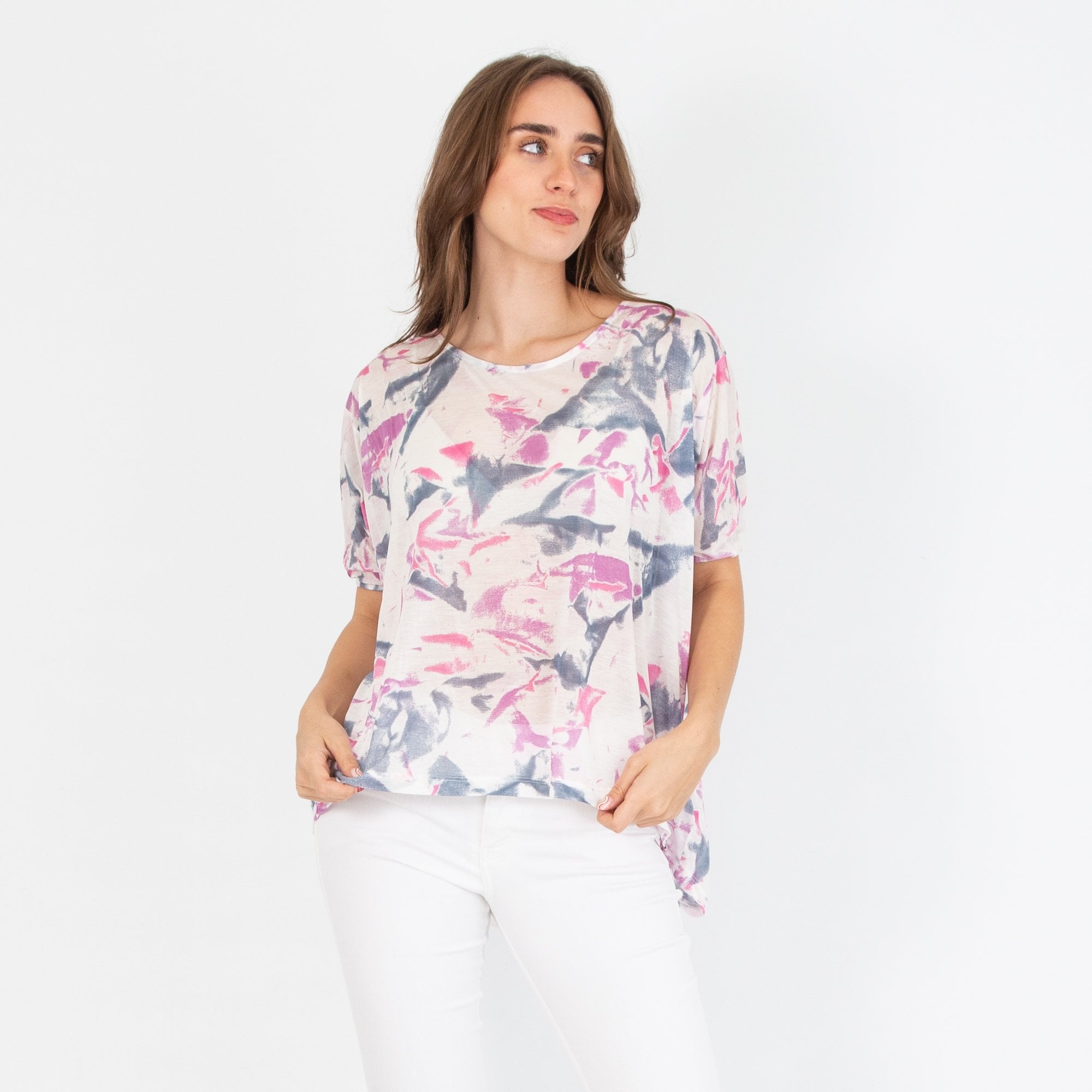 Twisted Muse Zelda Loose Bodied Top Lilac/Pink/White