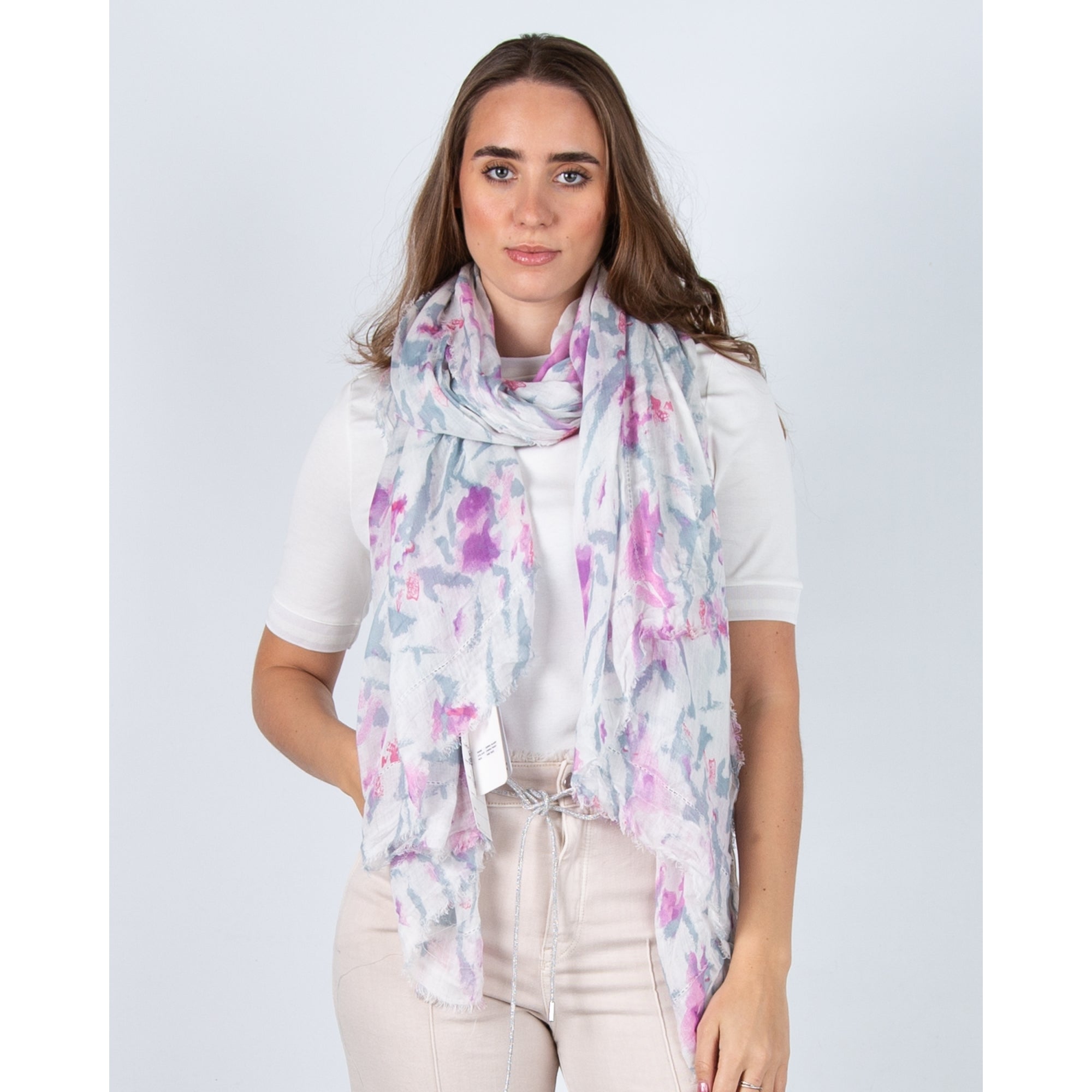 Twisted Muse Print Scarf Lilac/Pink/White