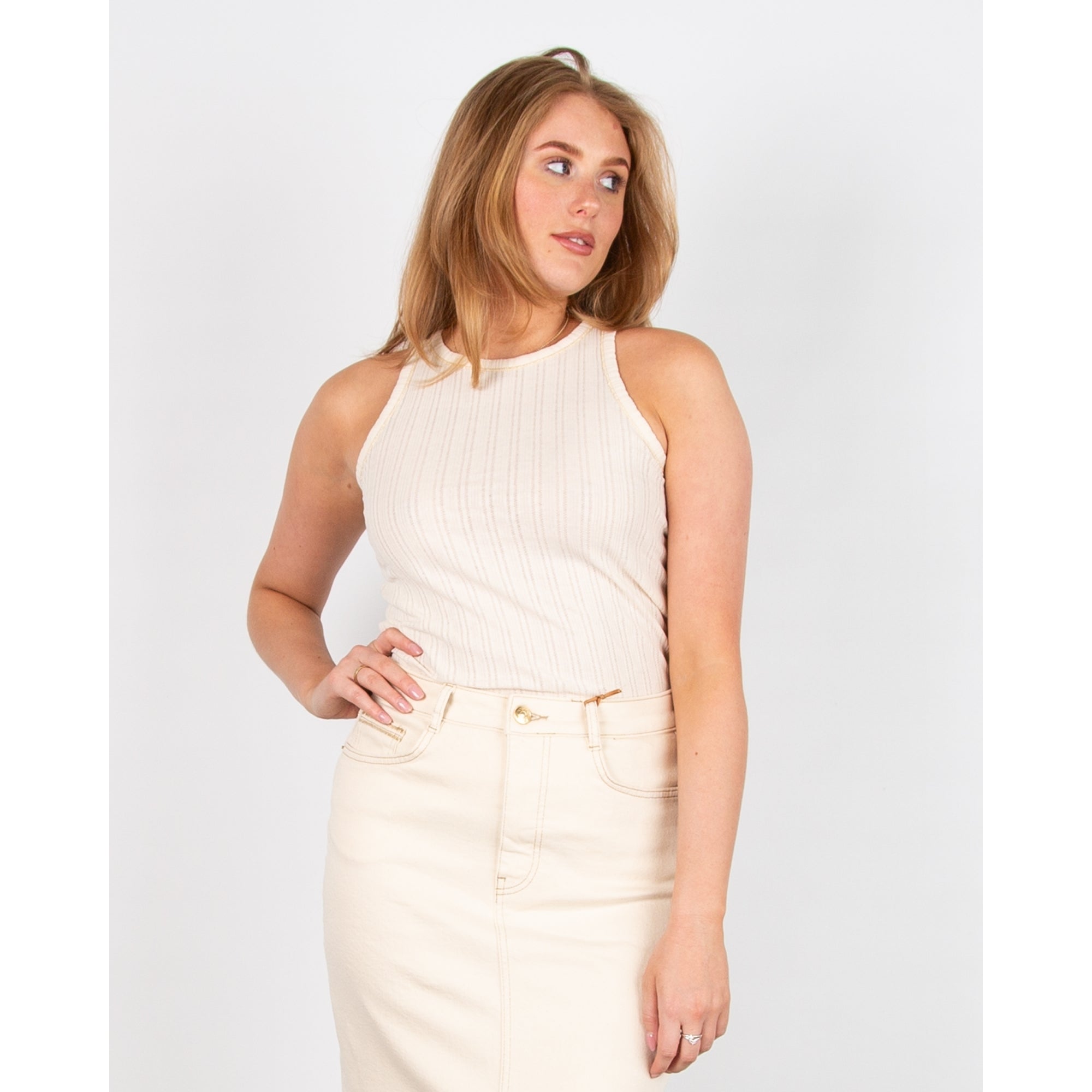 Mos Mosh Mendez Sleeveless Ribbed Gold Lurex Vest Ecru