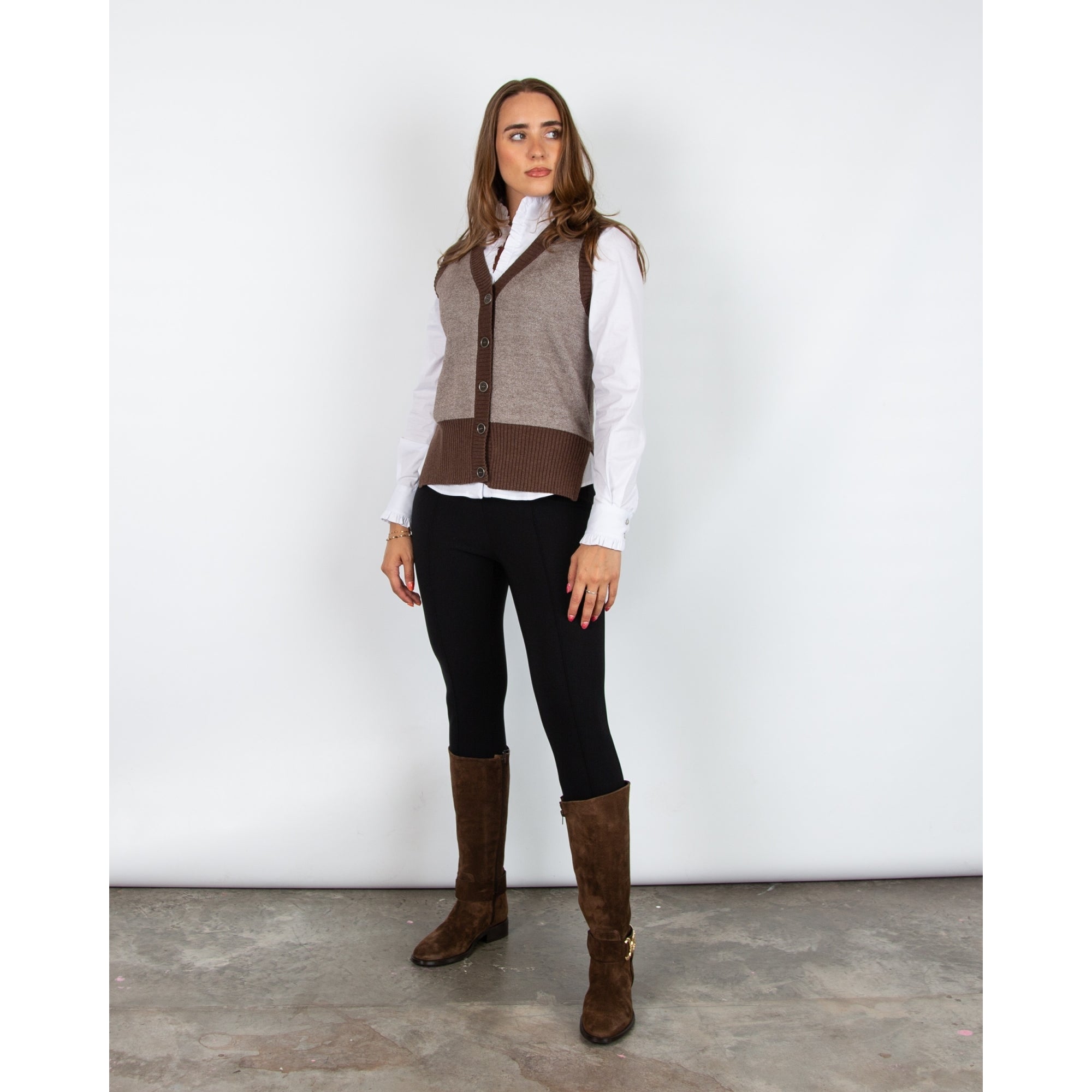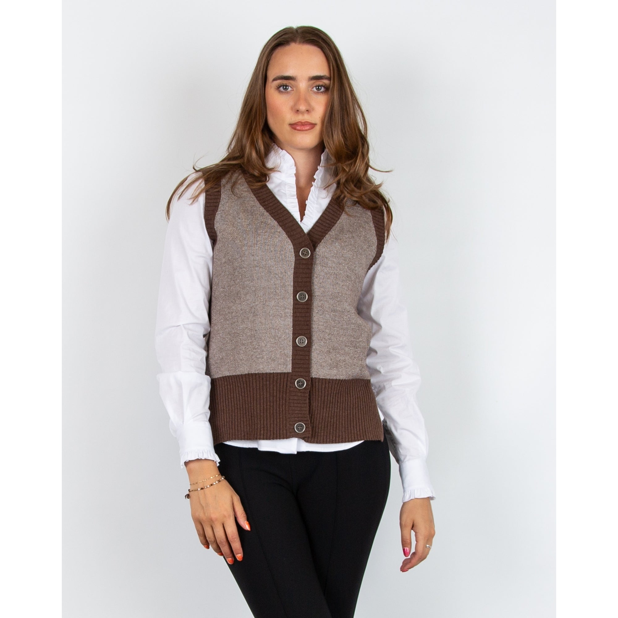 Marble Fashions V Neck Button Down Knit Waistcoat Brown/white 220