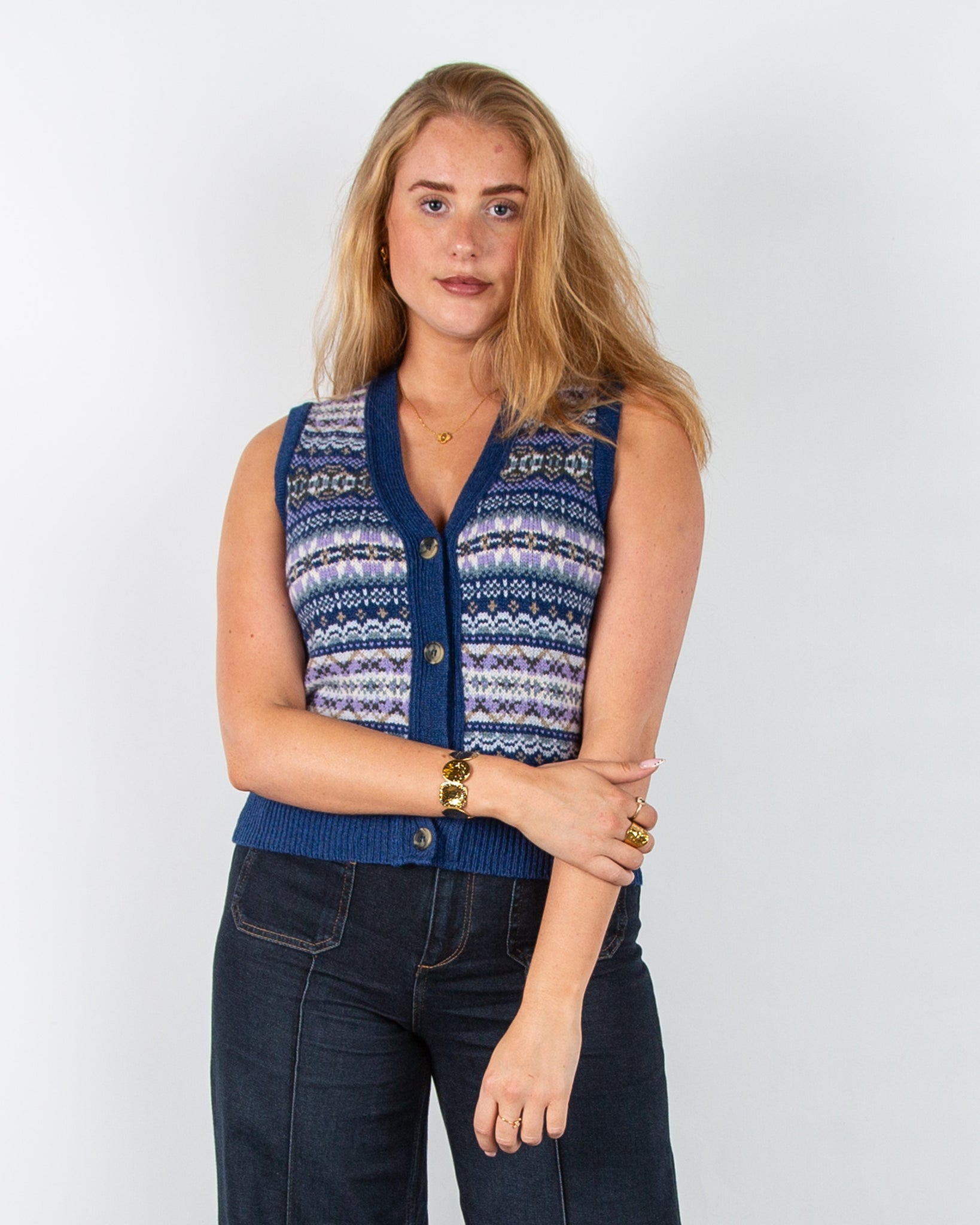 Marble Fashions V Neck Button Down Knit Waistcoat Blue/white 225