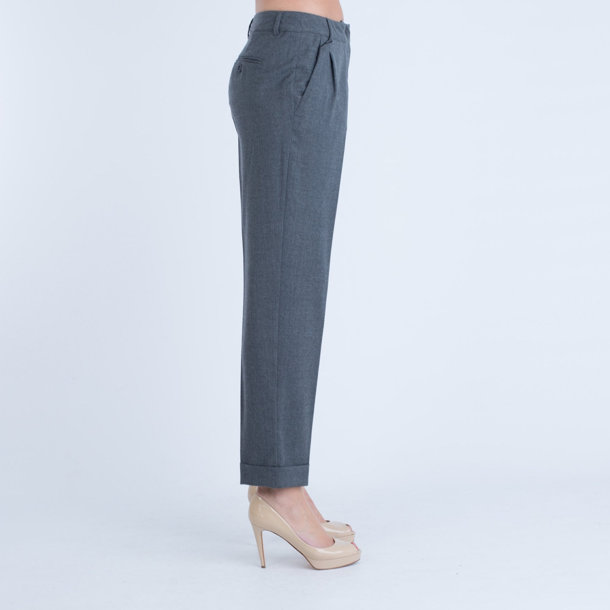 Weekend By Maxmara Buono Fine Check Tailored Trouser Dark Grey