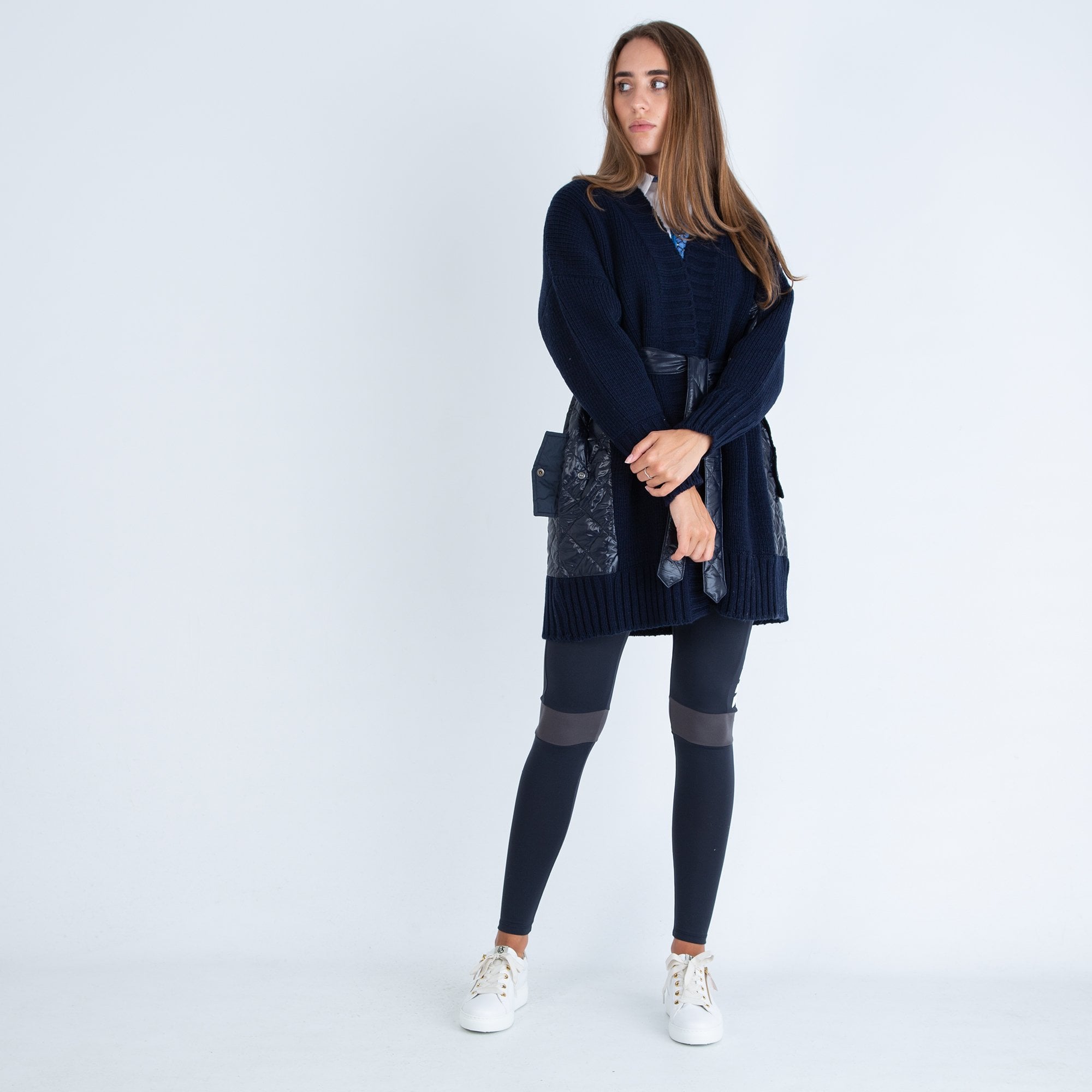 Weekend By Maxmara Sahara Wool Cardy With Nylon Quilted Panels Navy