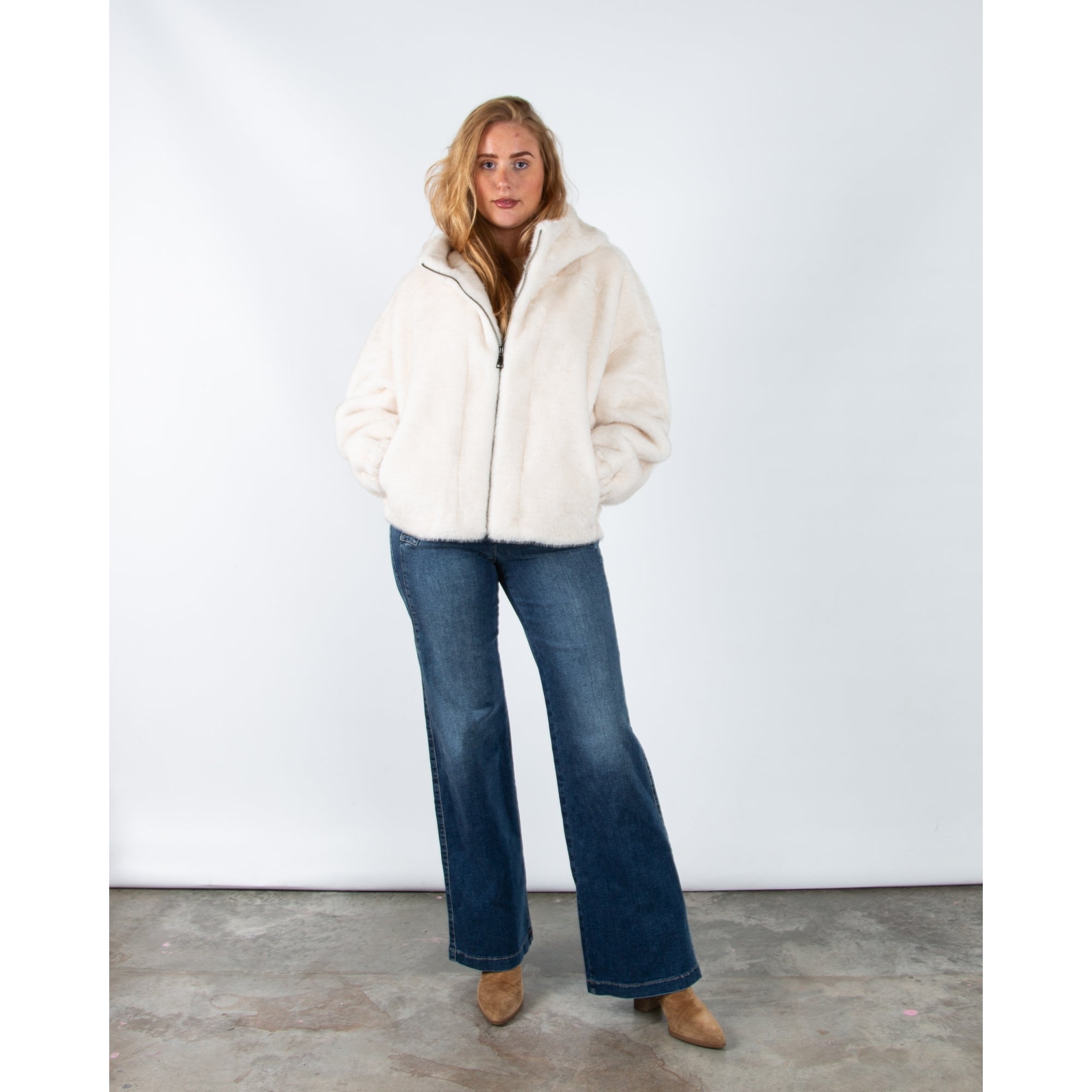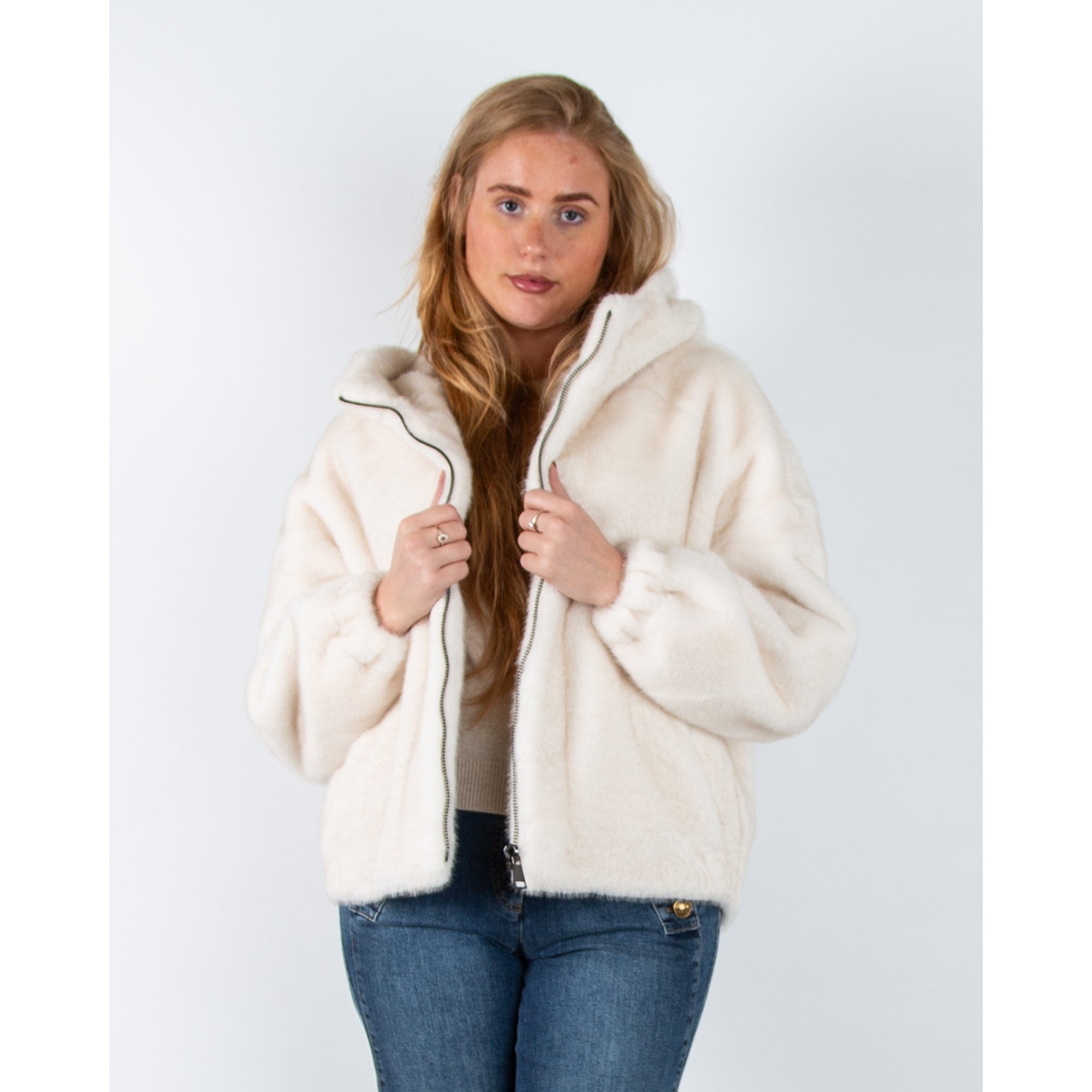 Giovanni Lima Faux Fur Hooded Jacket Ecru