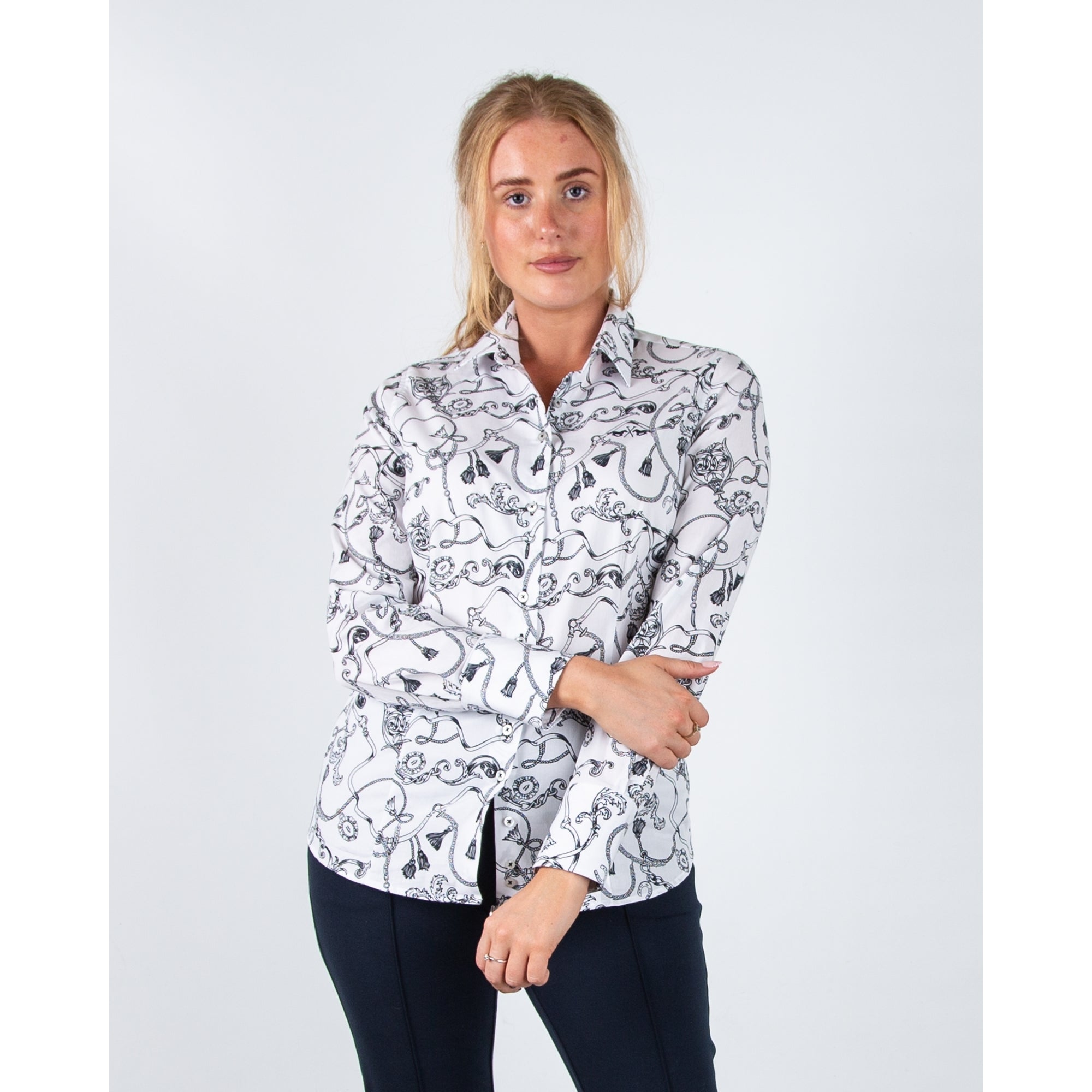 Forever Unique Angel Wrap Front Stripe Dip Back Blouse Black/White