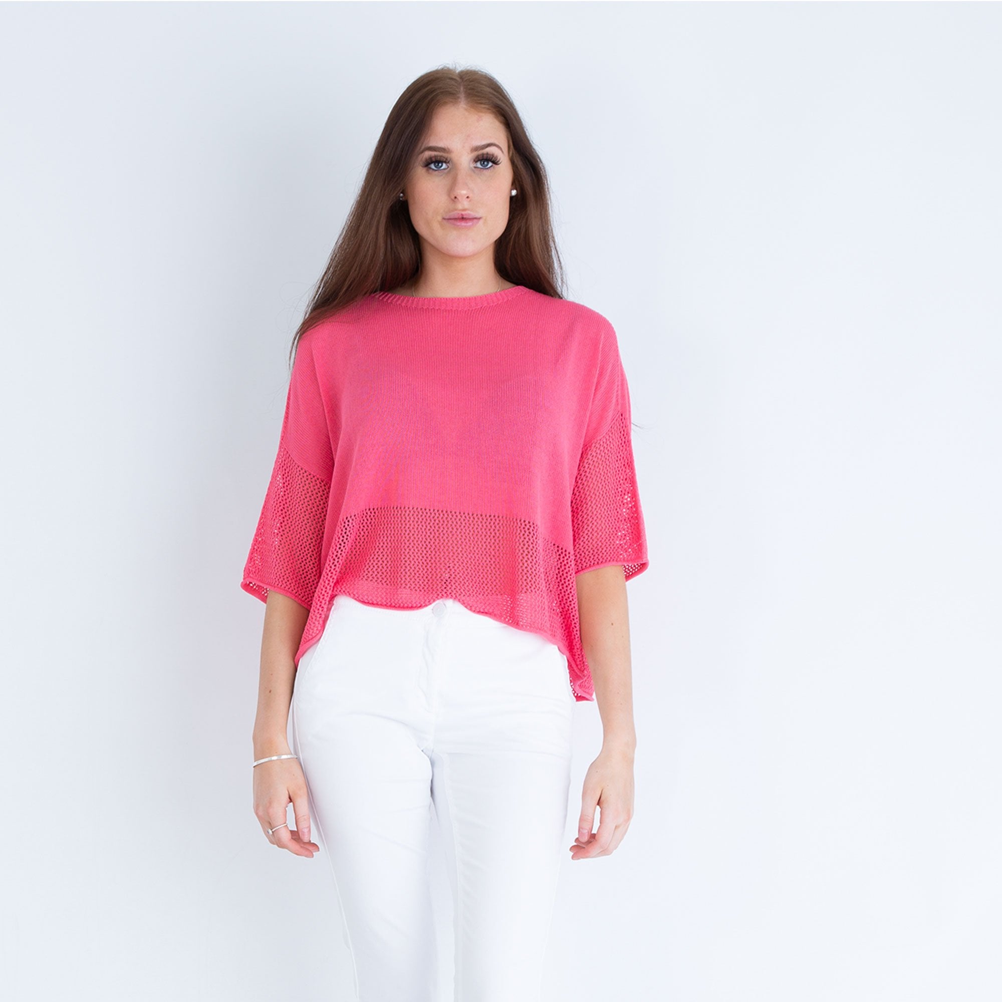 Yellow Label Fine Knit Boxy Sweater With Holey Hem Coral Pink