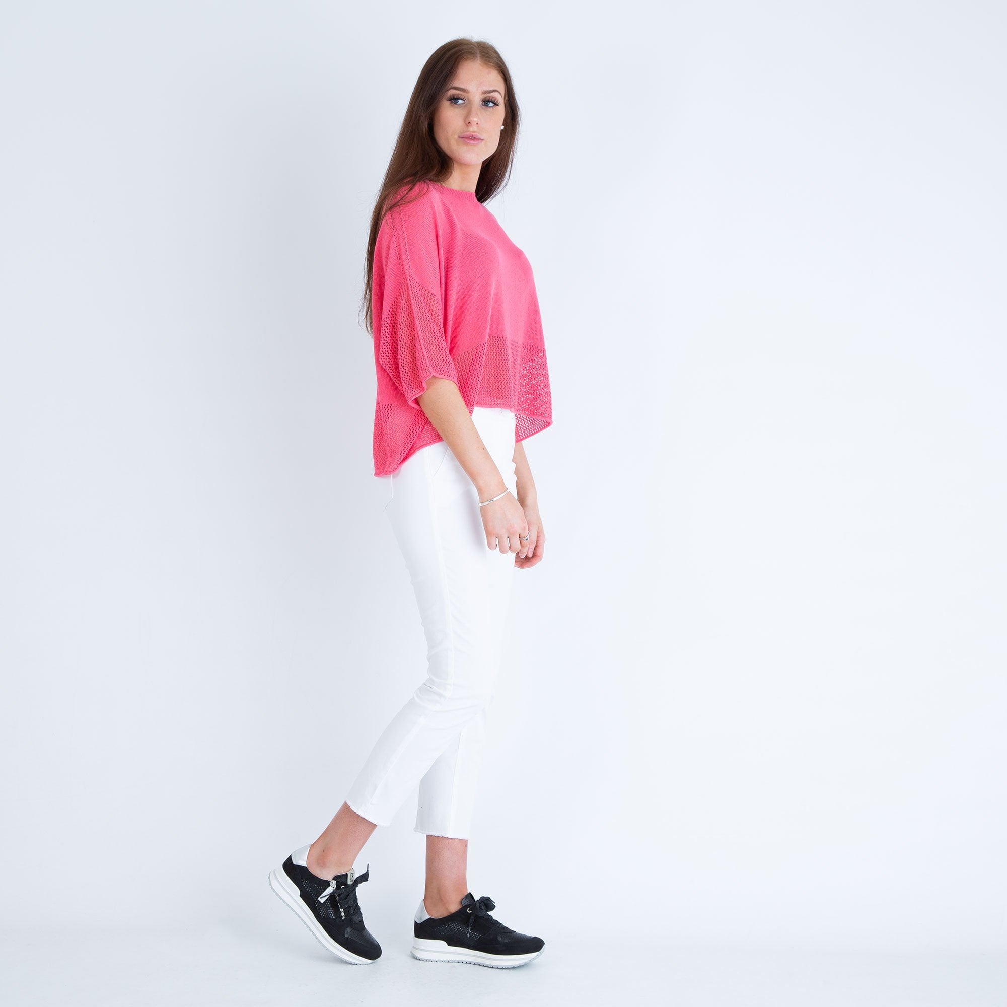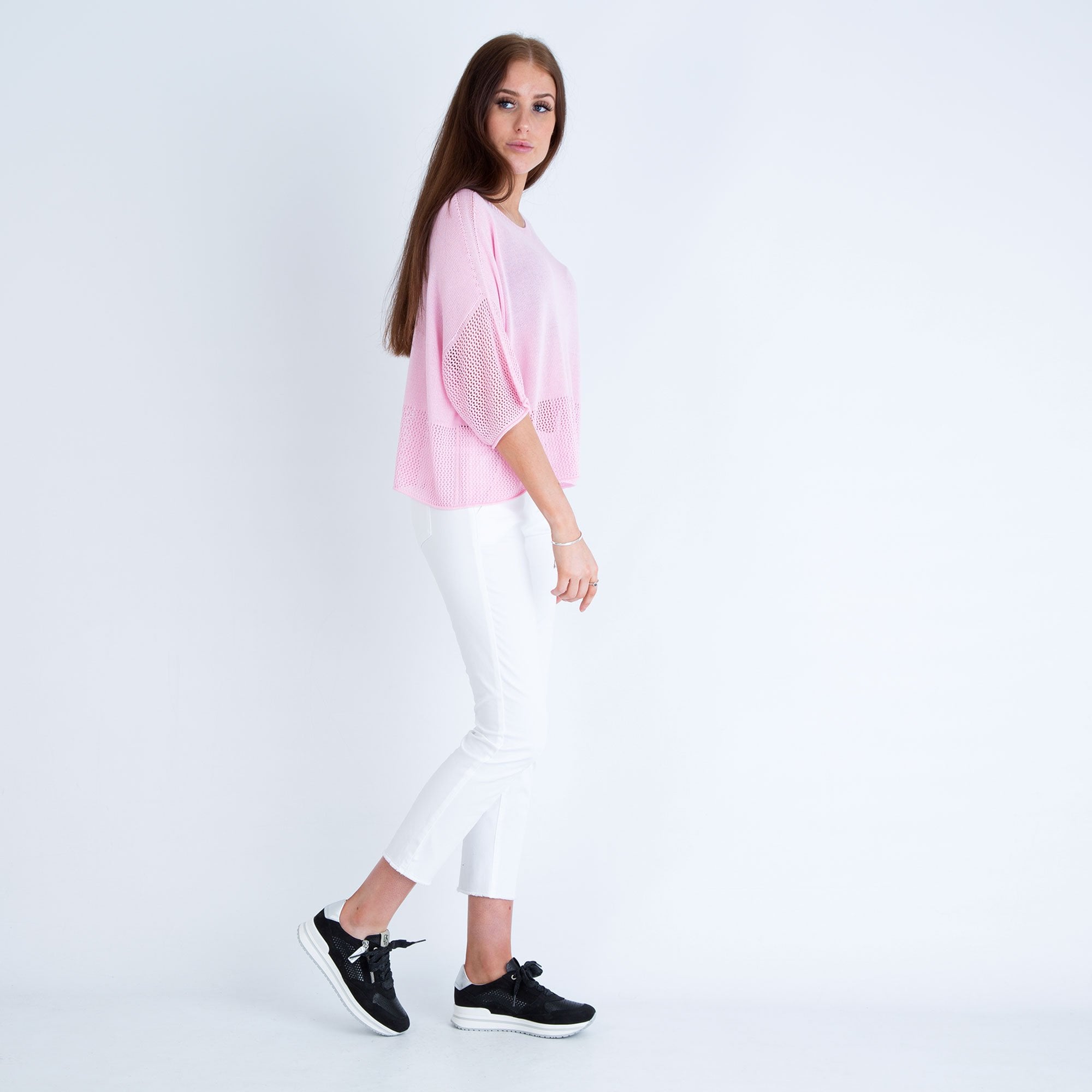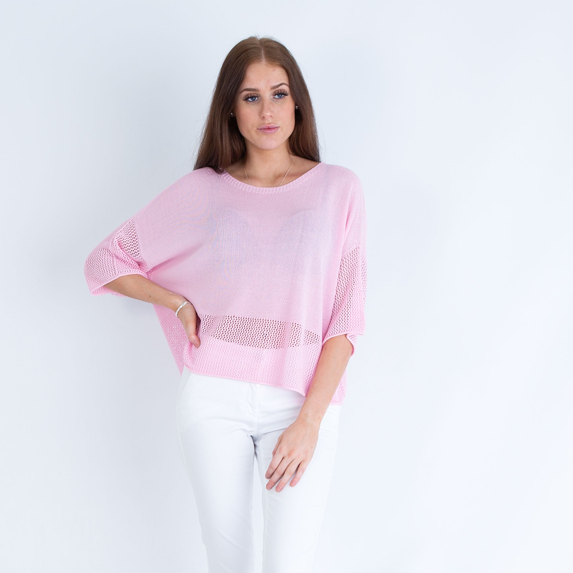 Yellow Label Fine Knit Boxy Sweater With Holey Hem Rose Pink