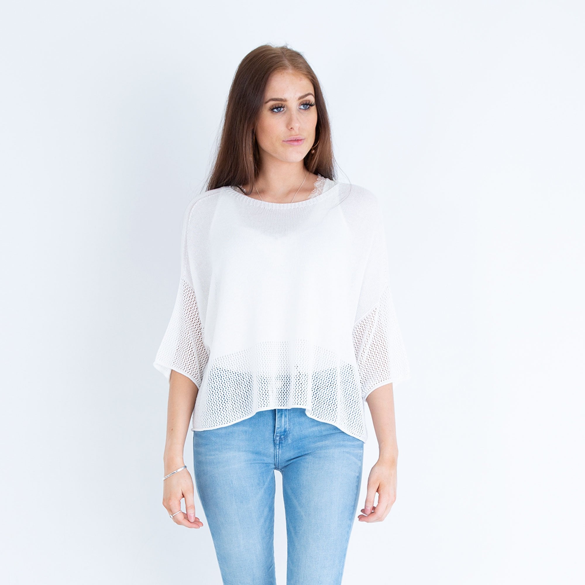 Yellow Label Fine Knit Boxy Sweater With Holey Hem White