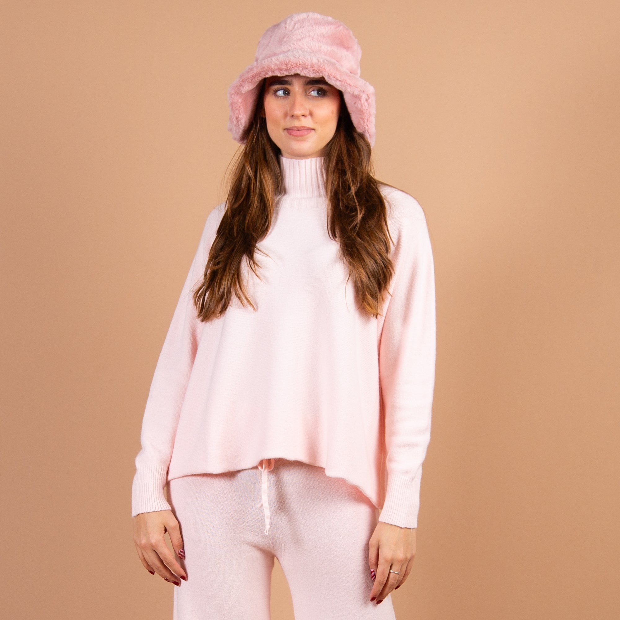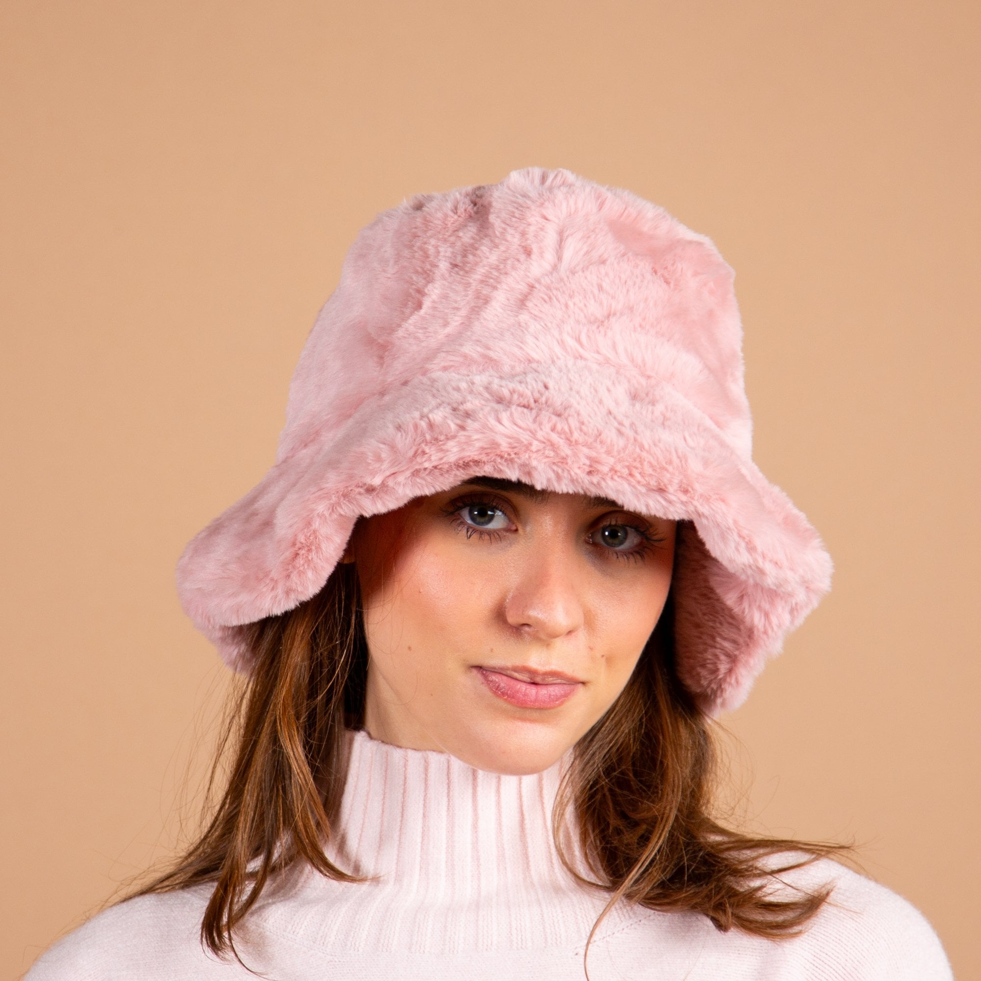 Zelly Faux Fur Bucket Hat Dusty Pink